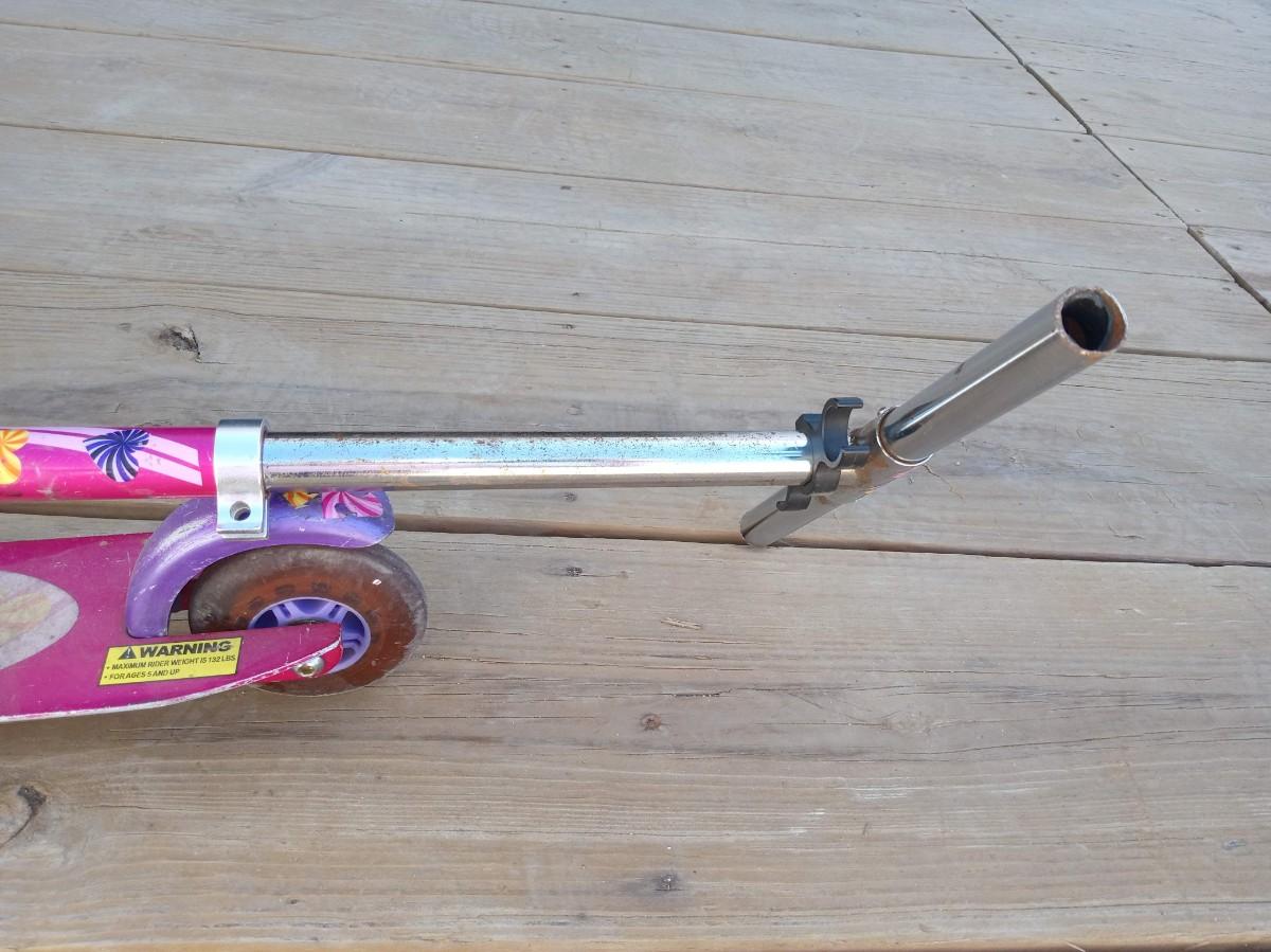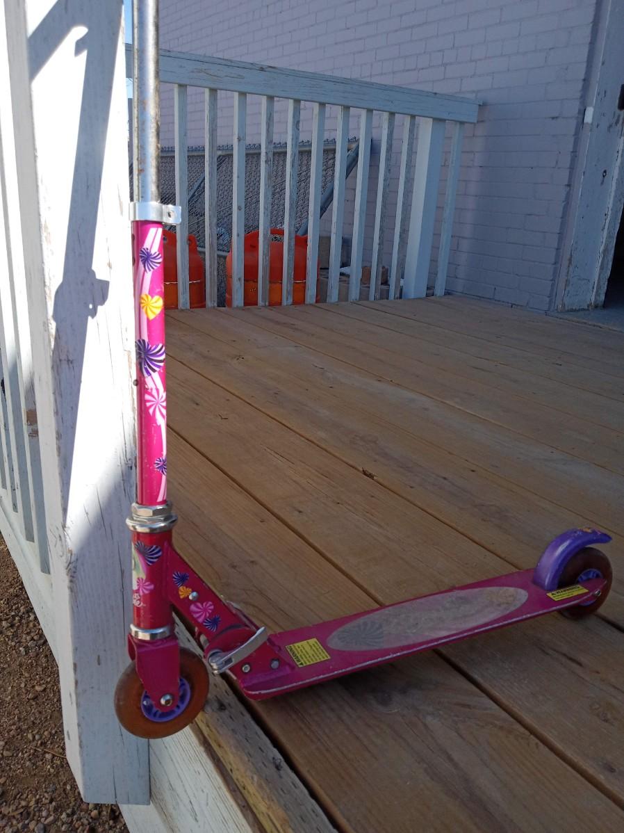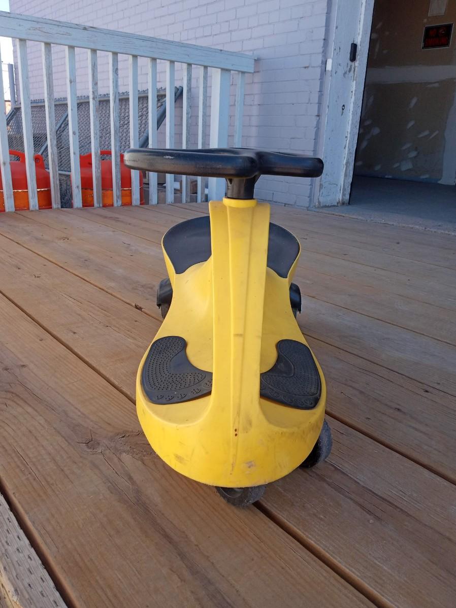 CHILD'S WIGGLE CAR AND A BARBIE FOLDING SCOOTER