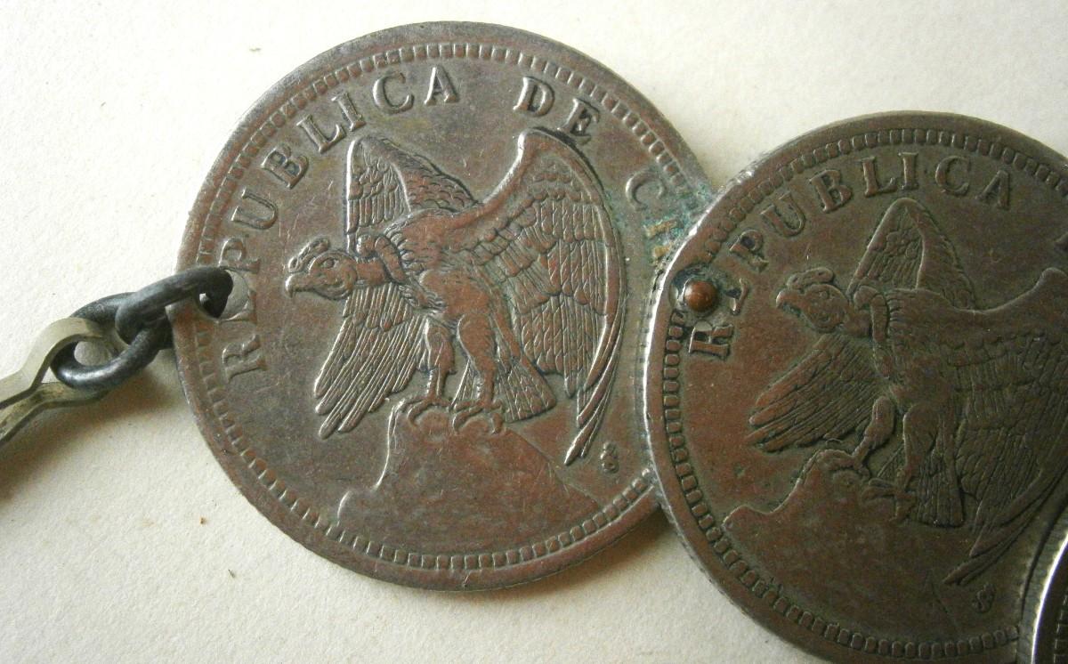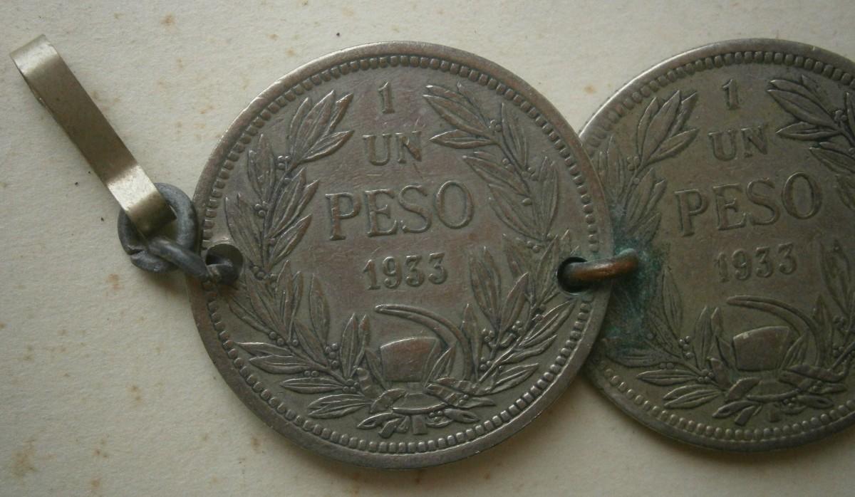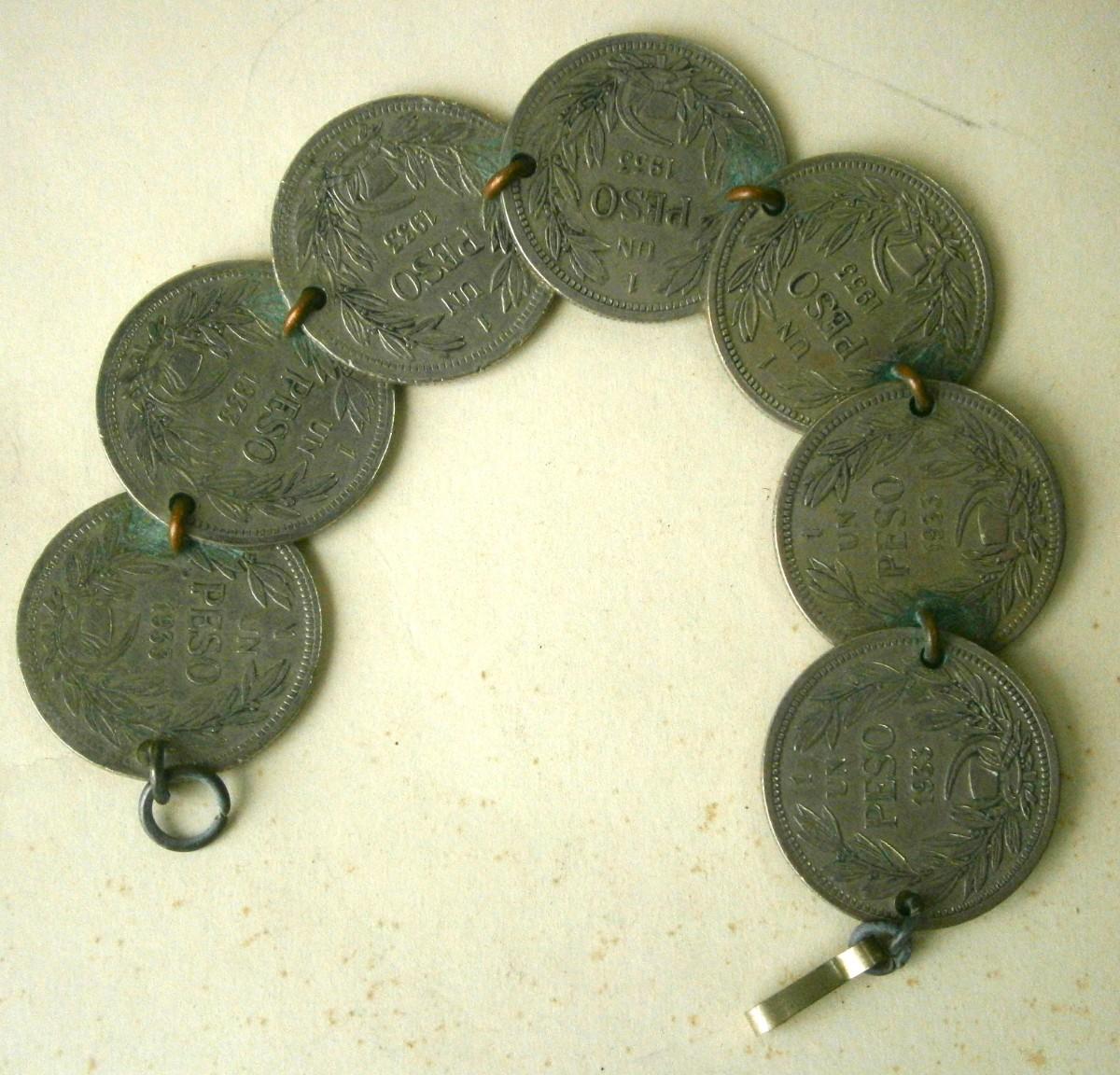 Chilean One Peso Coin Bracelet made with & 1933 Un Peso Cins, 7 in. long.