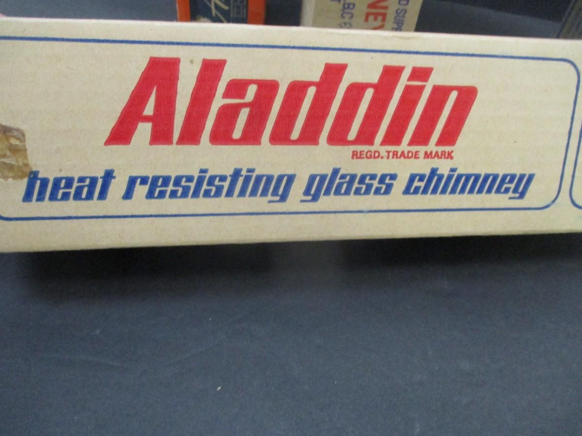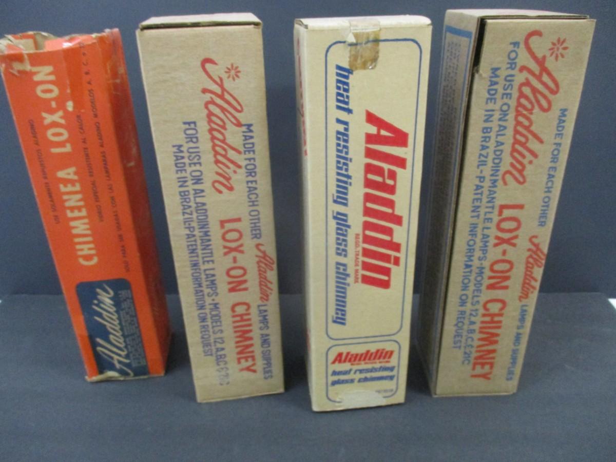 The Aladdin Lox-on Chimneys are decorative and functional lighting parts designed for use with Aladdin lamps. These chimneys are specially crafted to provide a secure and stable fit, ensuring the proper functioning of the lamp's flame and creating a unique and elegant look. Perfect for collectors or those seeking to enhance their home decor with a touch of vintage charm, Aladdin Lox-on Chimneys are a stylish addition to any lighting fixture.
