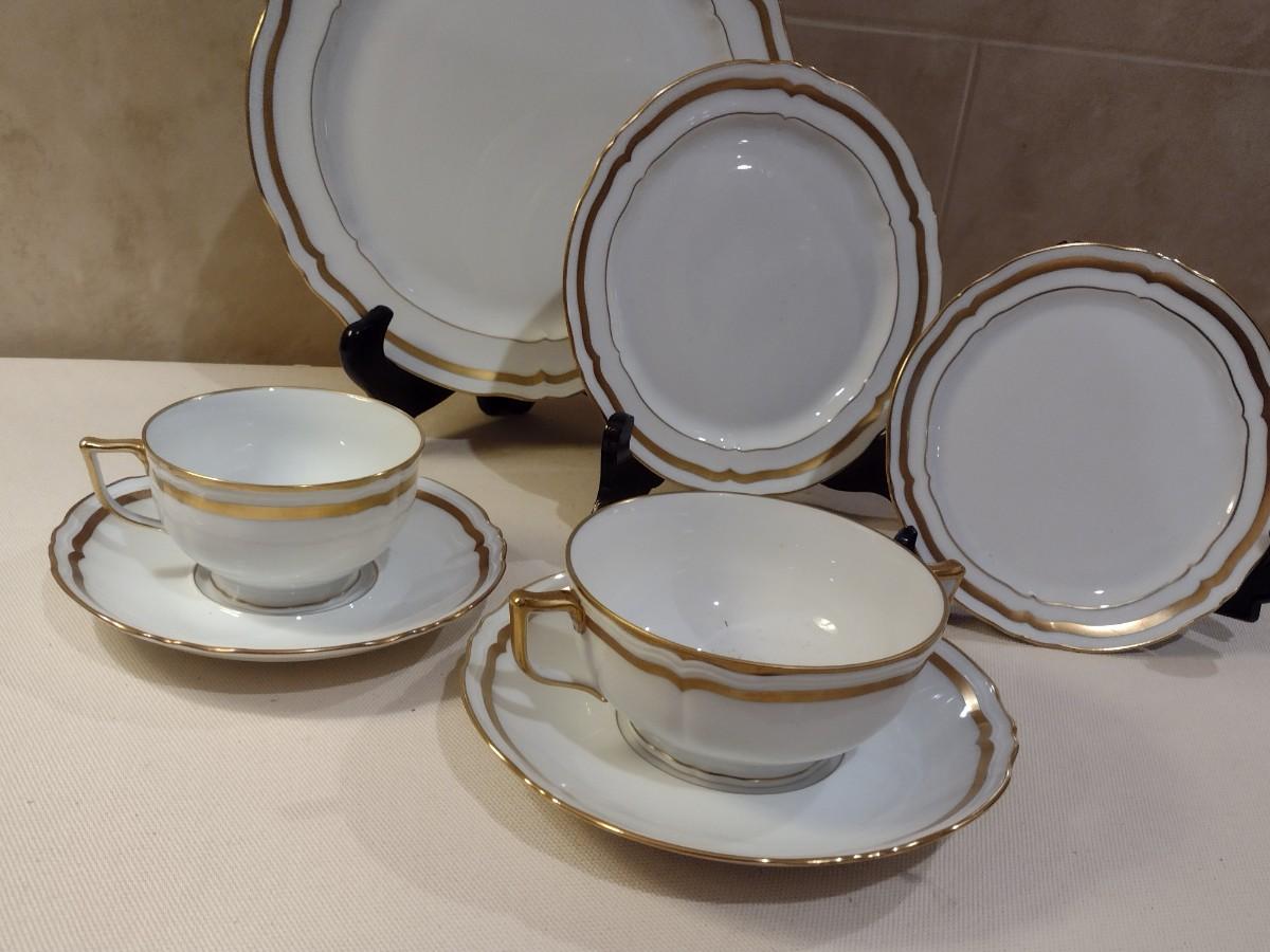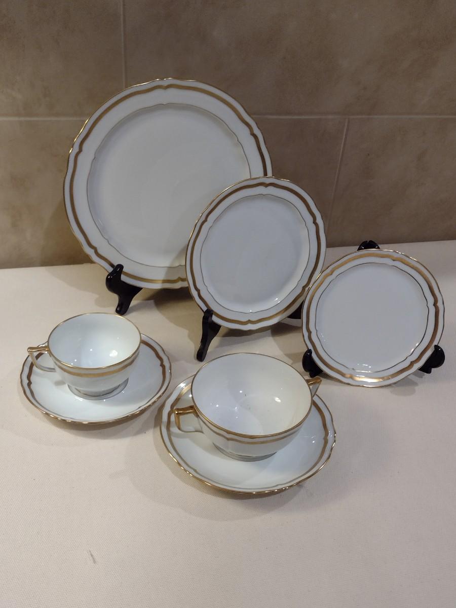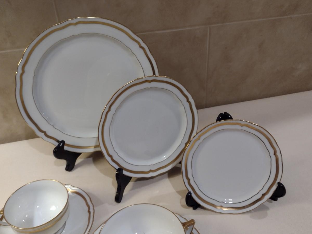 A, Raynaud Limoges Ceralene China Set. Approx 63 Pieces. Dinner plates - 10, salad plate-8, bread plate-8, bullion cup - 8, bullion saucer - 8, regular cup - 8, regular saucer - 8, vegetable Bowl - 1, demitasse cup - 2, demitasse saucer-2. All in used condition - please expect occasional chip or crack.