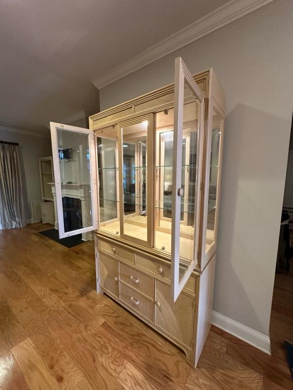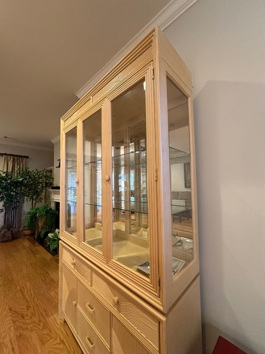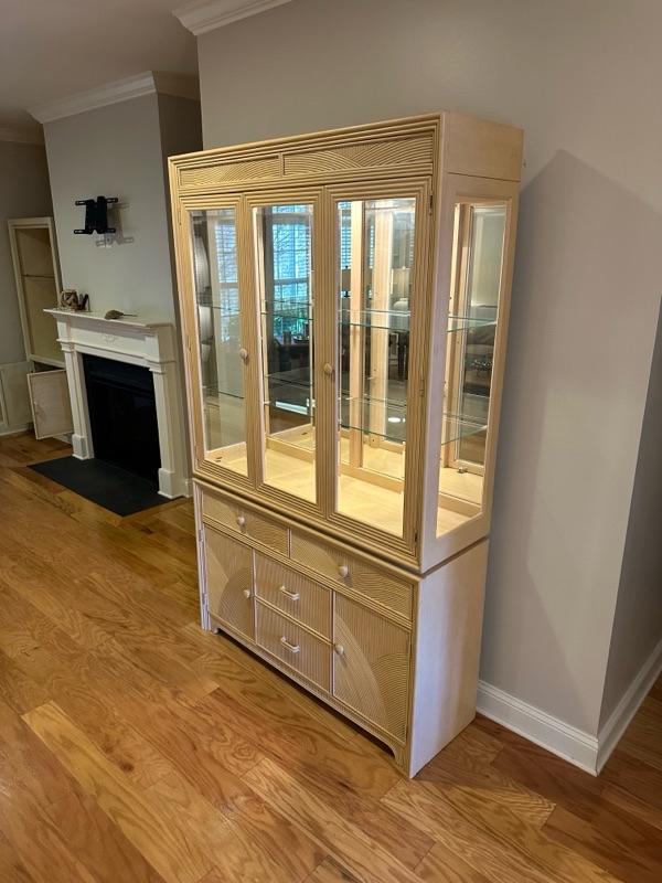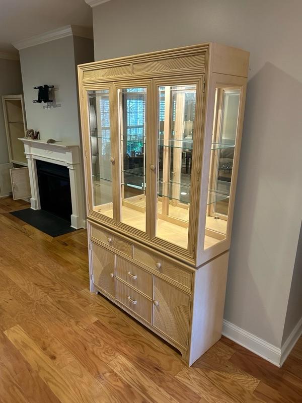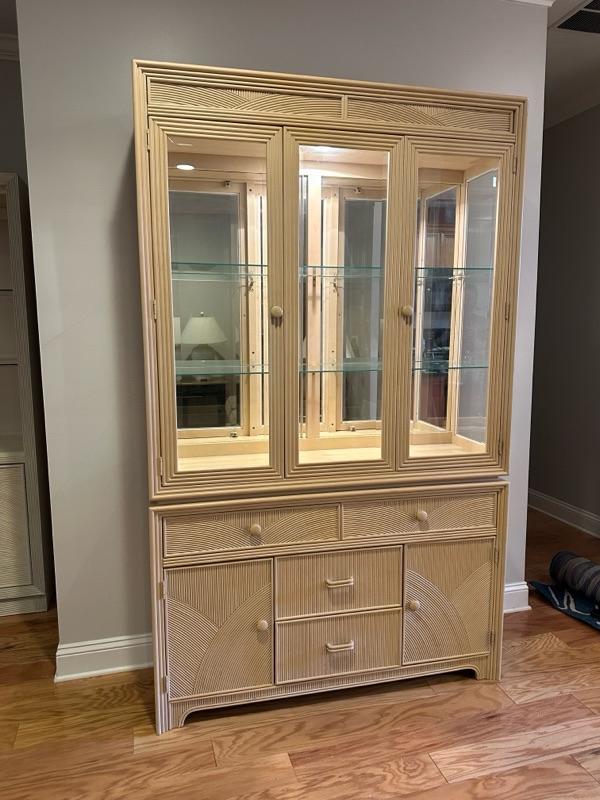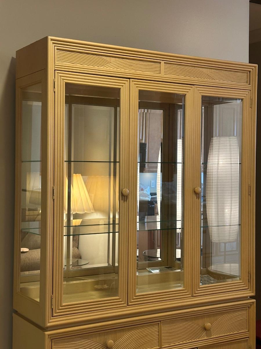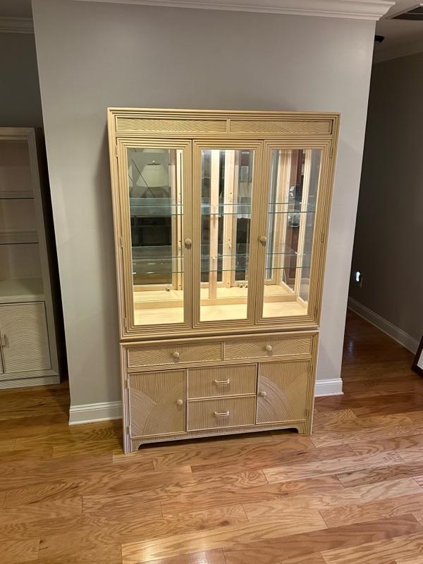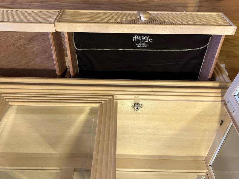 China Cabinet by Stanley Furniture / A beautiful cabinet in great condition. 82in H x 50in L x 16in W. This cabinet also has a small light installed in the top that you're able to switch on and off. This piece matches two twin shelf lots in his auction.