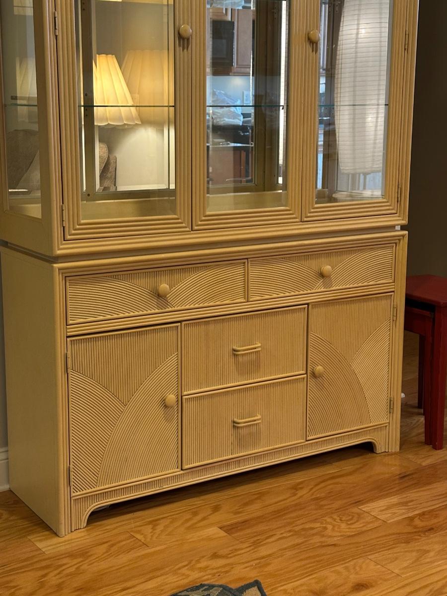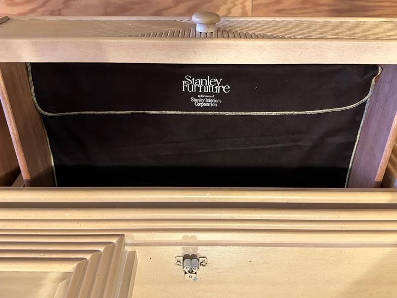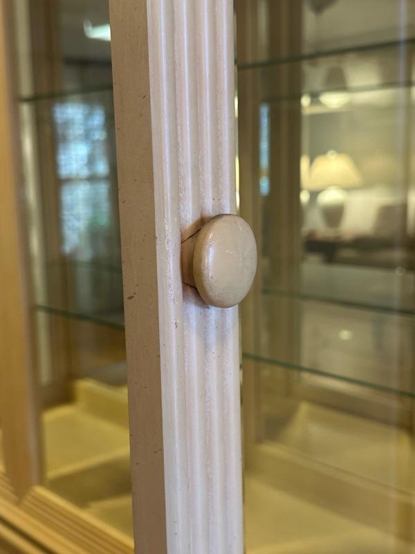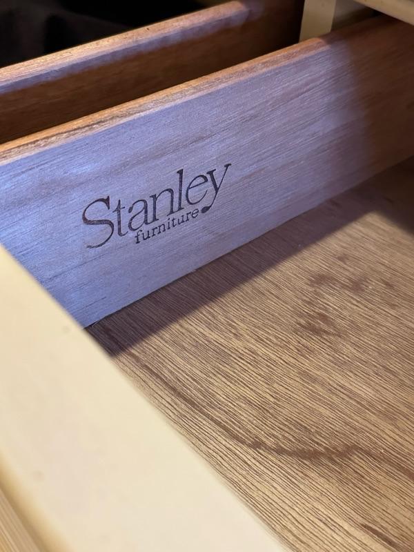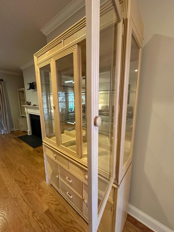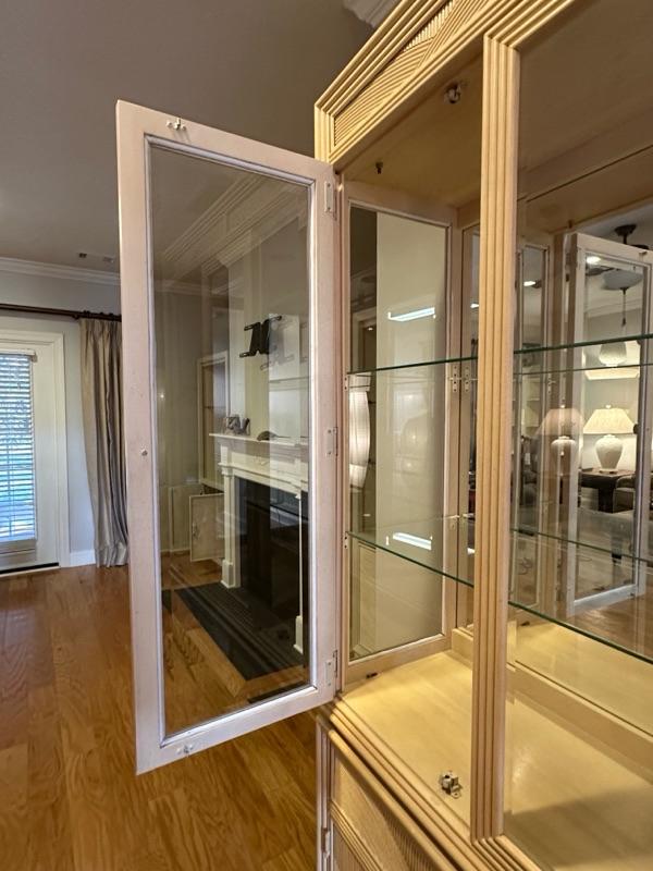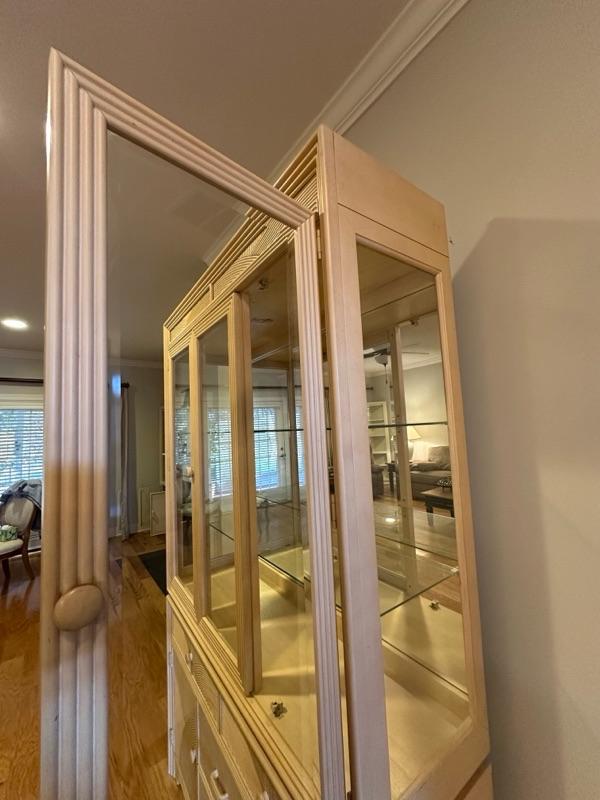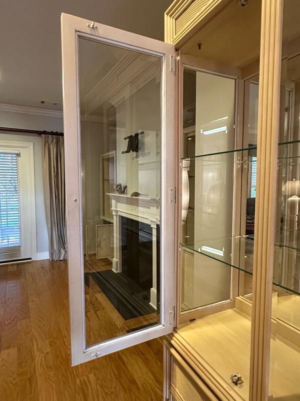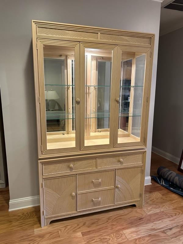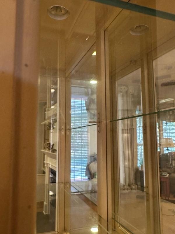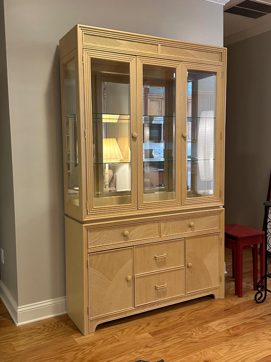 China Cabinet by Stanley Furniture / A beautiful cabinet in great condition. 82in H x 50in L x 16in W. This cabinet also has a small light installed in the top that you're able to switch on and off. This piece matches two twin shelf lots in his auction.
