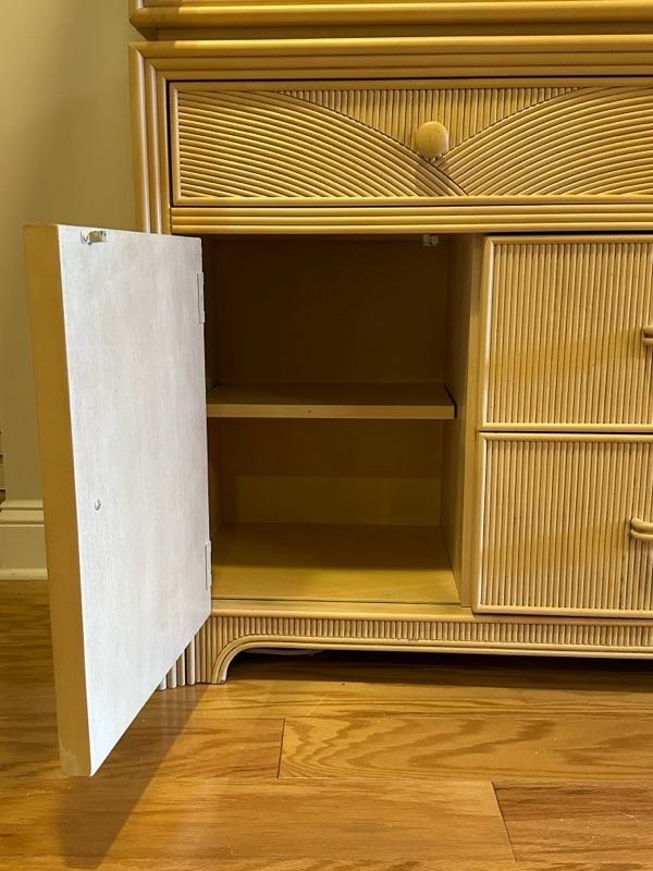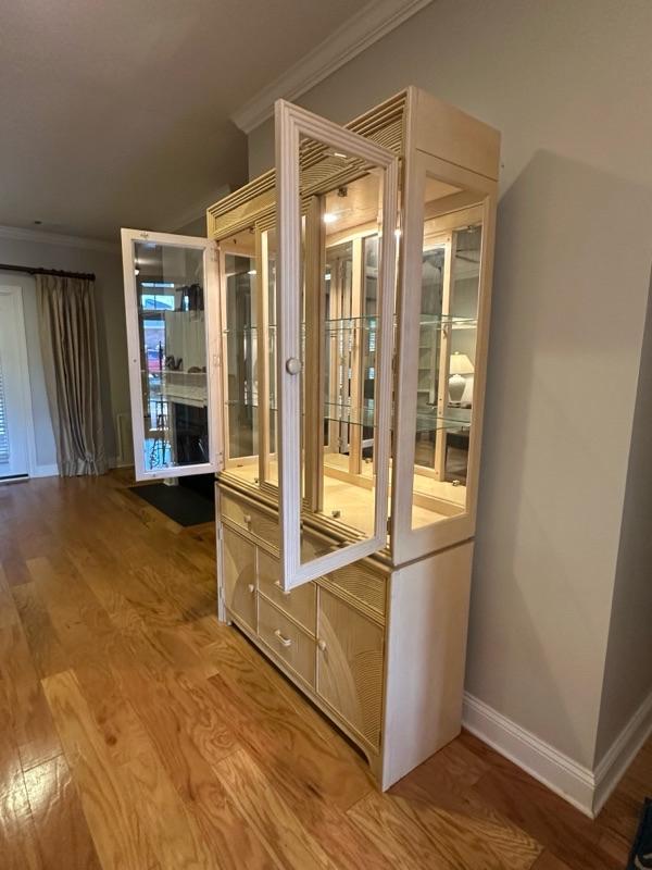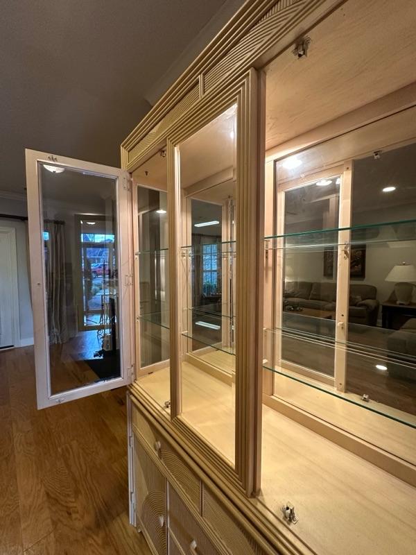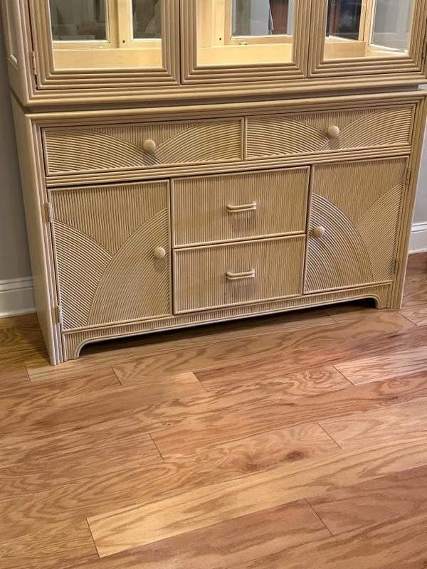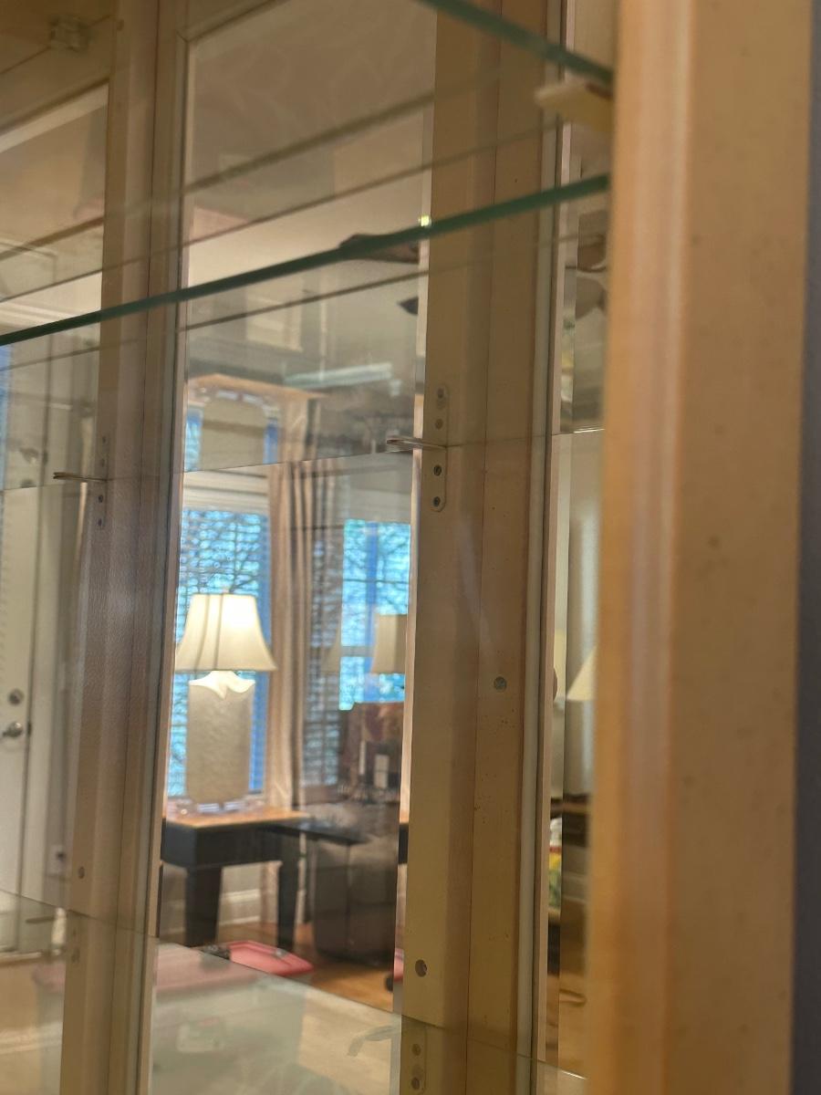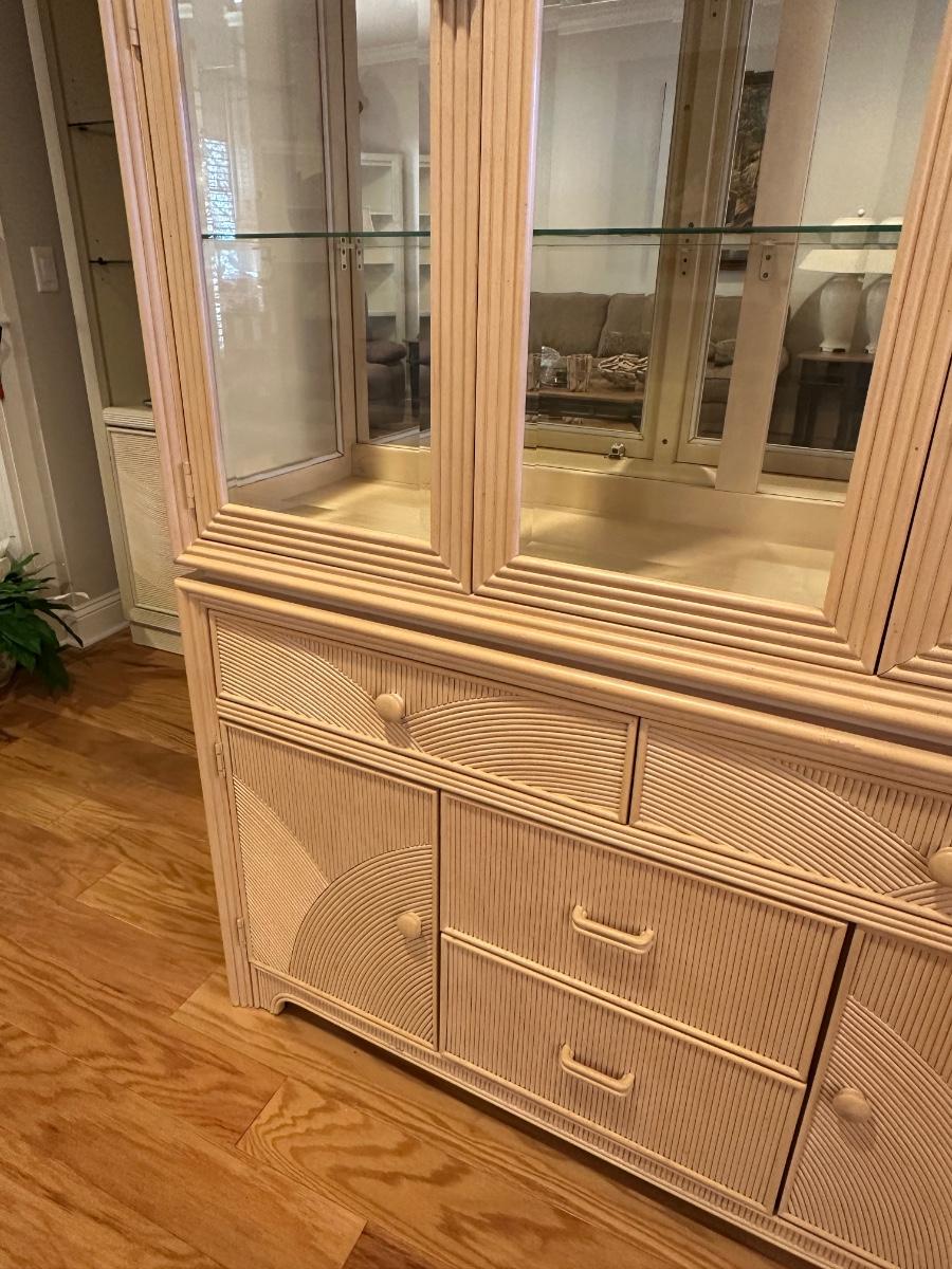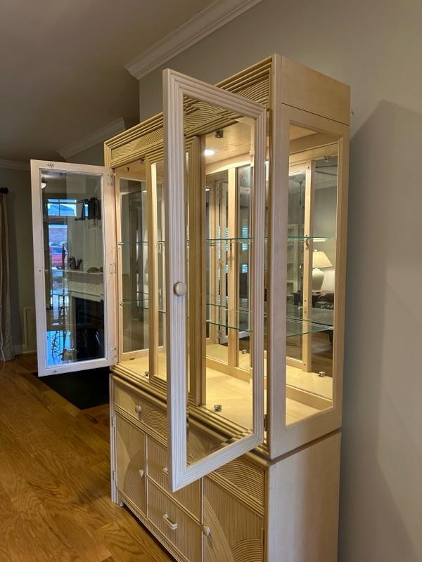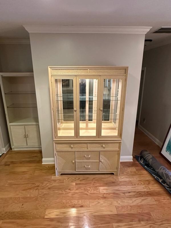 China Cabinet by Stanley Furniture / A beautiful cabinet in great condition. 82in H x 50in L x 16in W. This cabinet also has a small light installed in the top that you're able to switch on and off. This piece matches two twin shelf lots in his auction.