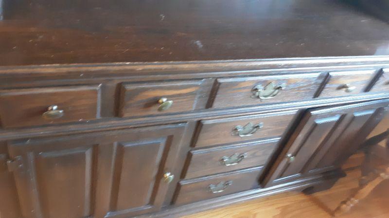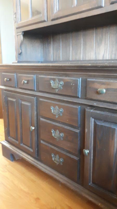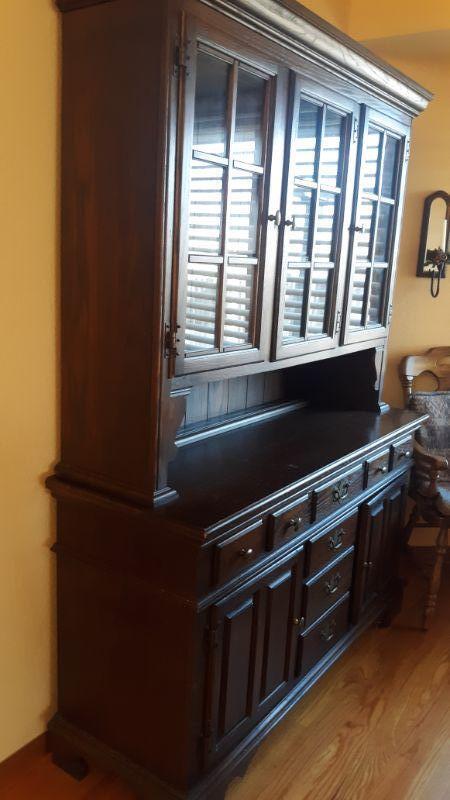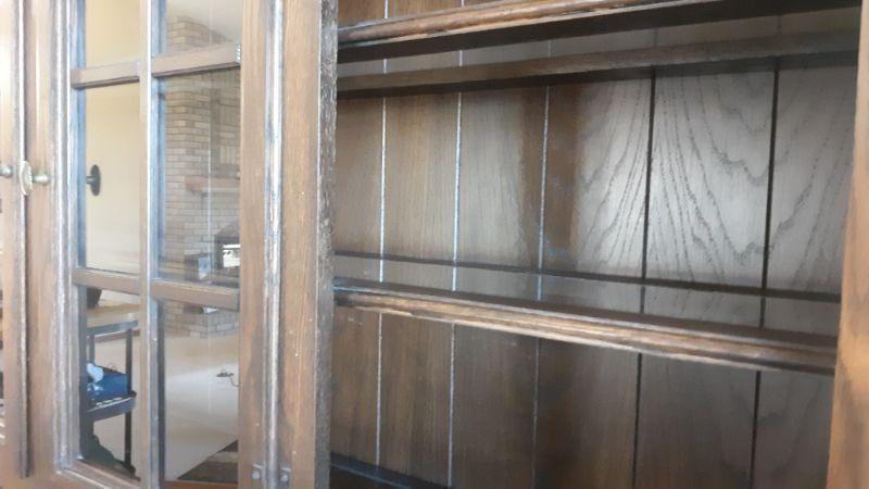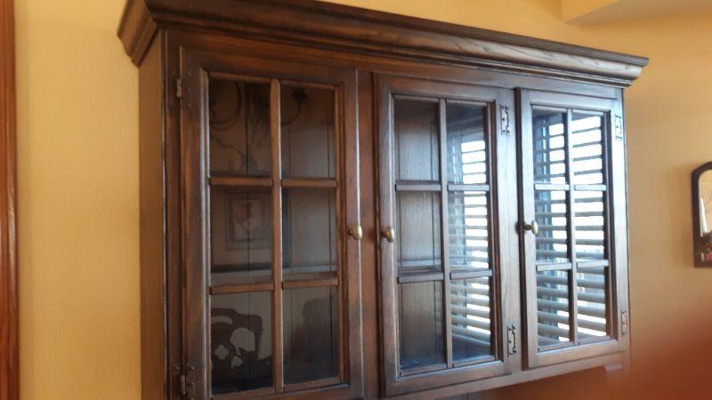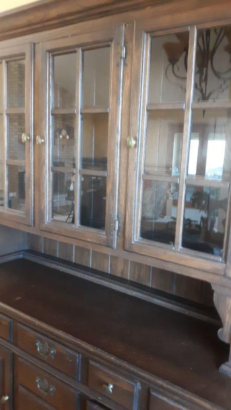 LOTS OF STORAGE WITH GLASS DISPLAY SHELVES IN GOOD CONDITION MATCHS TABLE AND CHAIRS