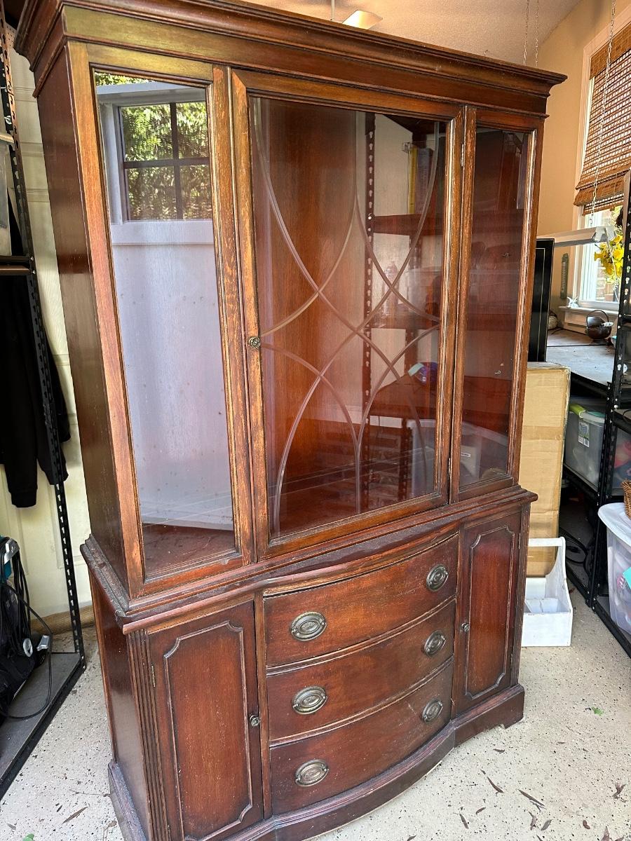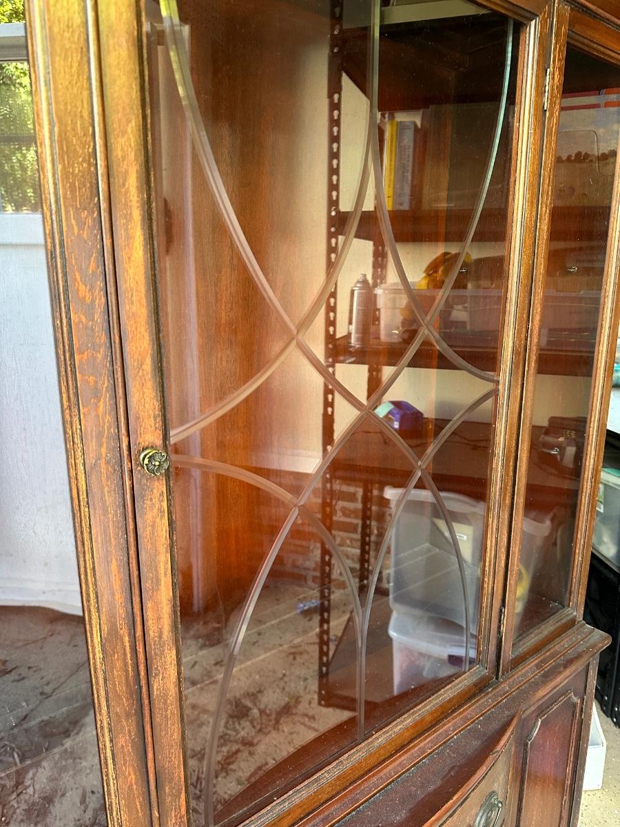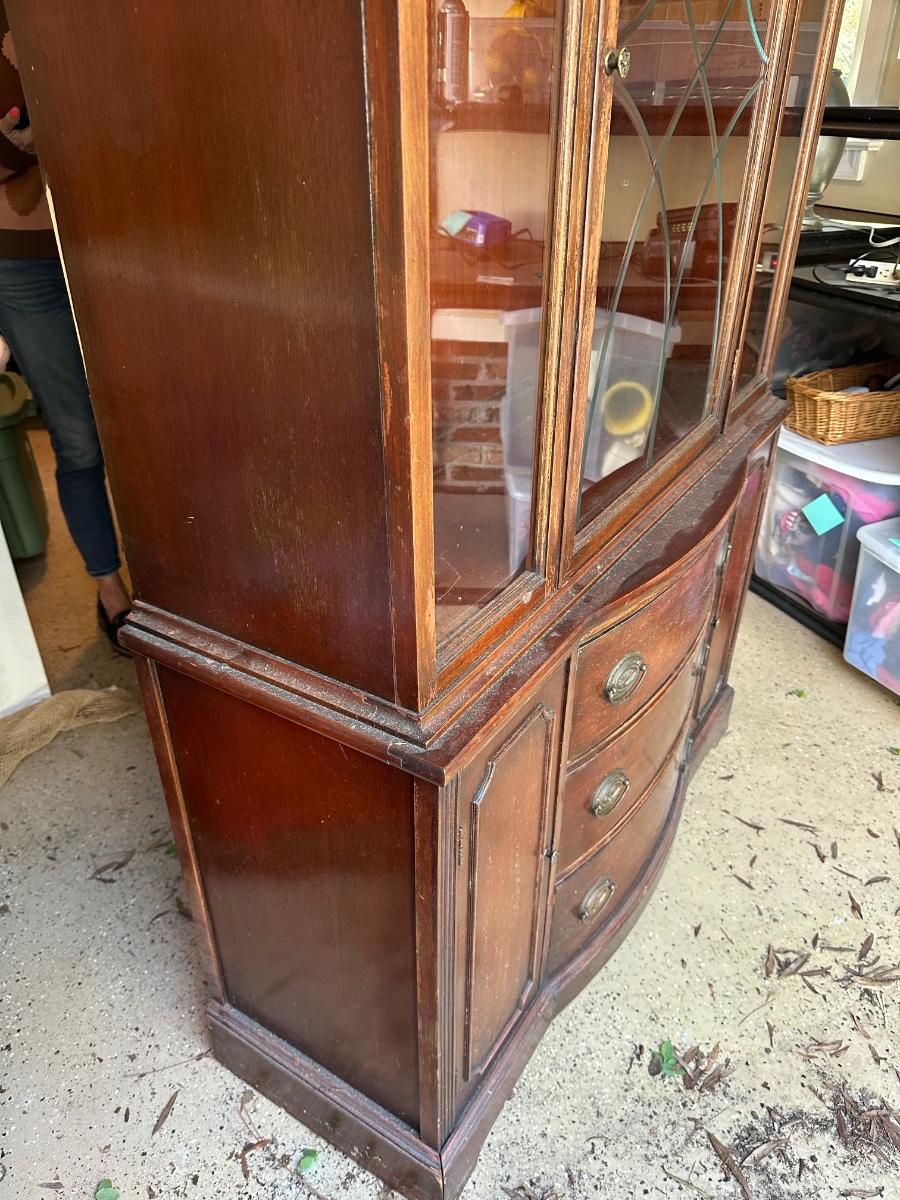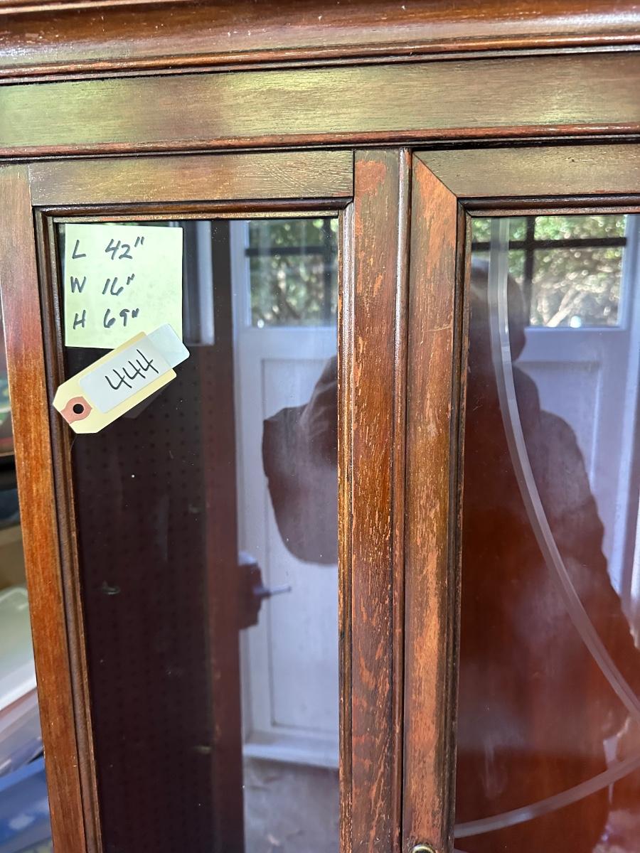 CHINA CABINET MAHOGANY FINISH IS IN POOR CONDITION 42X1X669