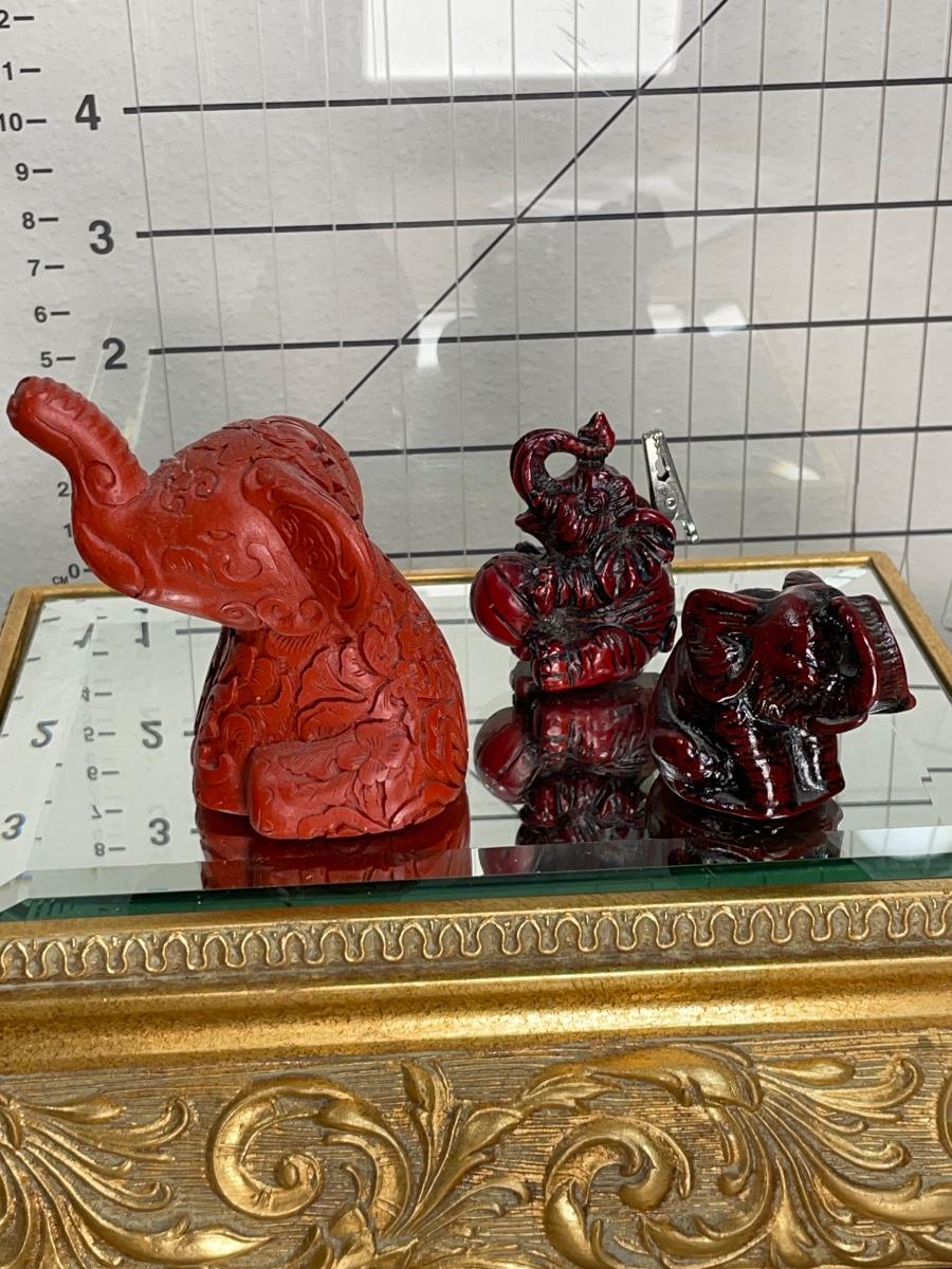 China Handcrafted Carved Red Resin and more Elephants