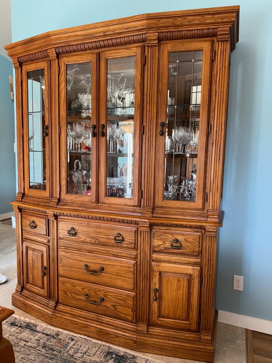 Introducing a beautiful China Hutch, a perfect storage solution for your fine dinnerware and collectibles. This elegant piece features a classic design with spacious shelves and glass doors, allowing you to showcase your favorite china and decorative items.