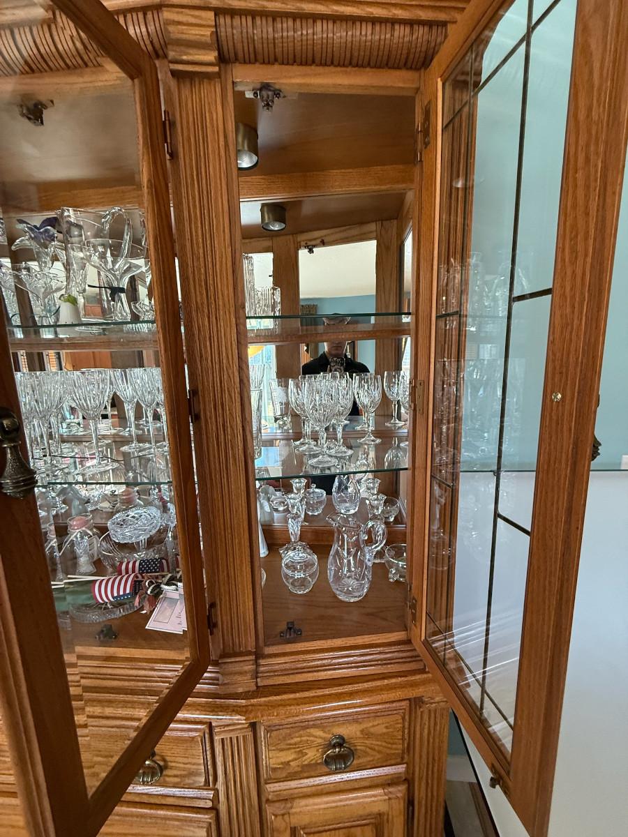 Please note that the hutch does NOT come with the crystal displayed in the images, allowing you the freedom to personalize it with your own unique pieces. The wood finish adds warmth and sophistication, making it a stunning focal point in your dining room or kitchen.