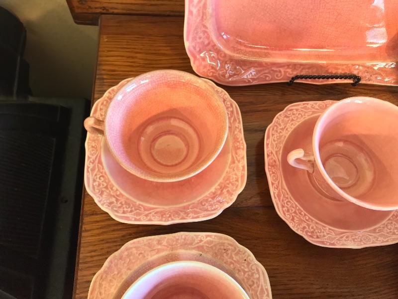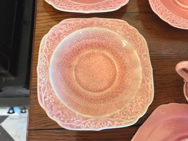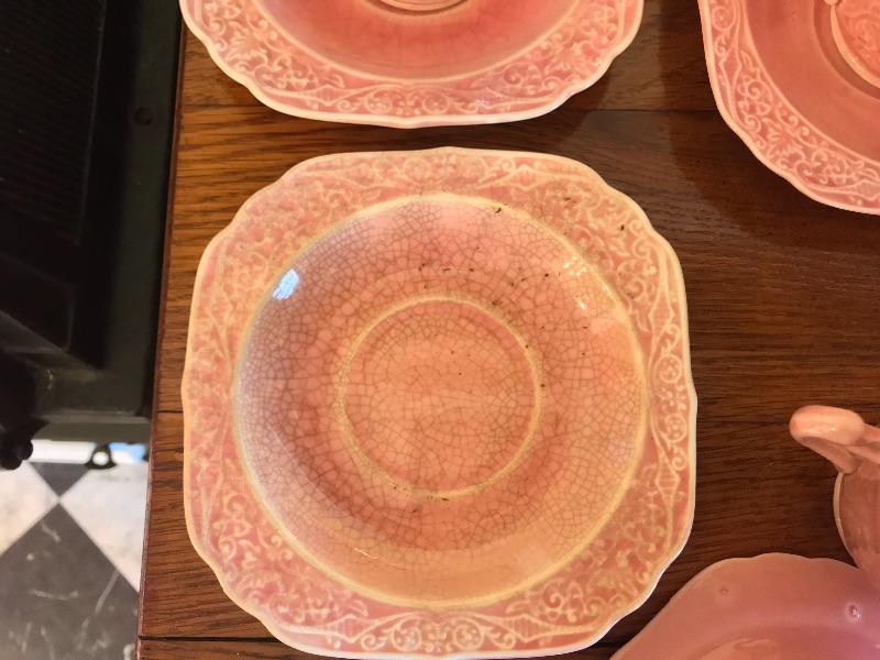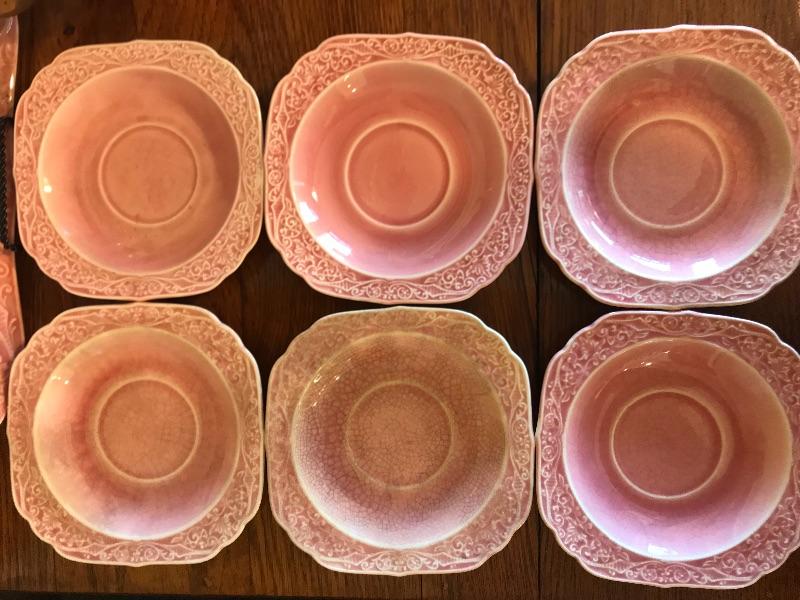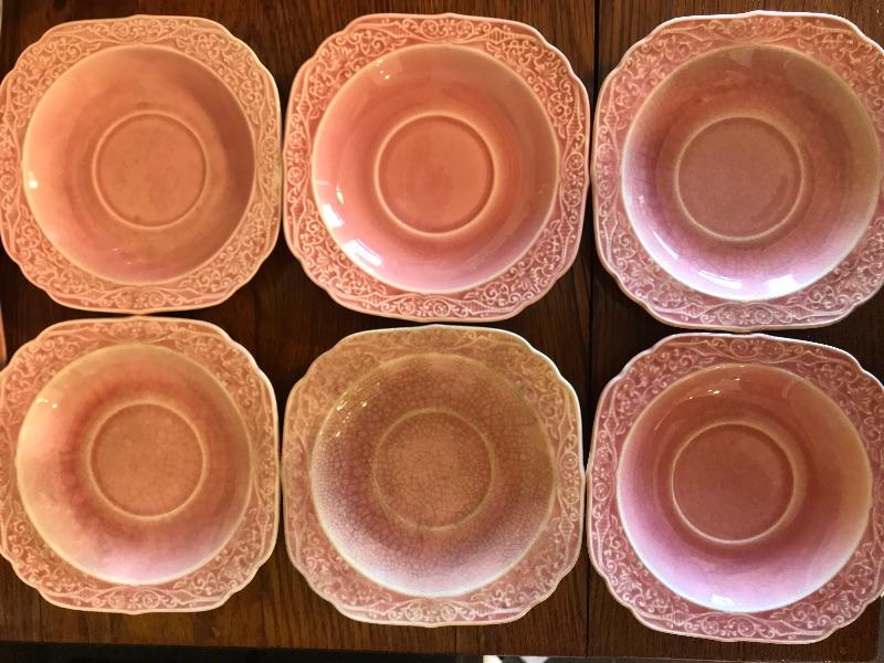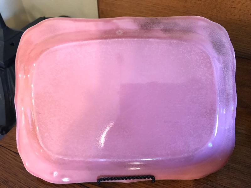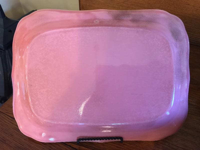 Check the photos some of the dishes have crazing, the back of the tray/platter have a a corner that has dark area.