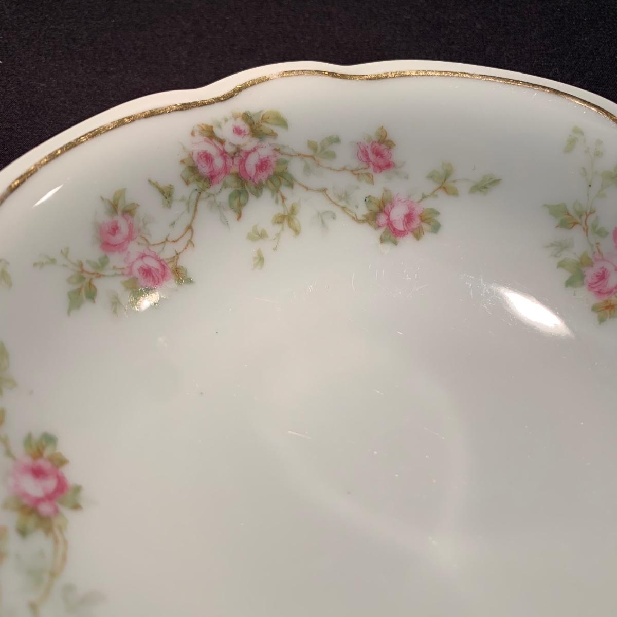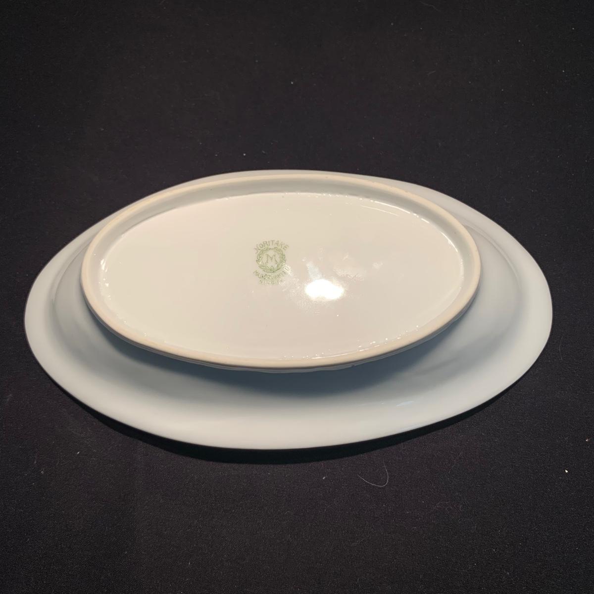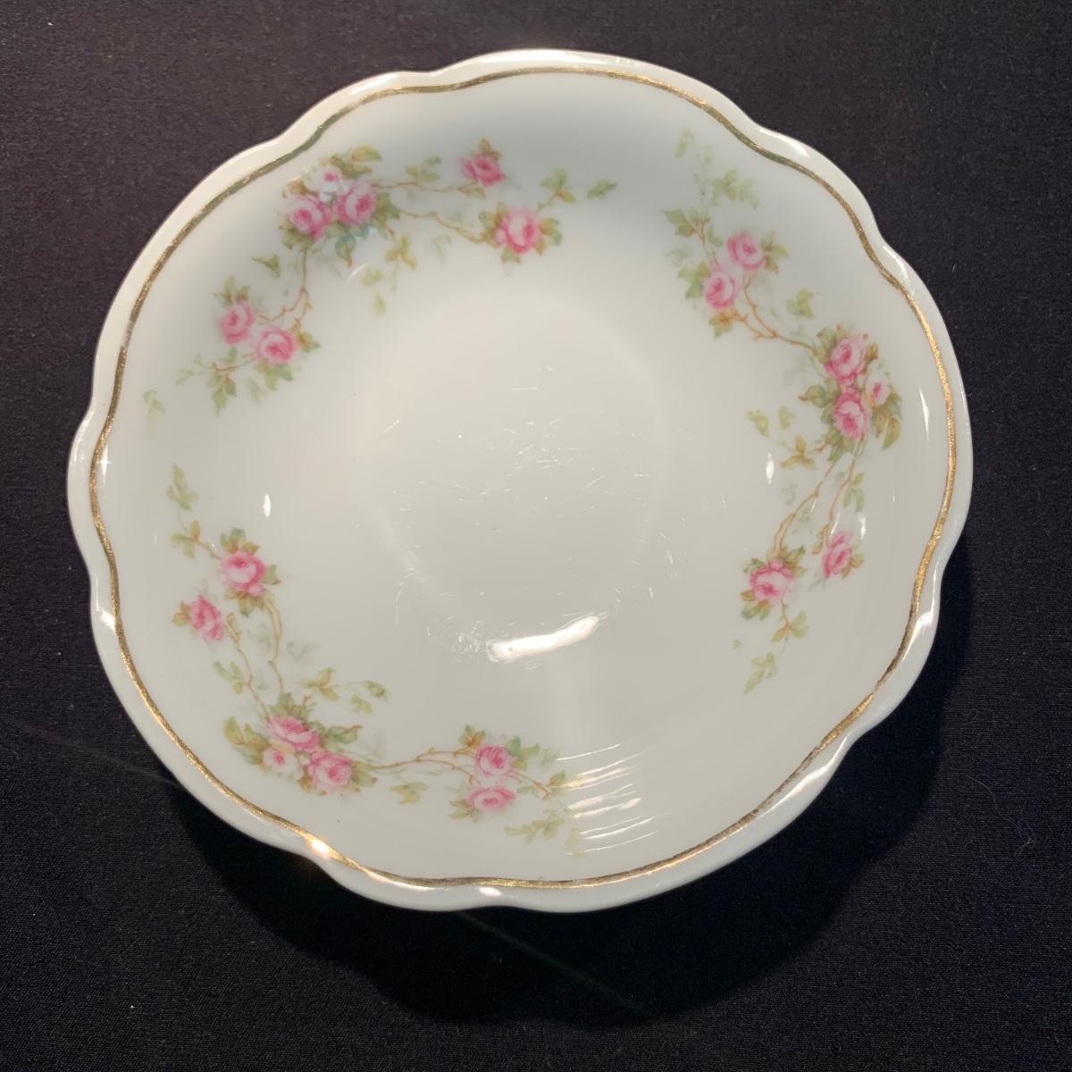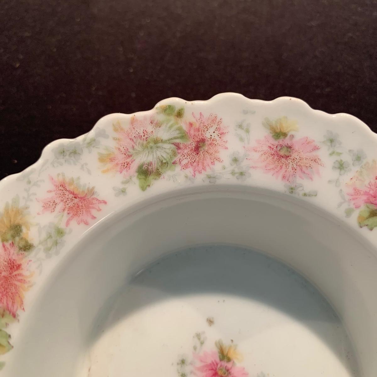 This lot includes a mix of single china dishes. Included are different serving trays, bowls, plates, a teapot, and more. One of the trays has some brown discoloration and one of the bowls has crack in it (see photos). Theo other items appear to be in good condition. The largest piece measures about 12in x 9in. Shipping available.
