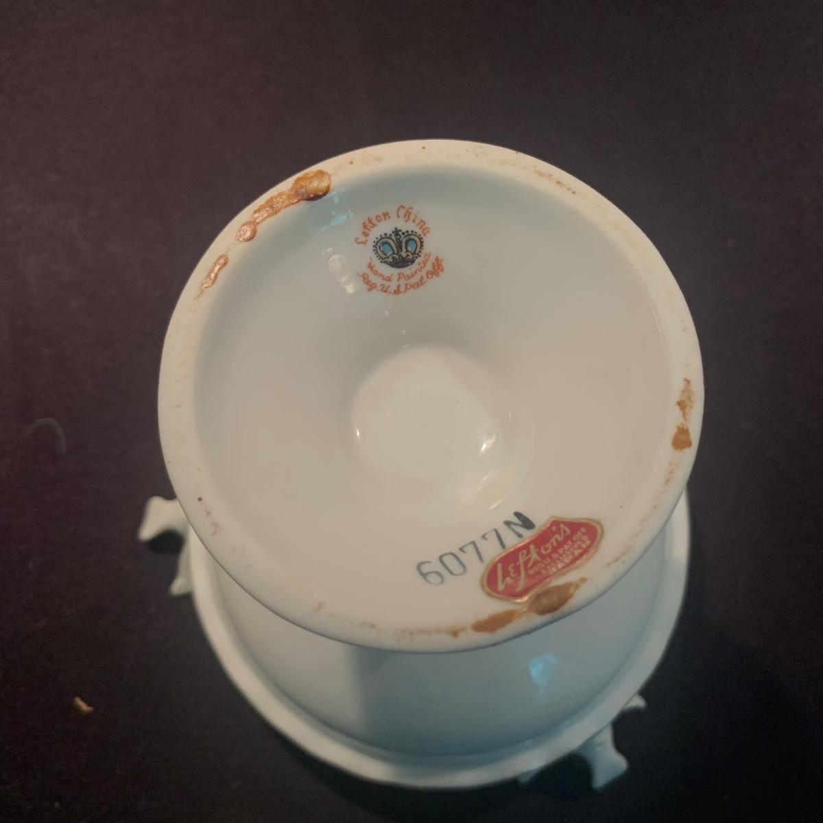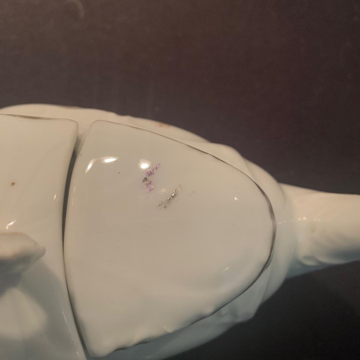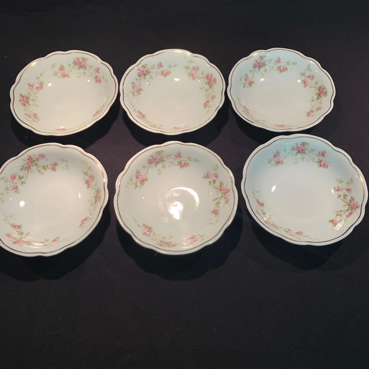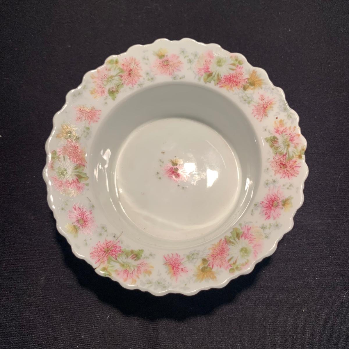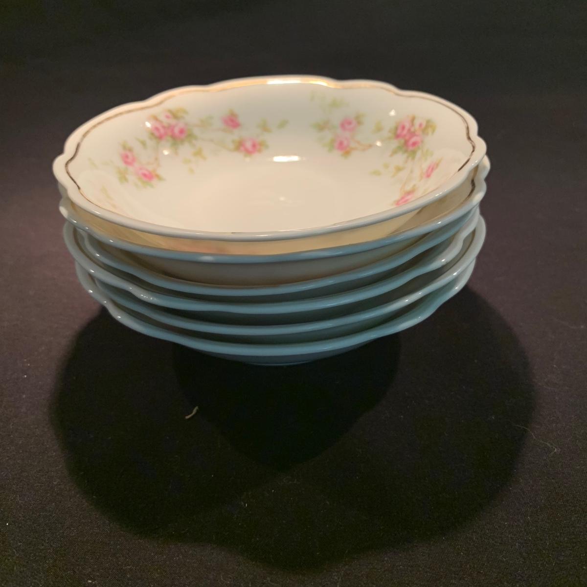 This lot includes a mix of single china dishes. Included are different serving trays, bowls, plates, a teapot, and more. One of the trays has some brown discoloration and one of the bowls has crack in it (see photos). Theo other items appear to be in good condition. The largest piece measures about 12in x 9in. Shipping available.