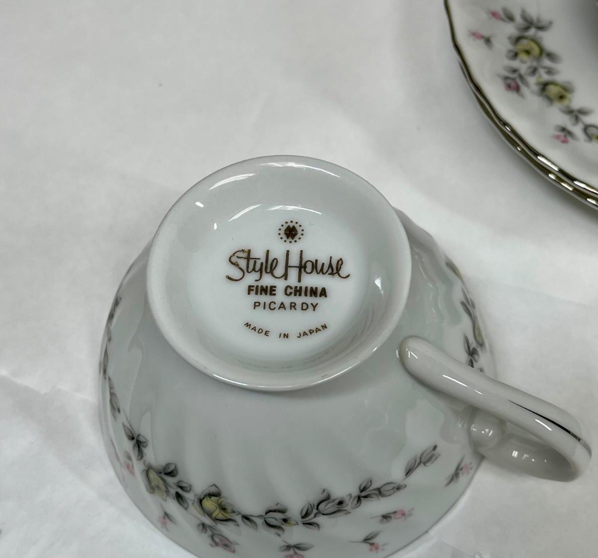 Style House Fine China Set "Picardy" Japan, 50 pc set, white with pink & gray flowers