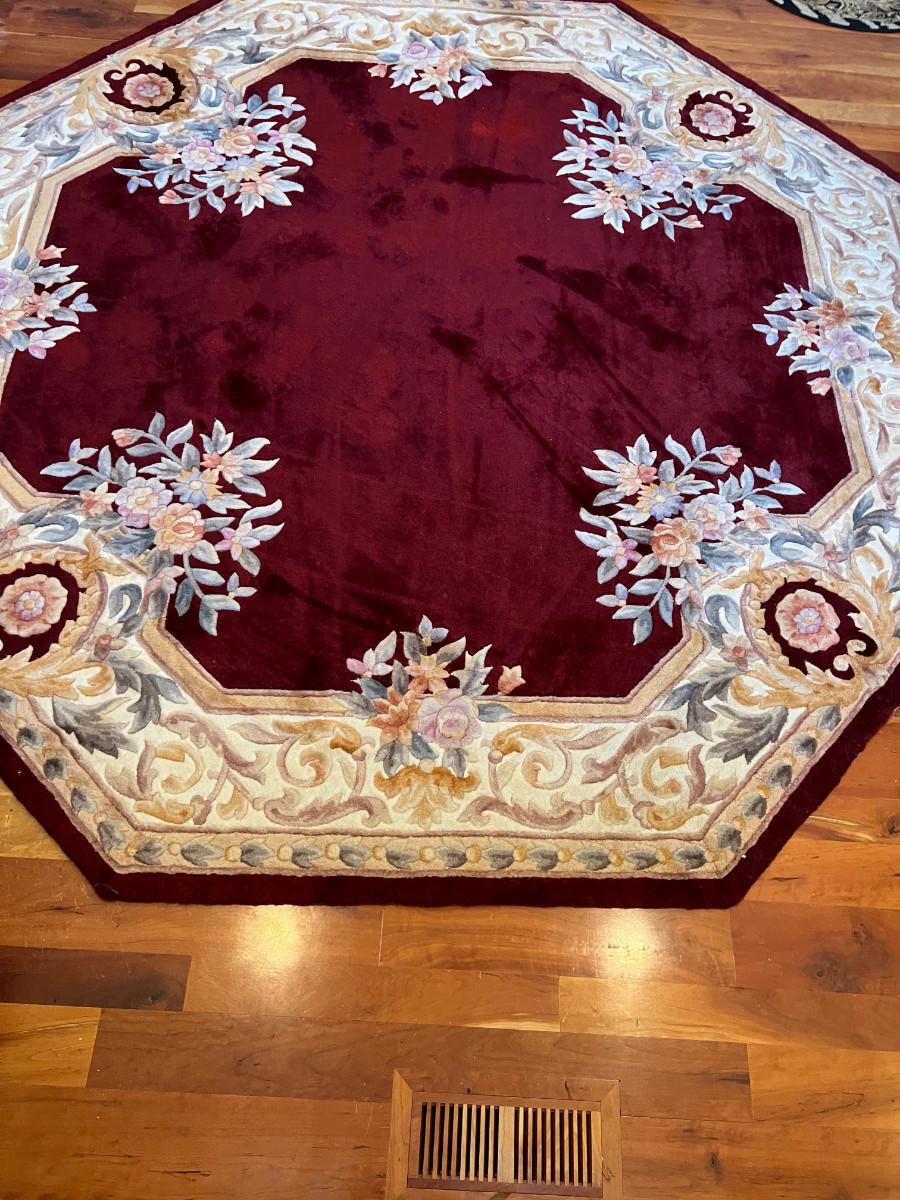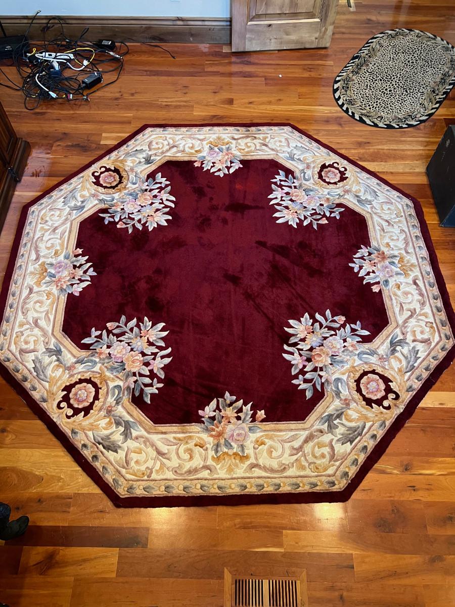 Chinese 100% Wool Fiber Octagon Shaped Red Rug