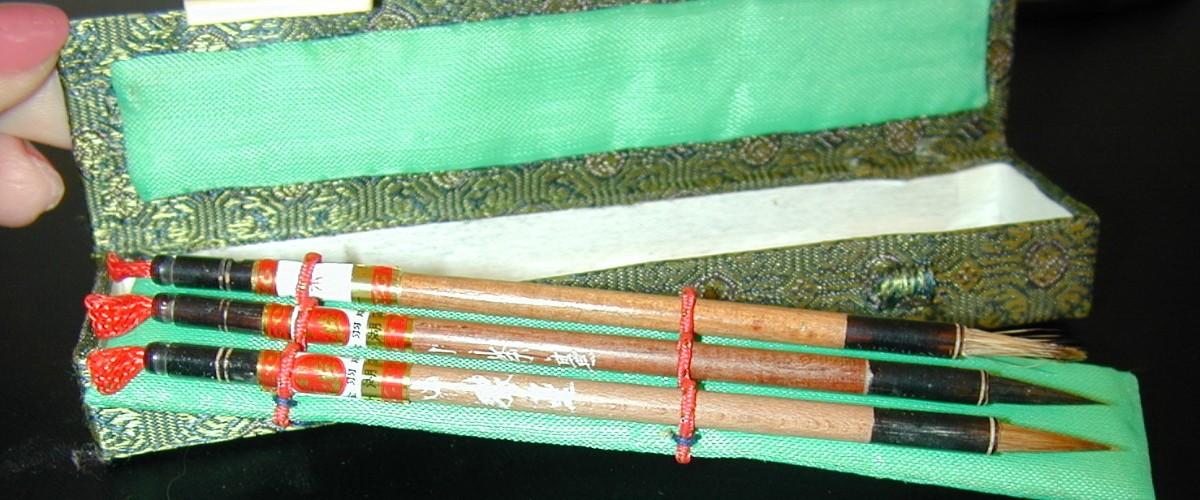 Chinese 3 Brush Calligraphy Writing Set In Box Lot 418