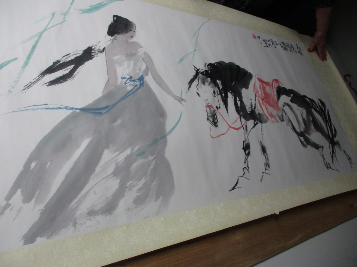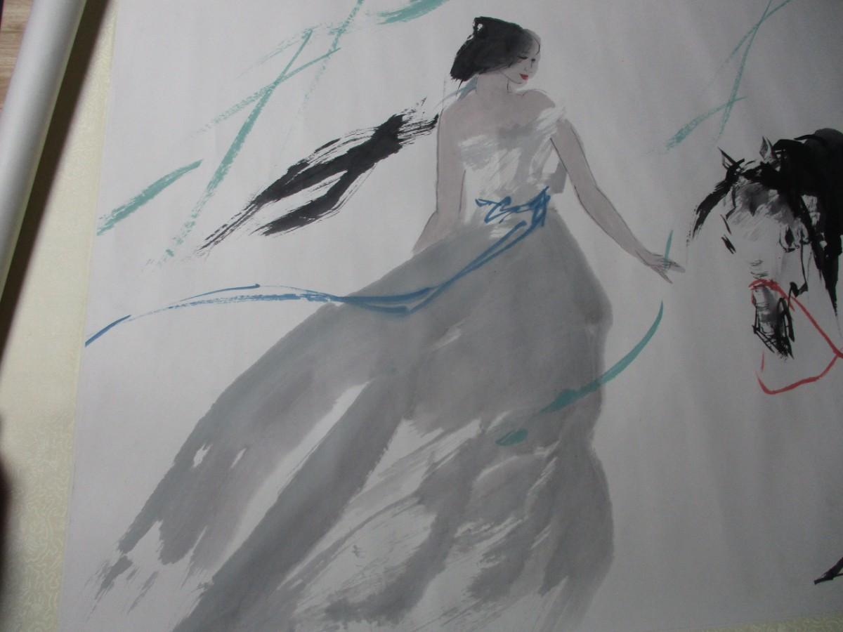Chinese Art On Silk Paper Approx 70" x 32 1/2" - A