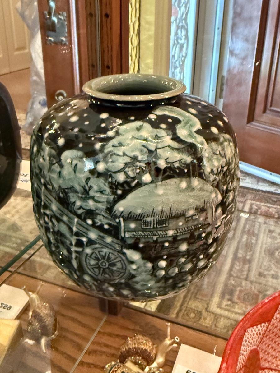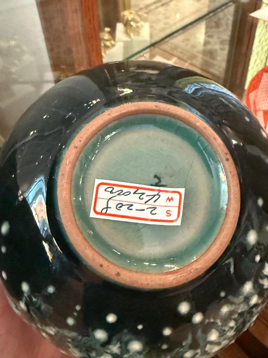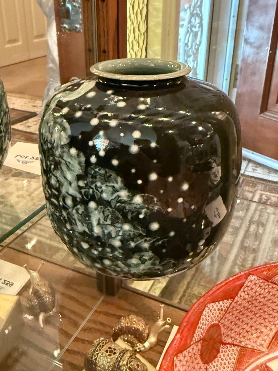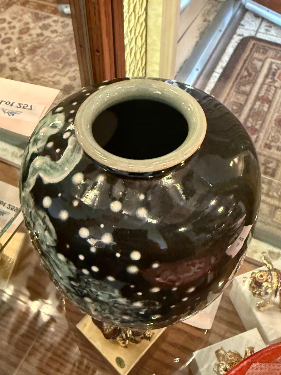 Chinese black decorative raised glaze 6”t x 5.5”w vase