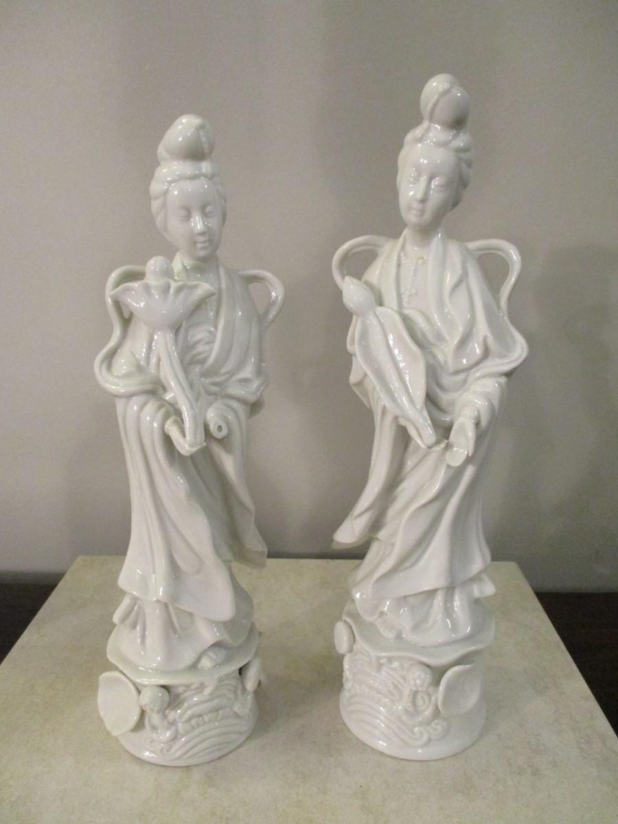 Homco Chinese Blanc De Chine White Porcelain Kwan Yin GuanYin Figurines