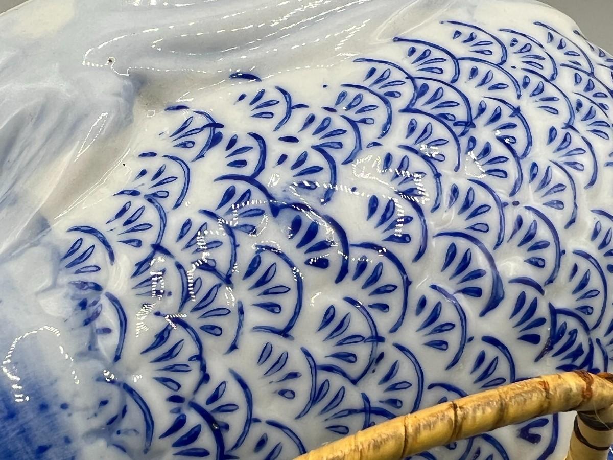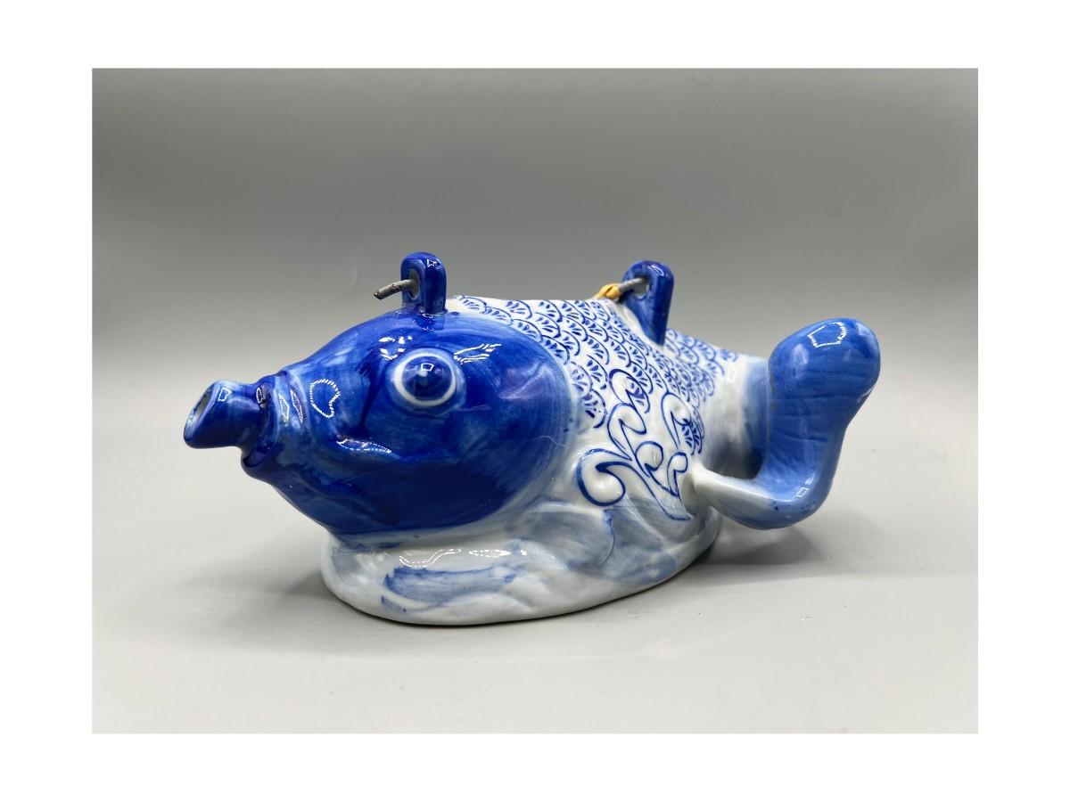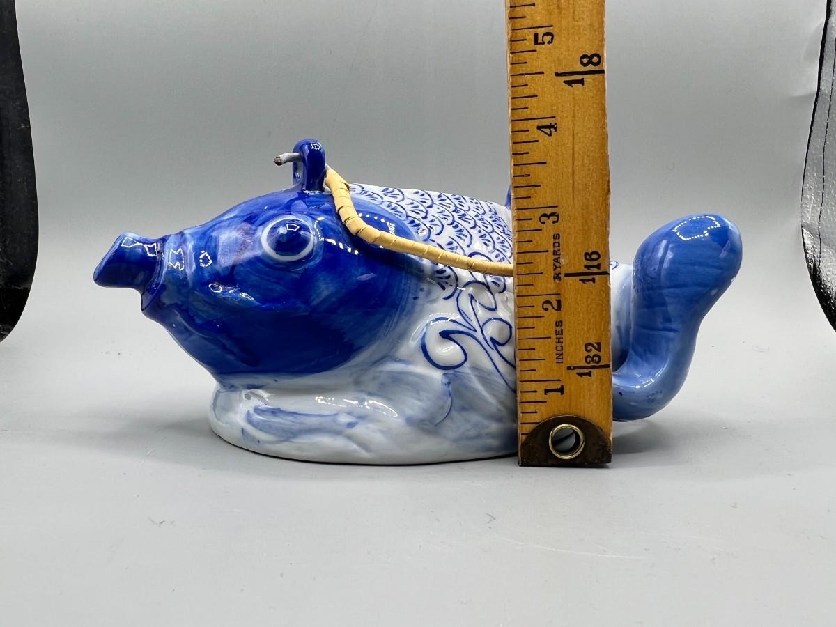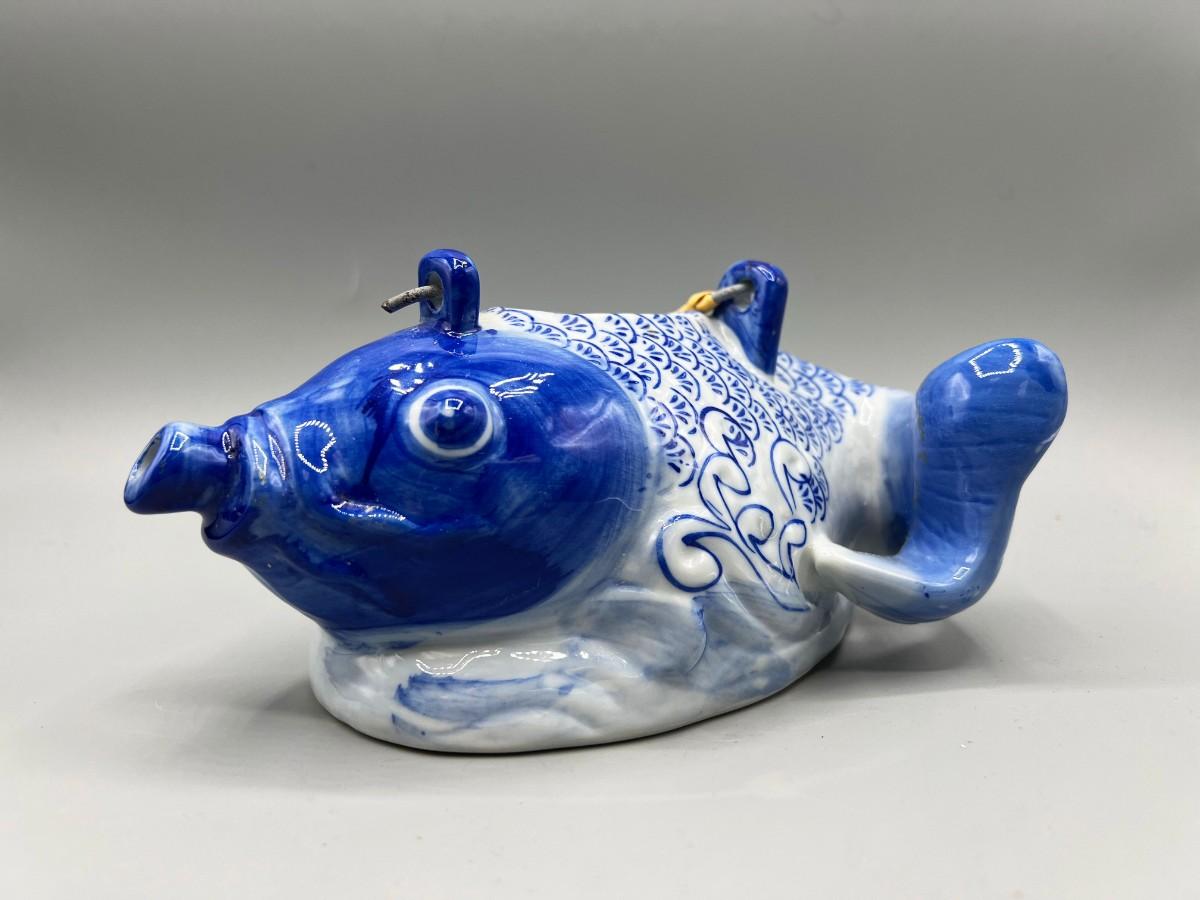 Chinese Blue and White Carp Koi Fish Teapot Hand Painted