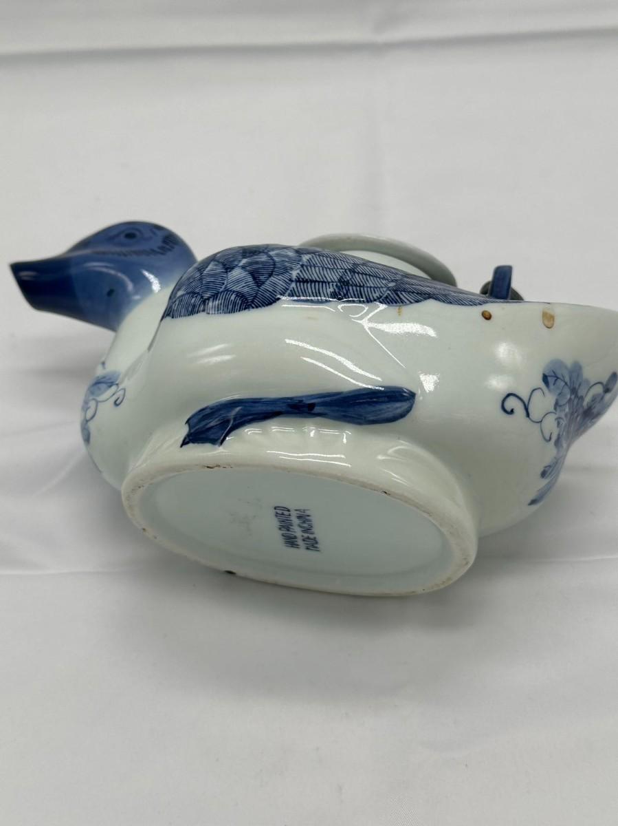Chinese Blue And White Hand Painted Duck Teapot