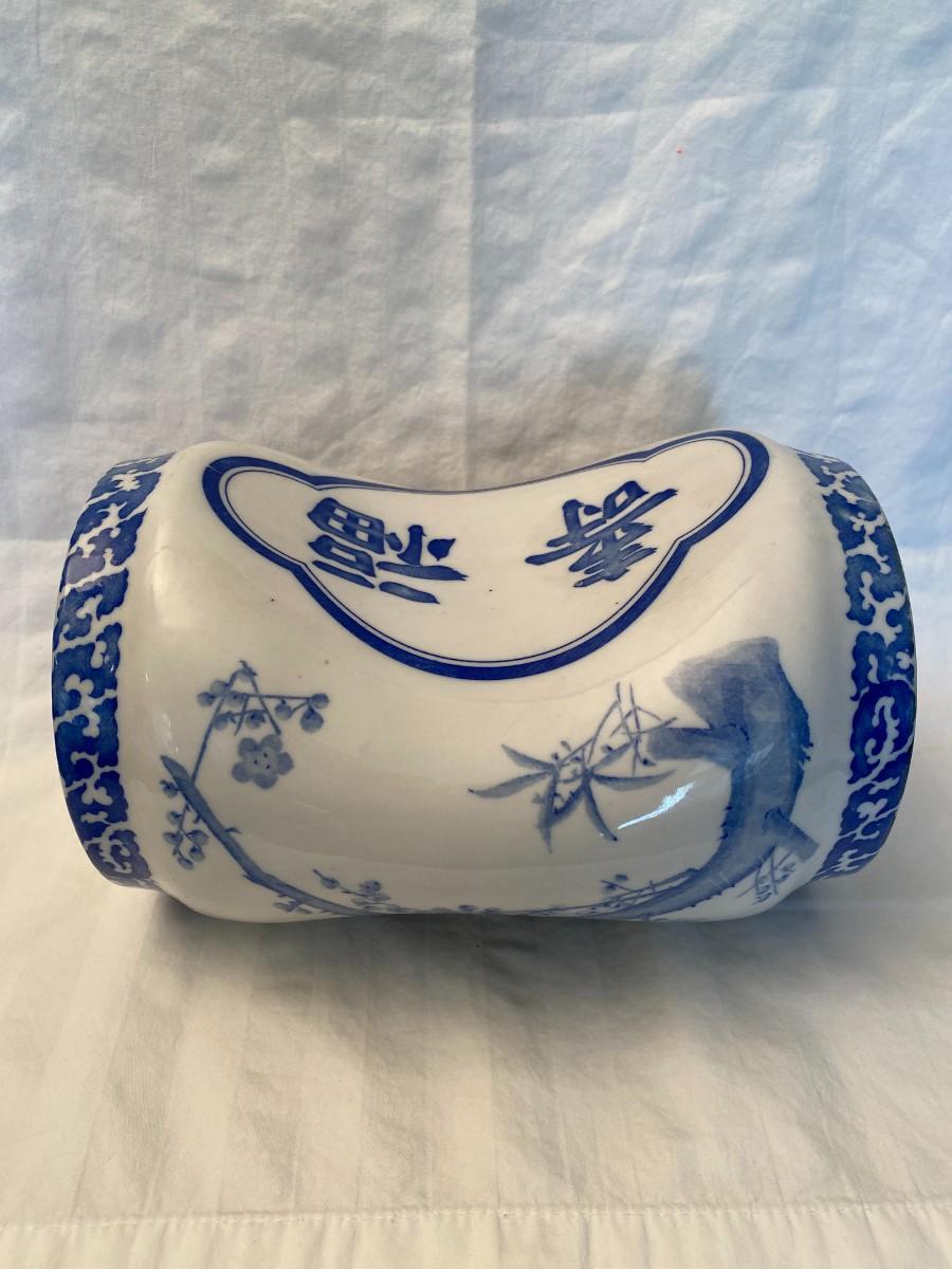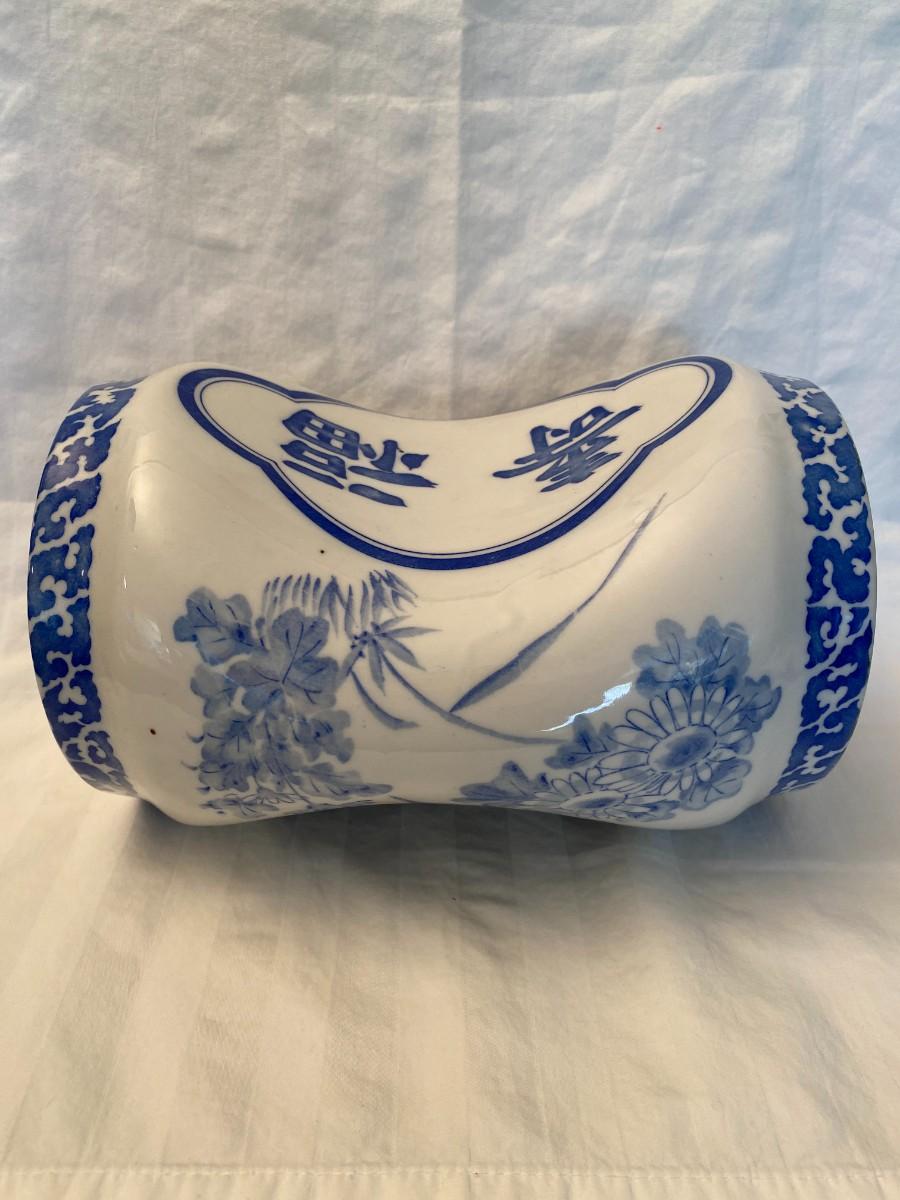 A beautiful piece of blue and white porcelain. Considered a head rest, but mostly used for home décor. A perfect addition to your blue and white collection.