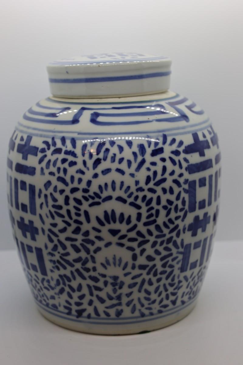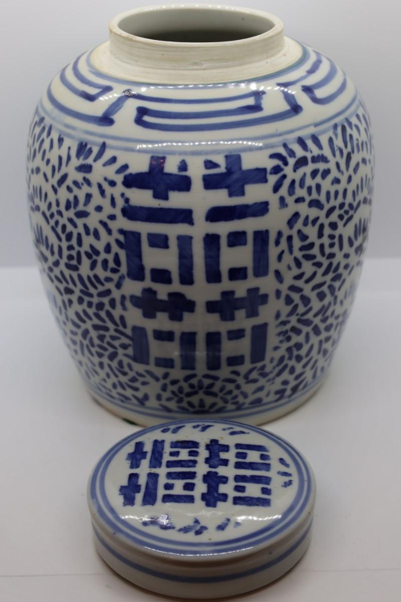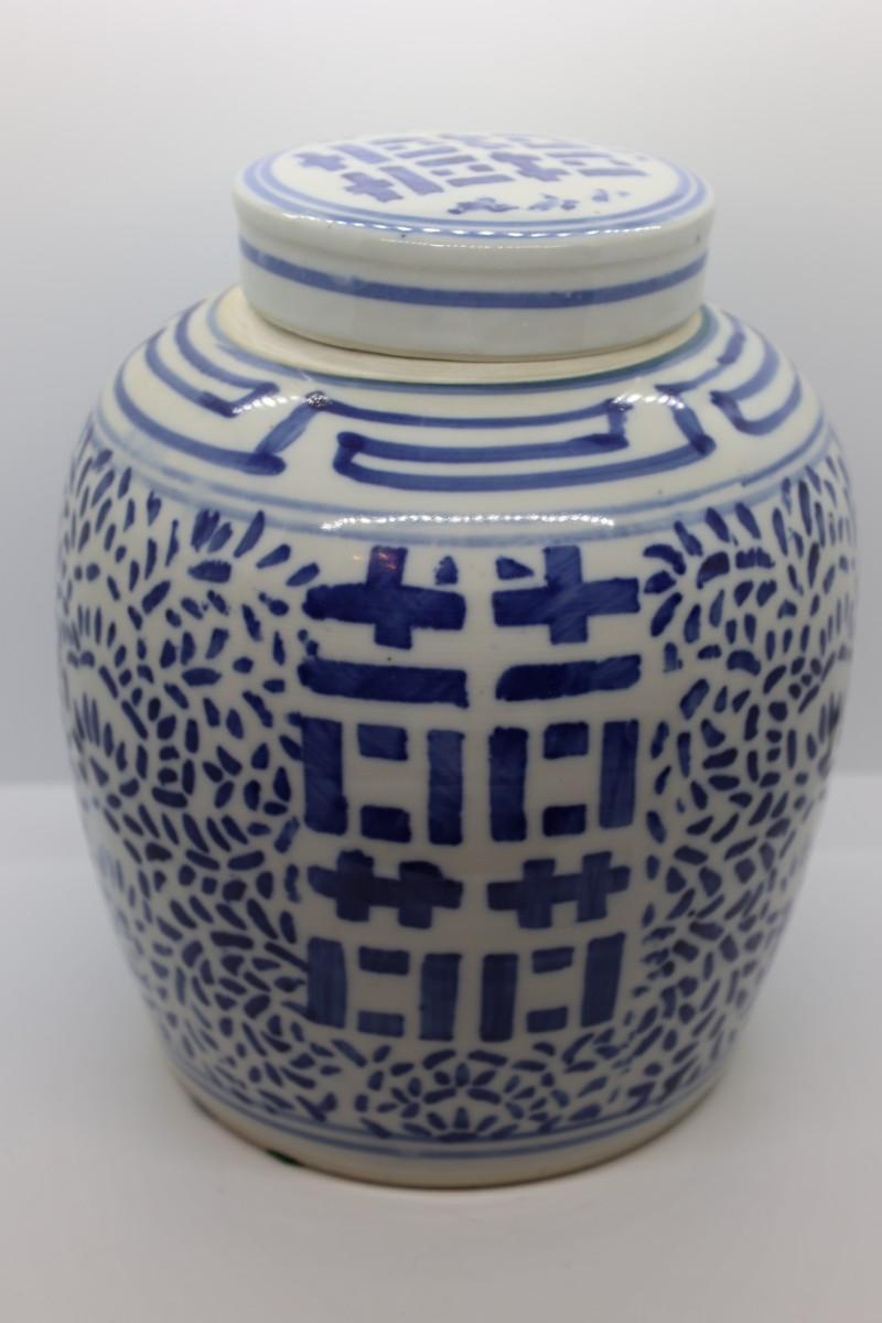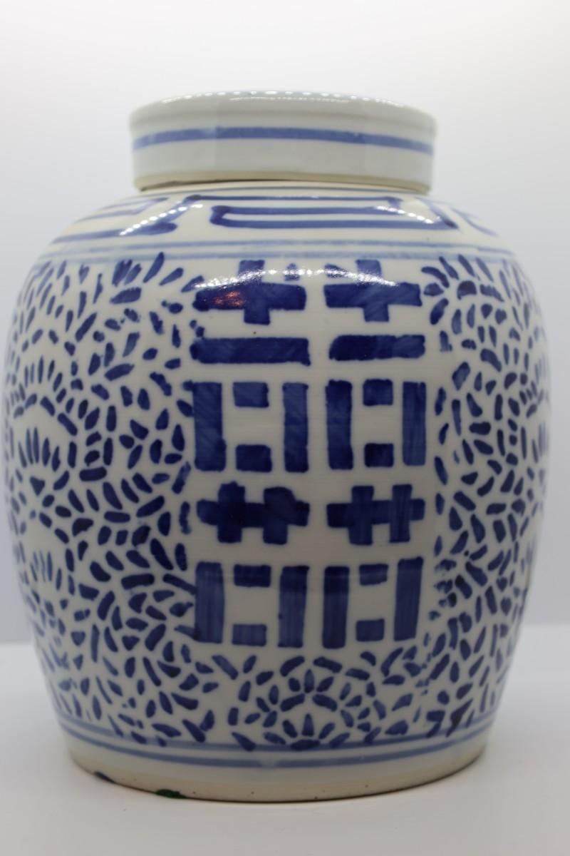 Chinese Blue and White Porcelain Double Happiness Ginger Jar with Lid