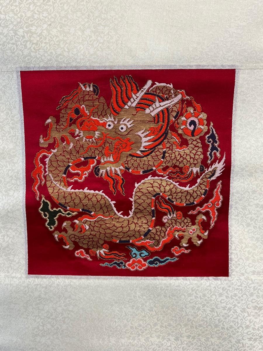 Chinese Blue Silk Scroll W/ Dragon 13"x42"