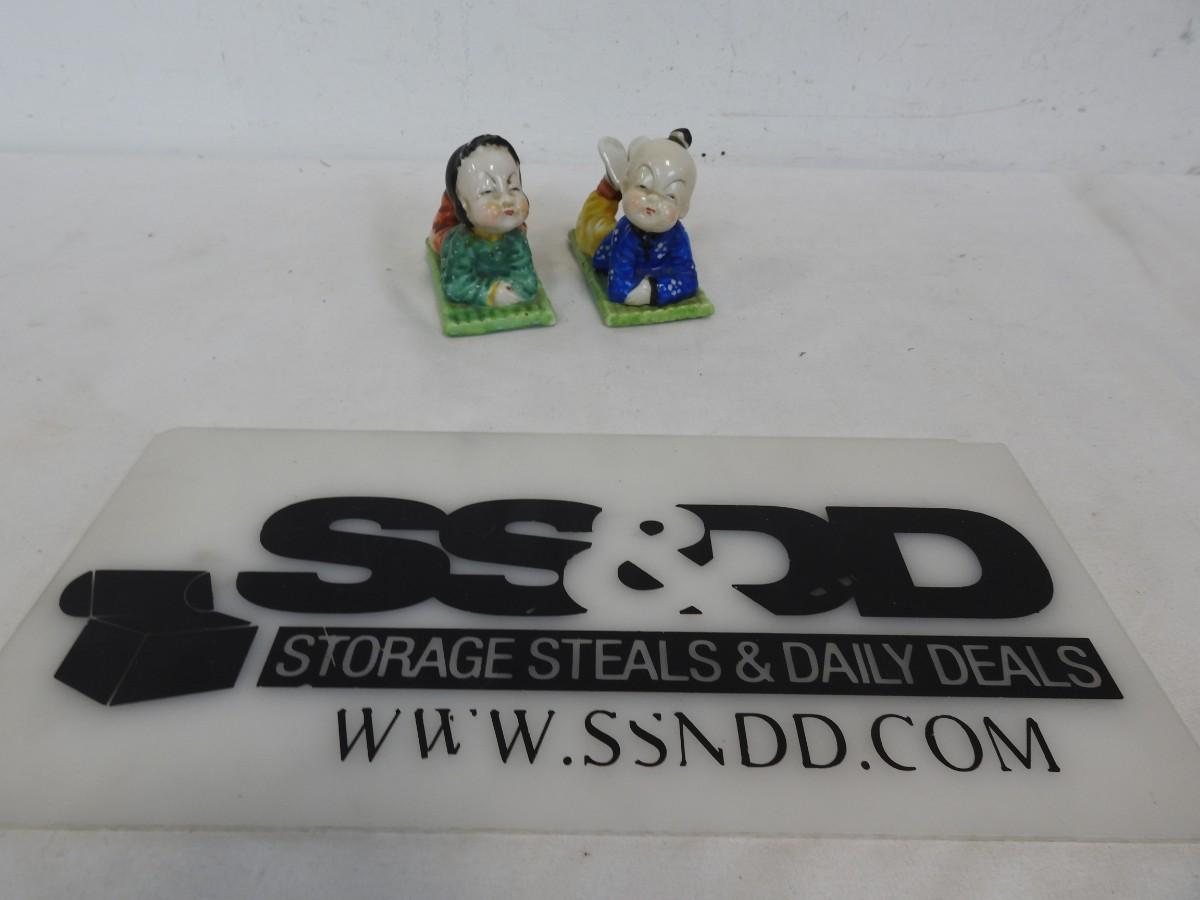 Chinese Boy & Girl Porcelain Figurines (Girl Reparied) Vintage, Made in Japan