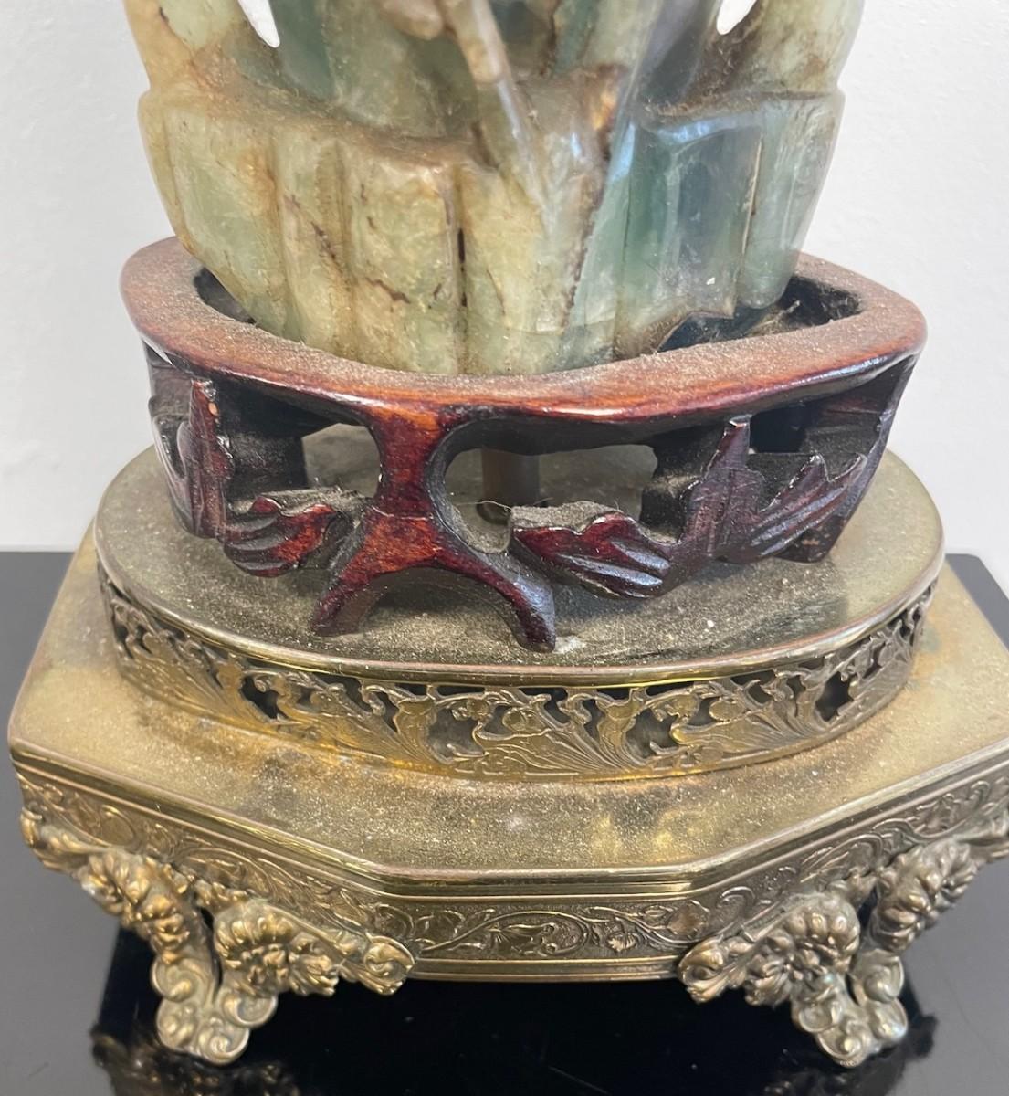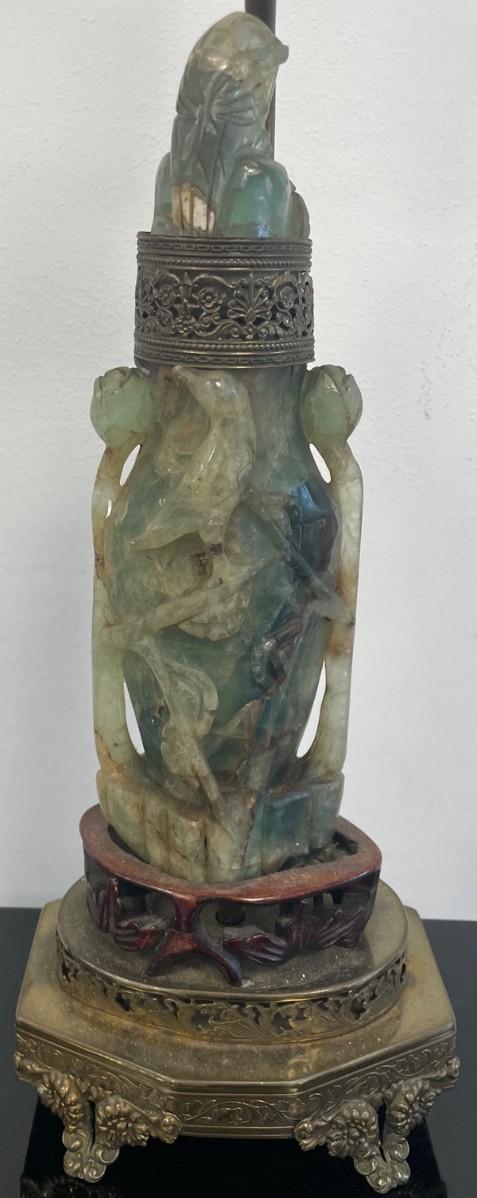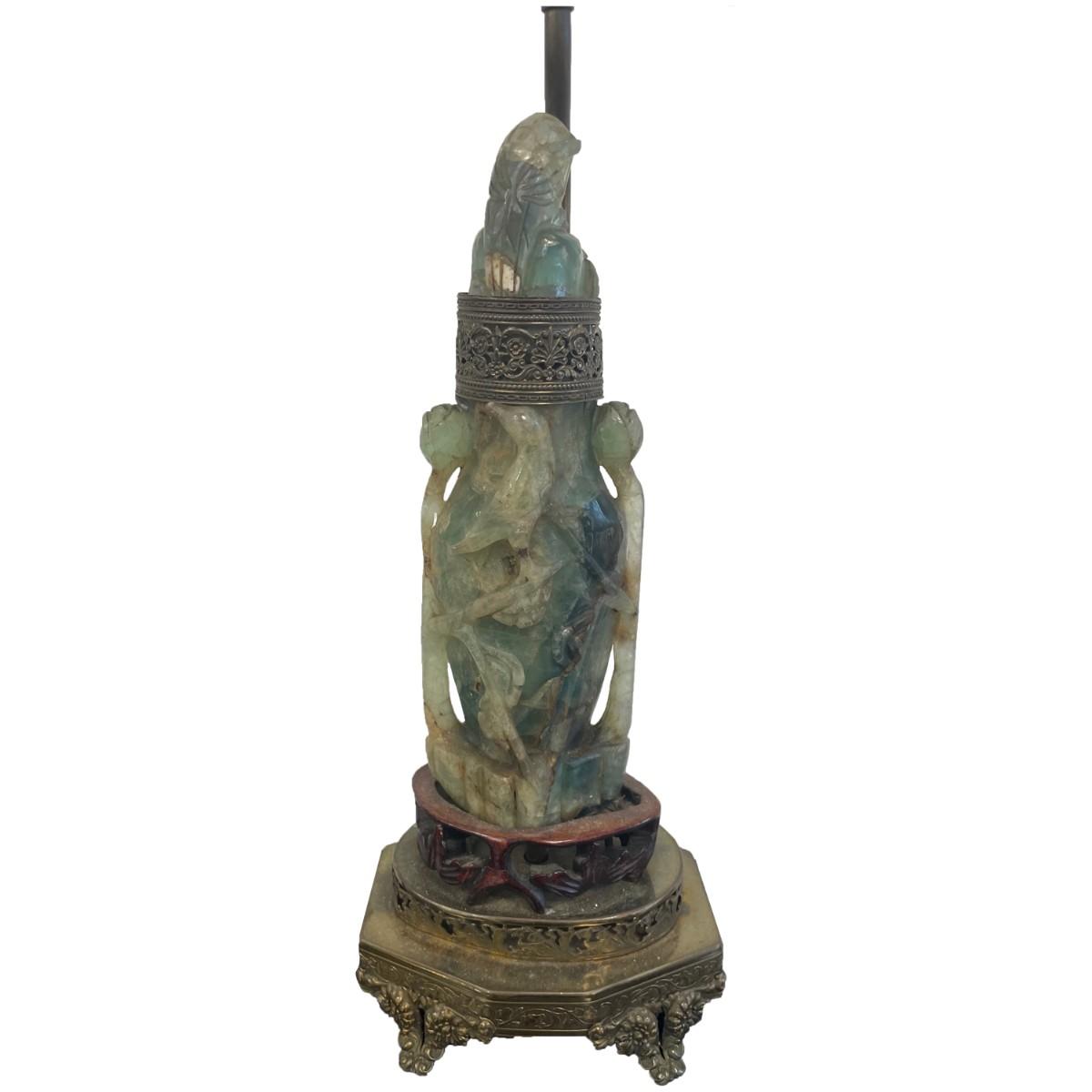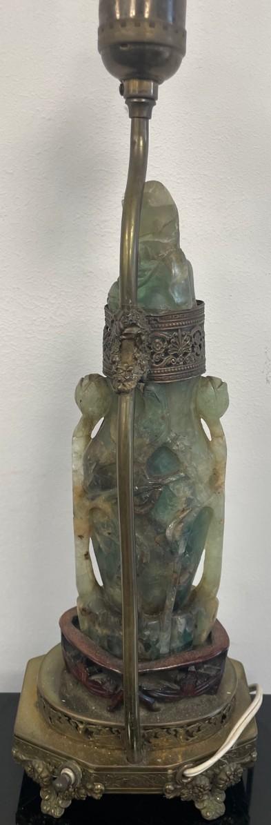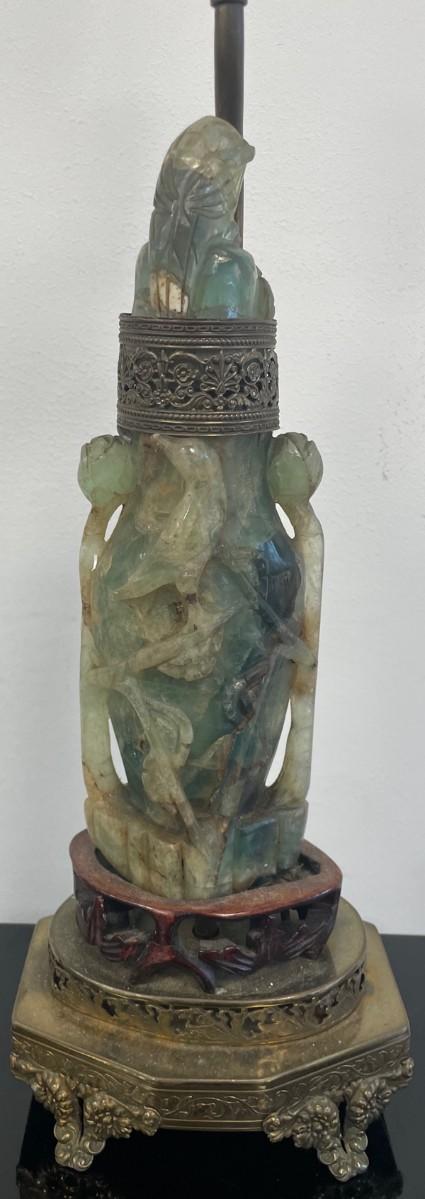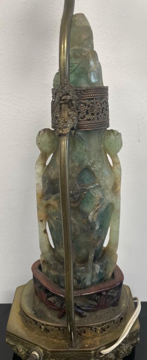 Description: Chinese Carved Green Fluorite Lamp; Measurement approximate: 17"h; Material: FLUORITE