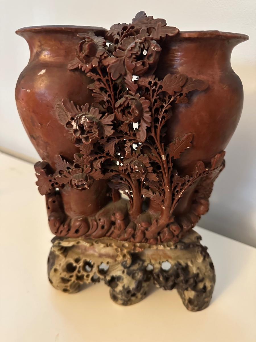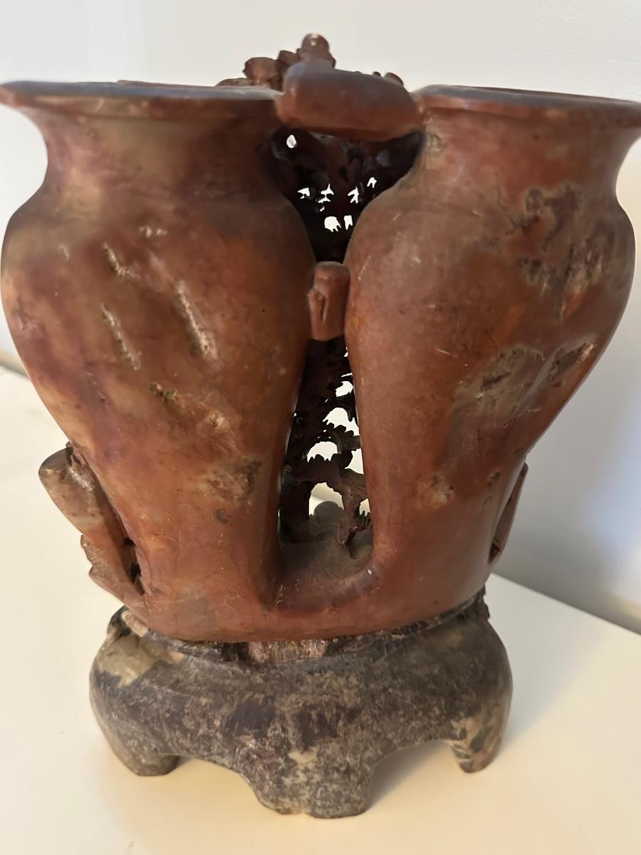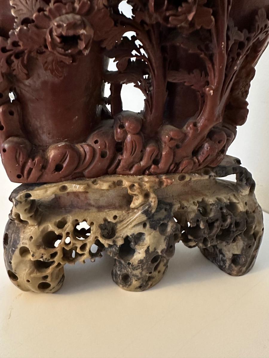 CHINESE CARVED SOAPSTONE DOUBLE VASE