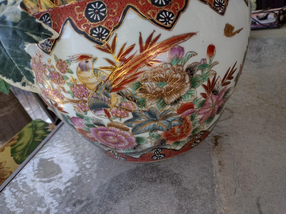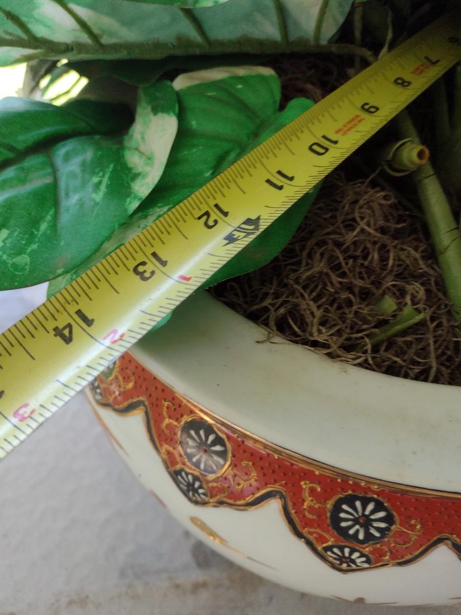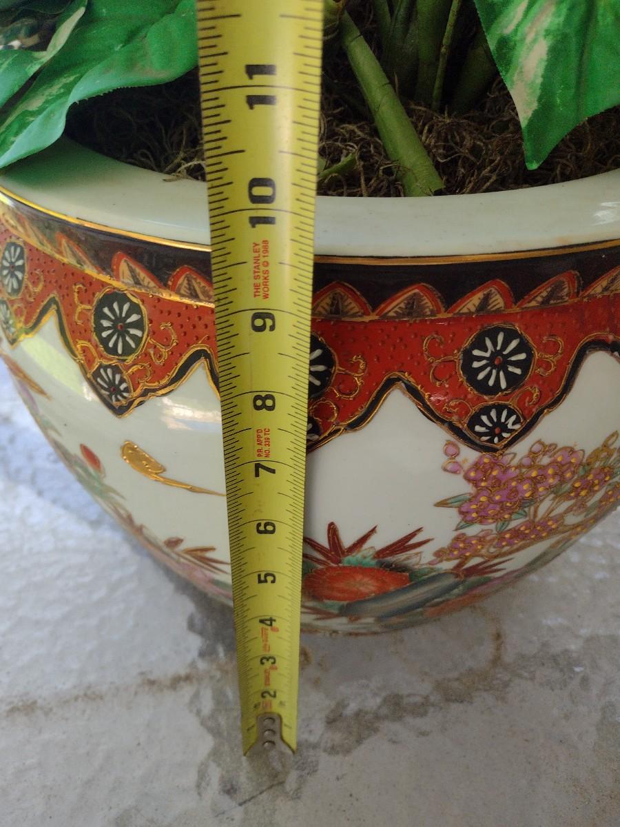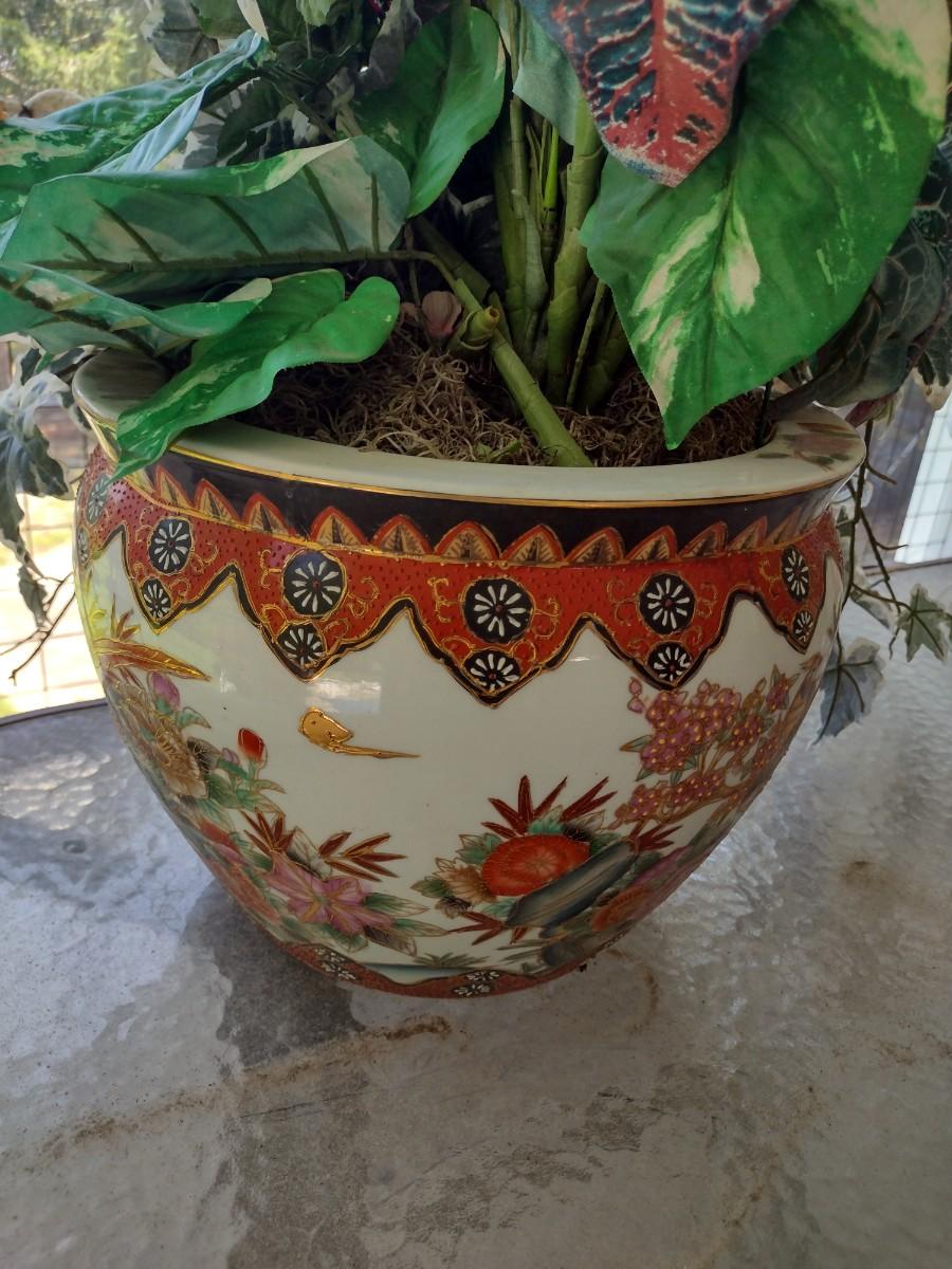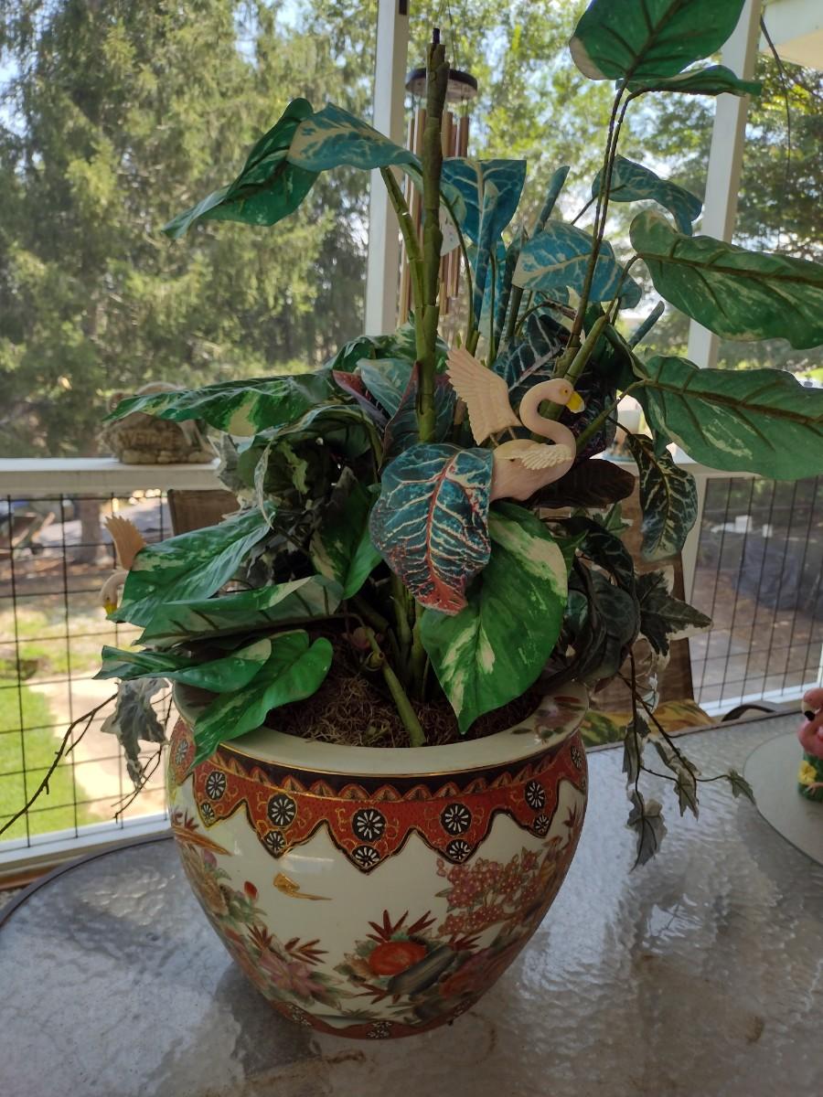 Chinese Ceramic Fishbowl Planter with Artificial Plant