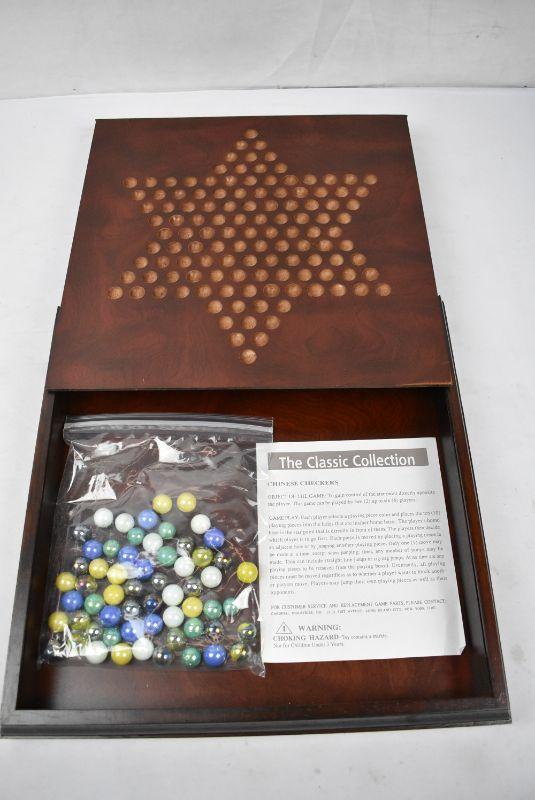 Chinese Checkers Wooden Set with Marbles - Vintage