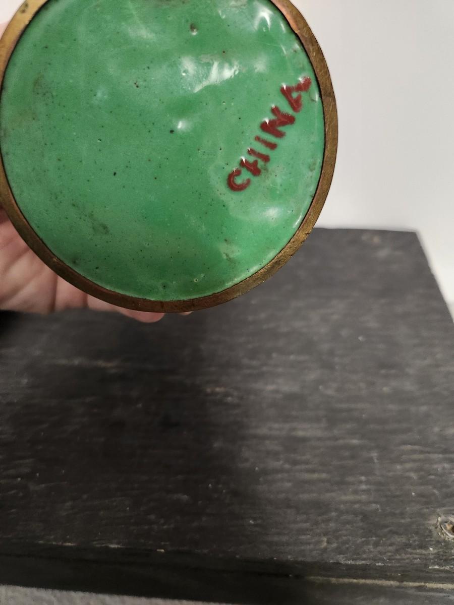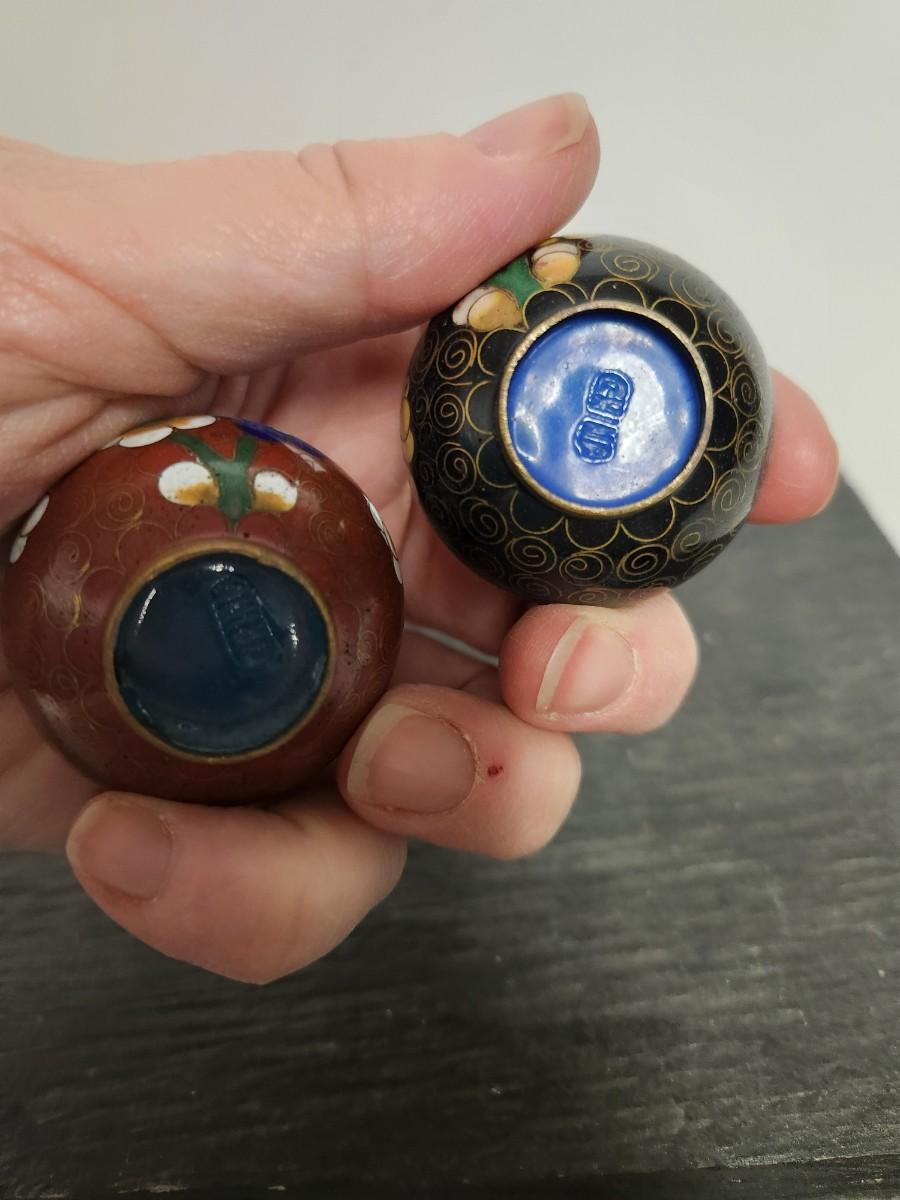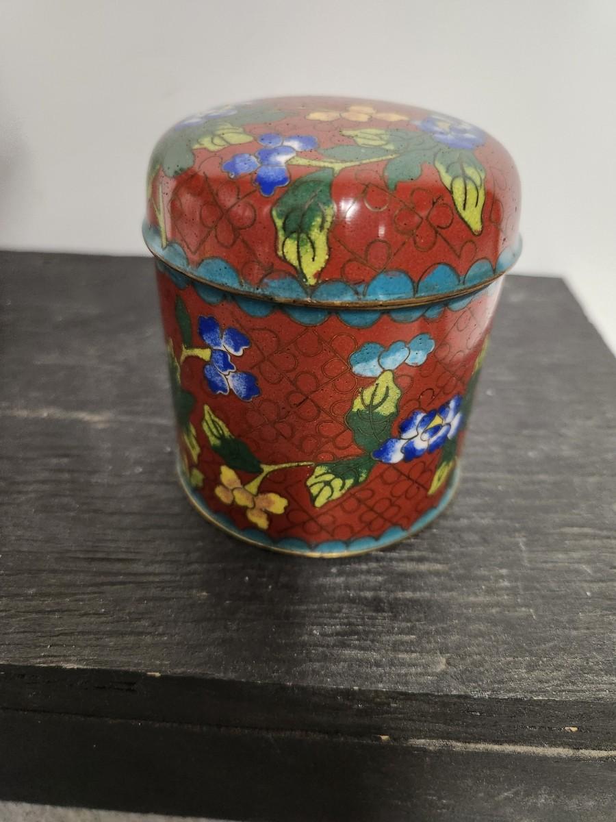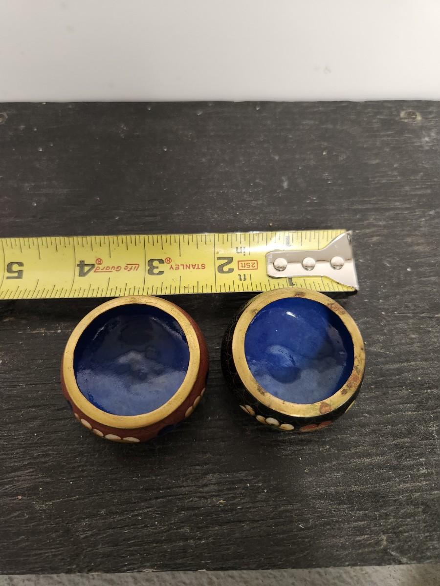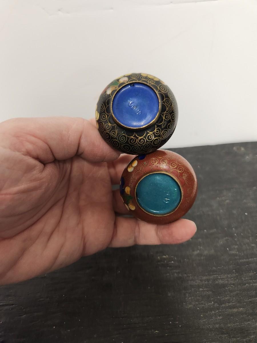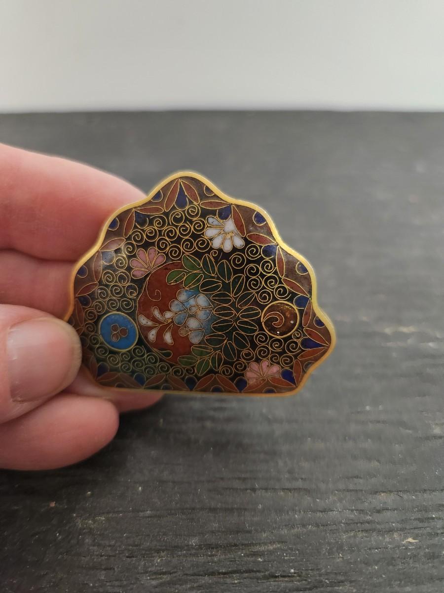 Chinese cloisonne lot includes salt cellars AND salt and pepper shakers. The small piece is a scarf clip.