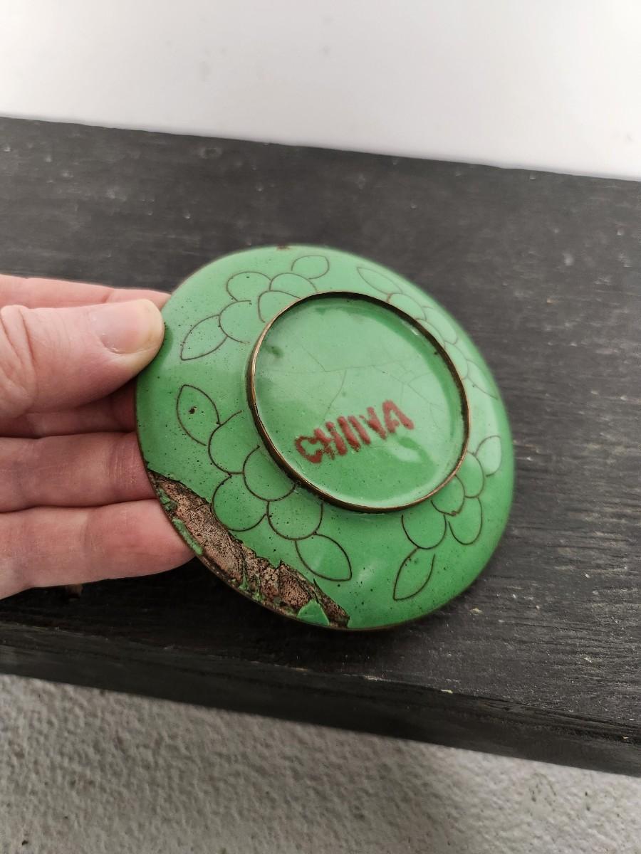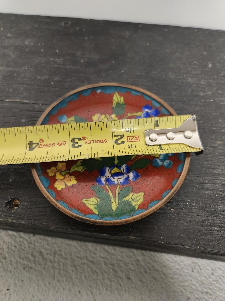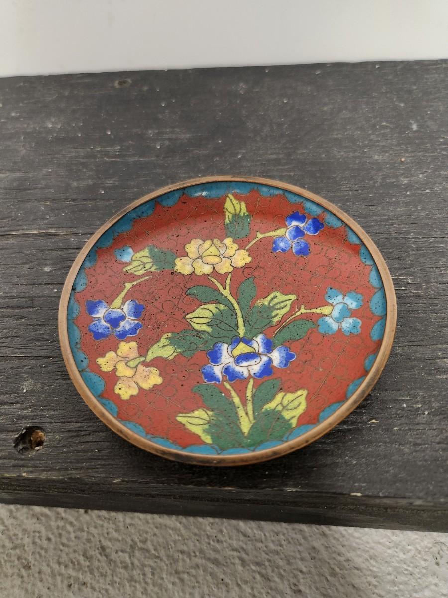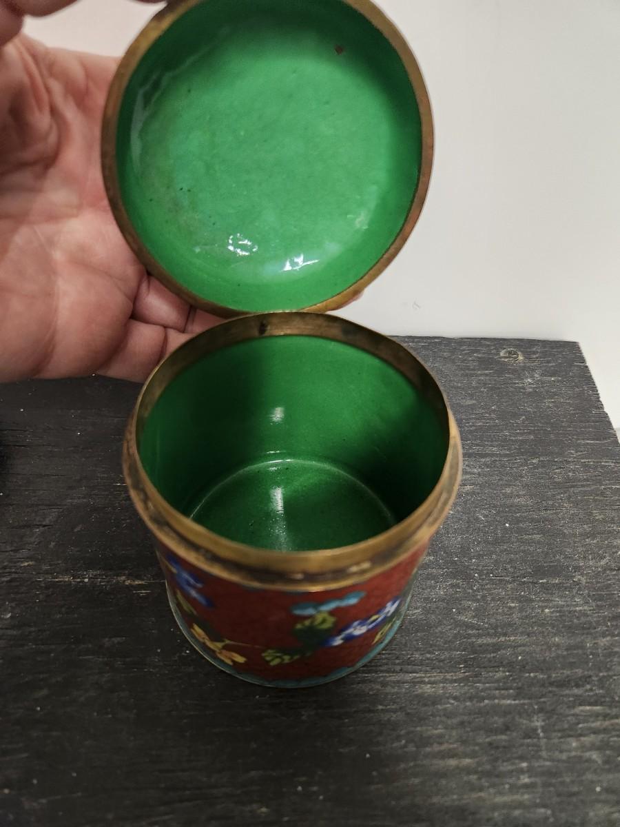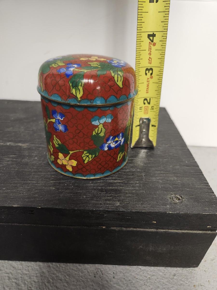 Chinese cloisonne lot includes salt cellars AND salt and pepper shakers. The small piece is a scarf clip.