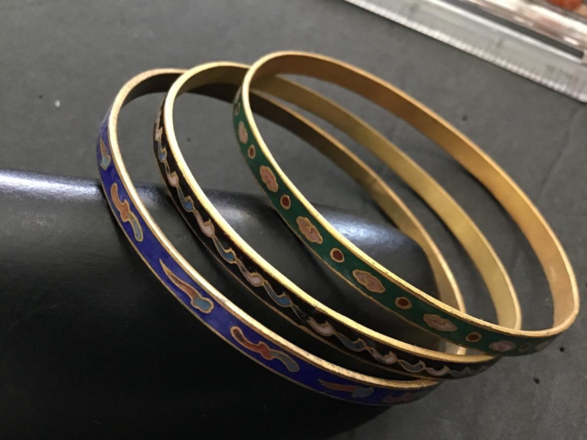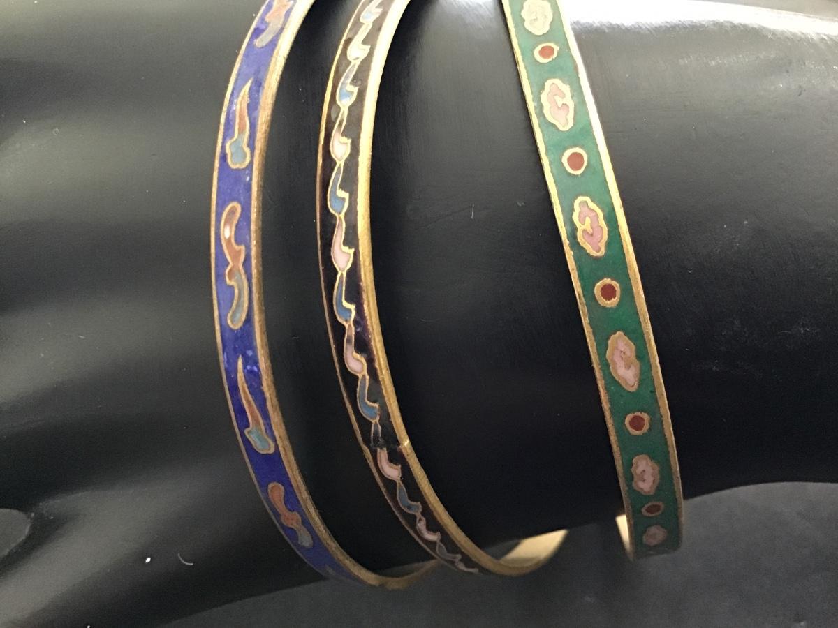 Chinese Cloisonne Enamel Bracelet Vintage set of 3