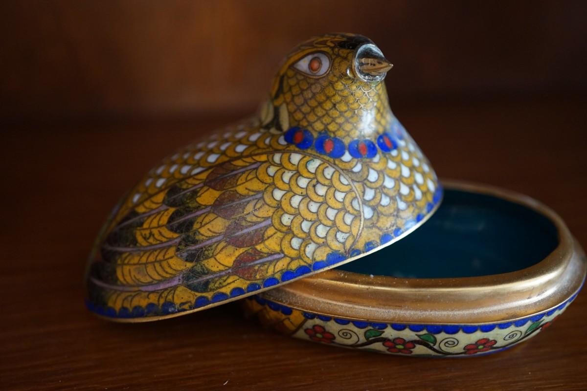 CHINESE CLOISONNE QUAIL COVERED BOX