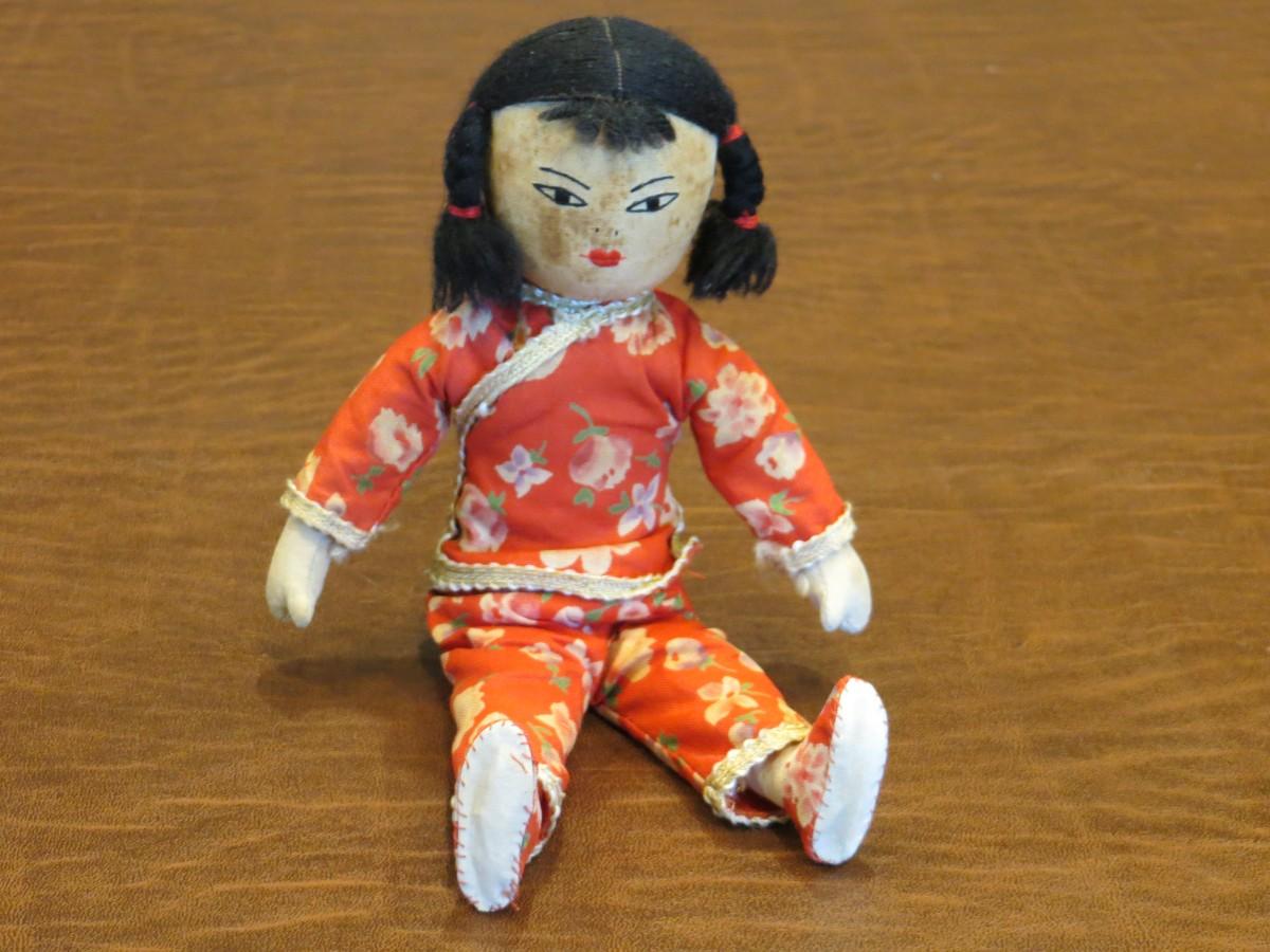 Chinese cloth doll with embroidered face from the 1960 World's Fair in NYC, 5" tall