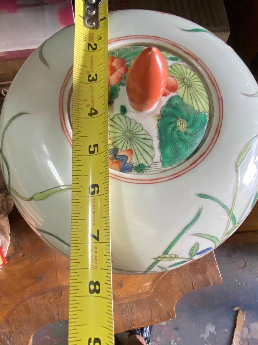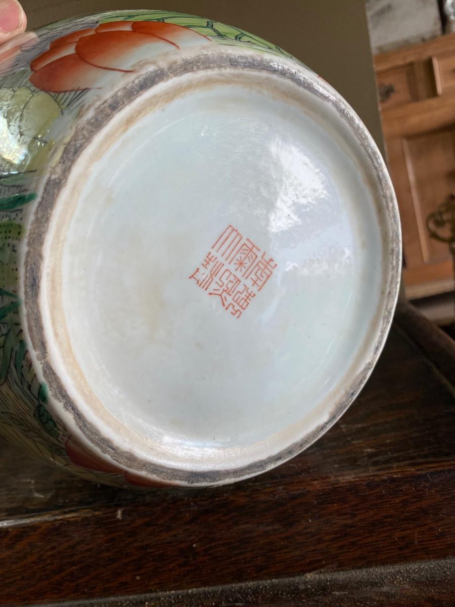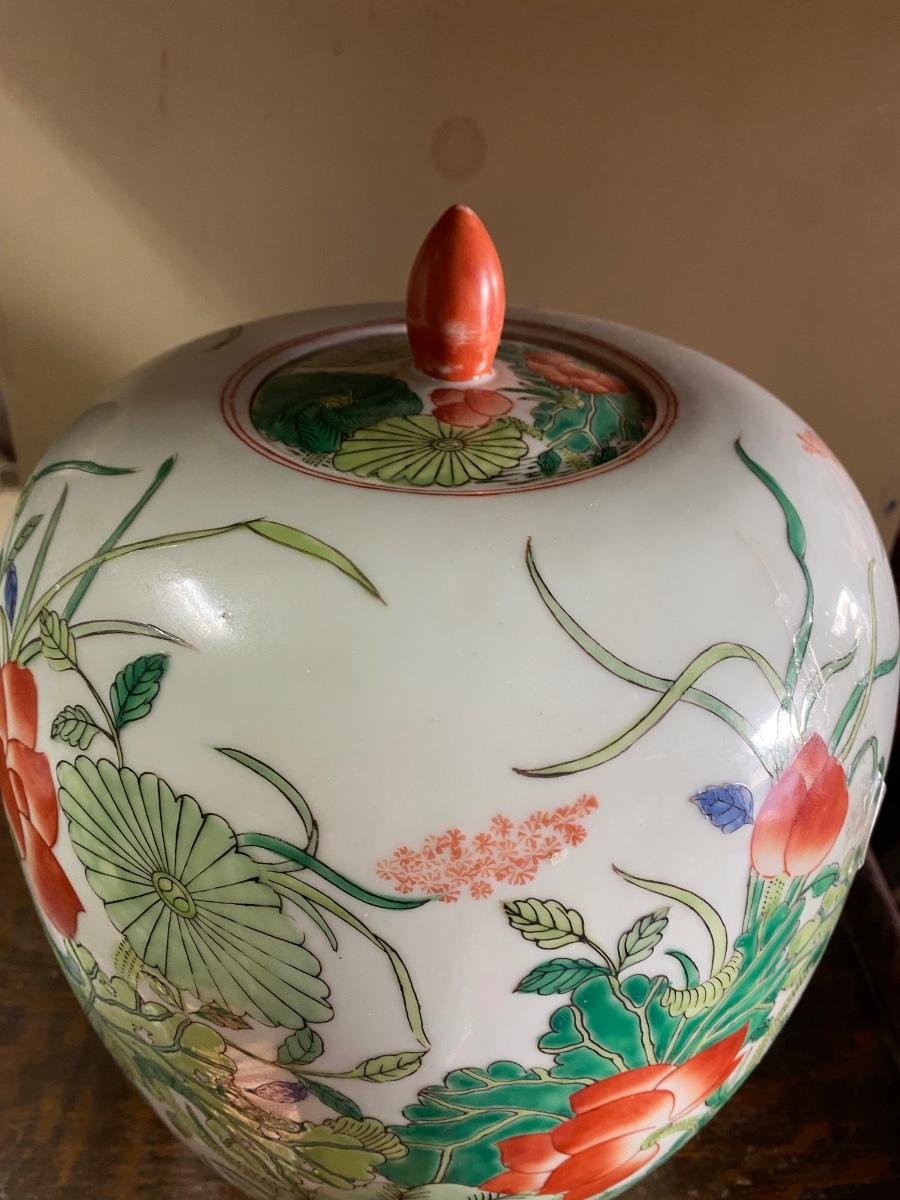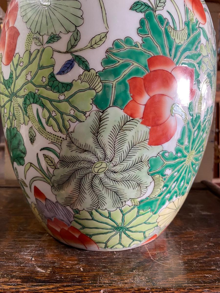 Chinese Export Porcelain Ginger Jar with lid. Beautiful floral design, possible handpainted, markd on bottom. IN excellent conditon. 12" high.