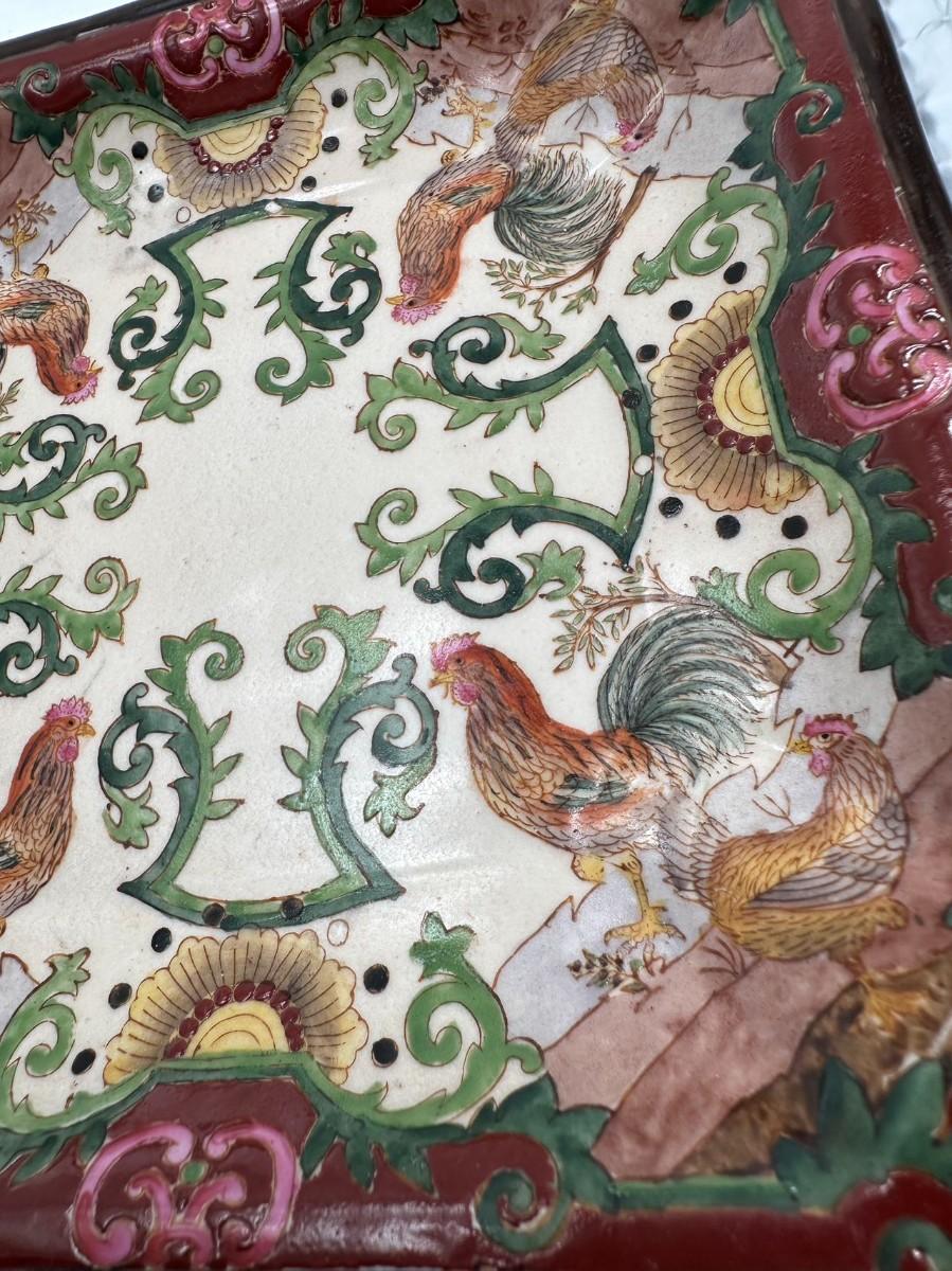 Chinese Export Porcelain Vintage Square Rooster Plate