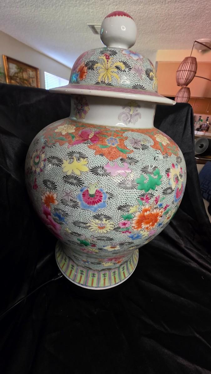 Chinese Famille Rose “Thousand Flowers” Temple Jar – Hand-Painted Porcelain Artistry