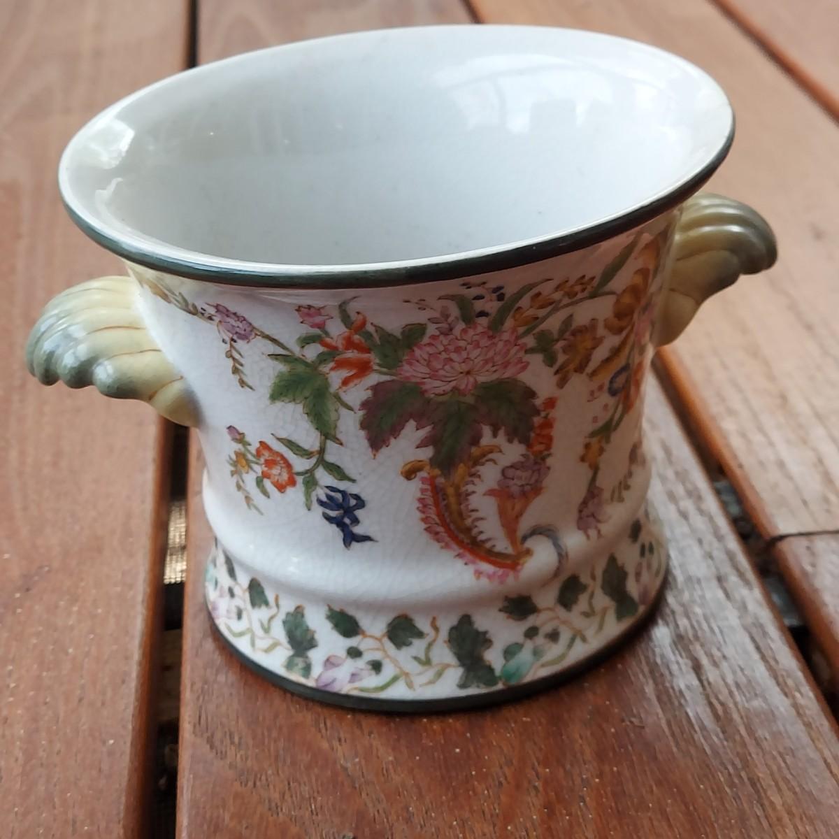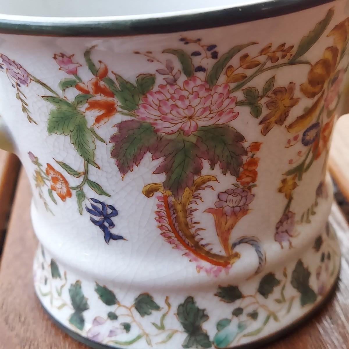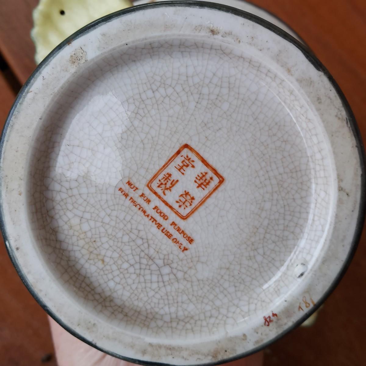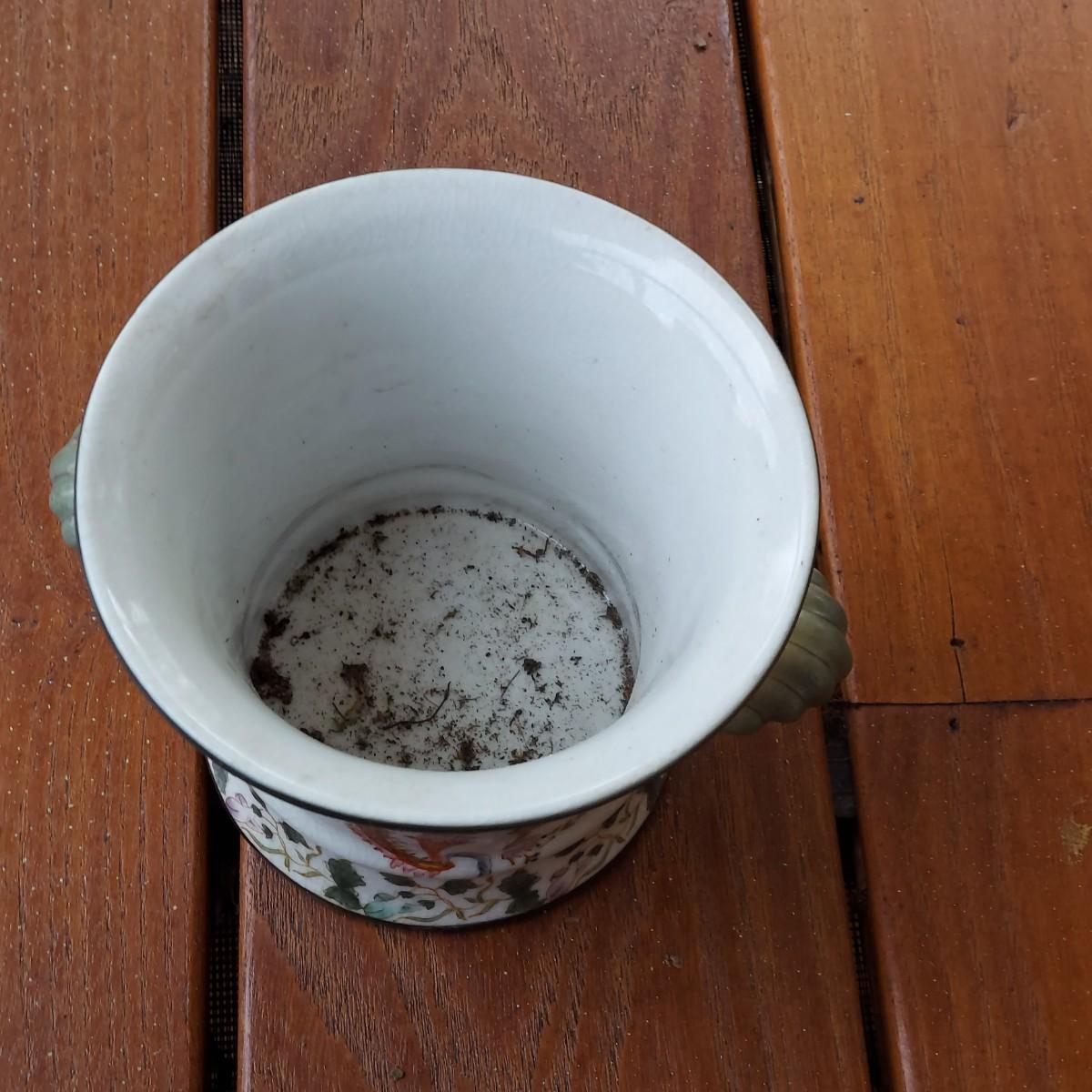 Lot includes three pots in a Chinese Famille porcelain style. The glaze style has a crazing effect. The large, footed pot measures 10” x 7” x 6"H. Please see photos for details. Shipping available