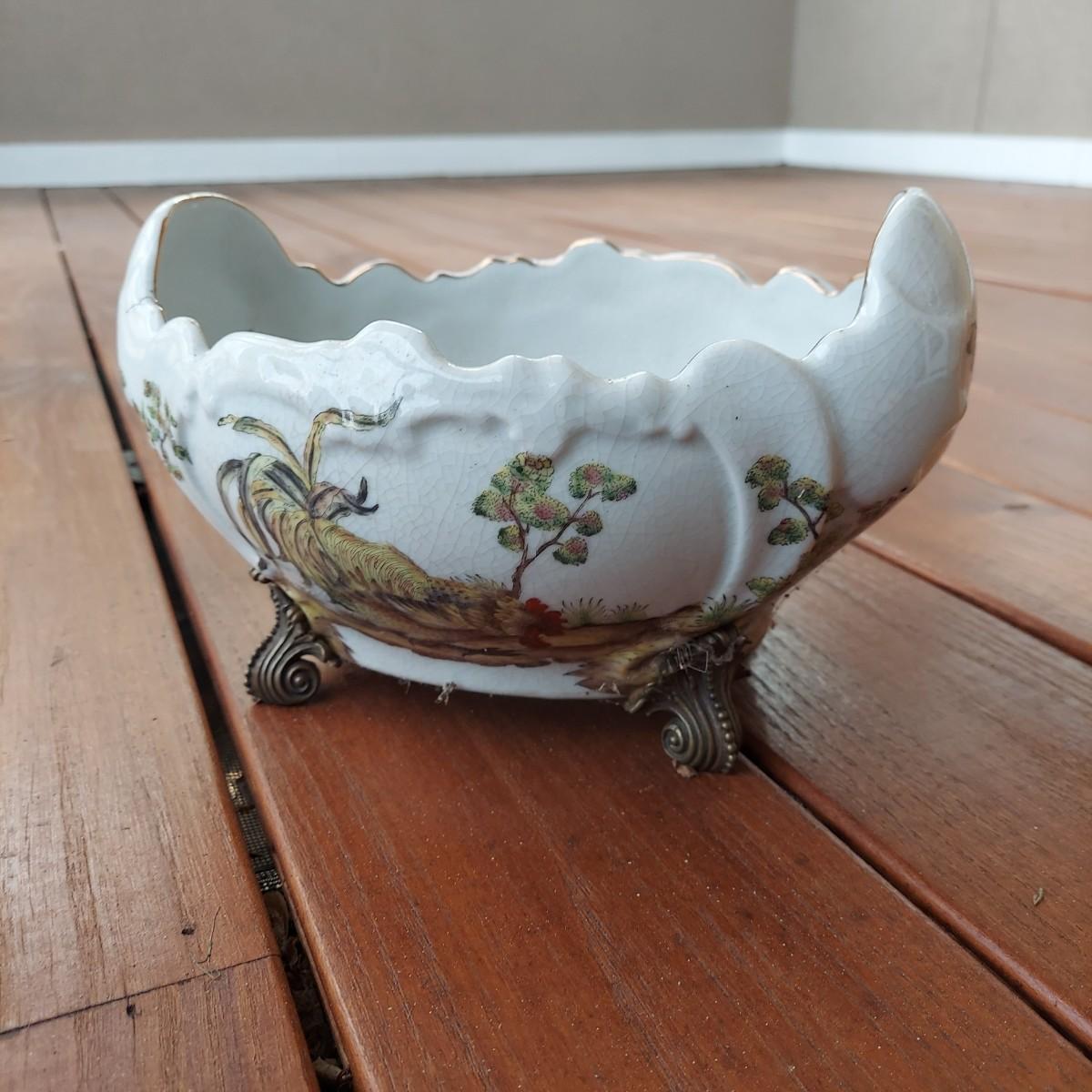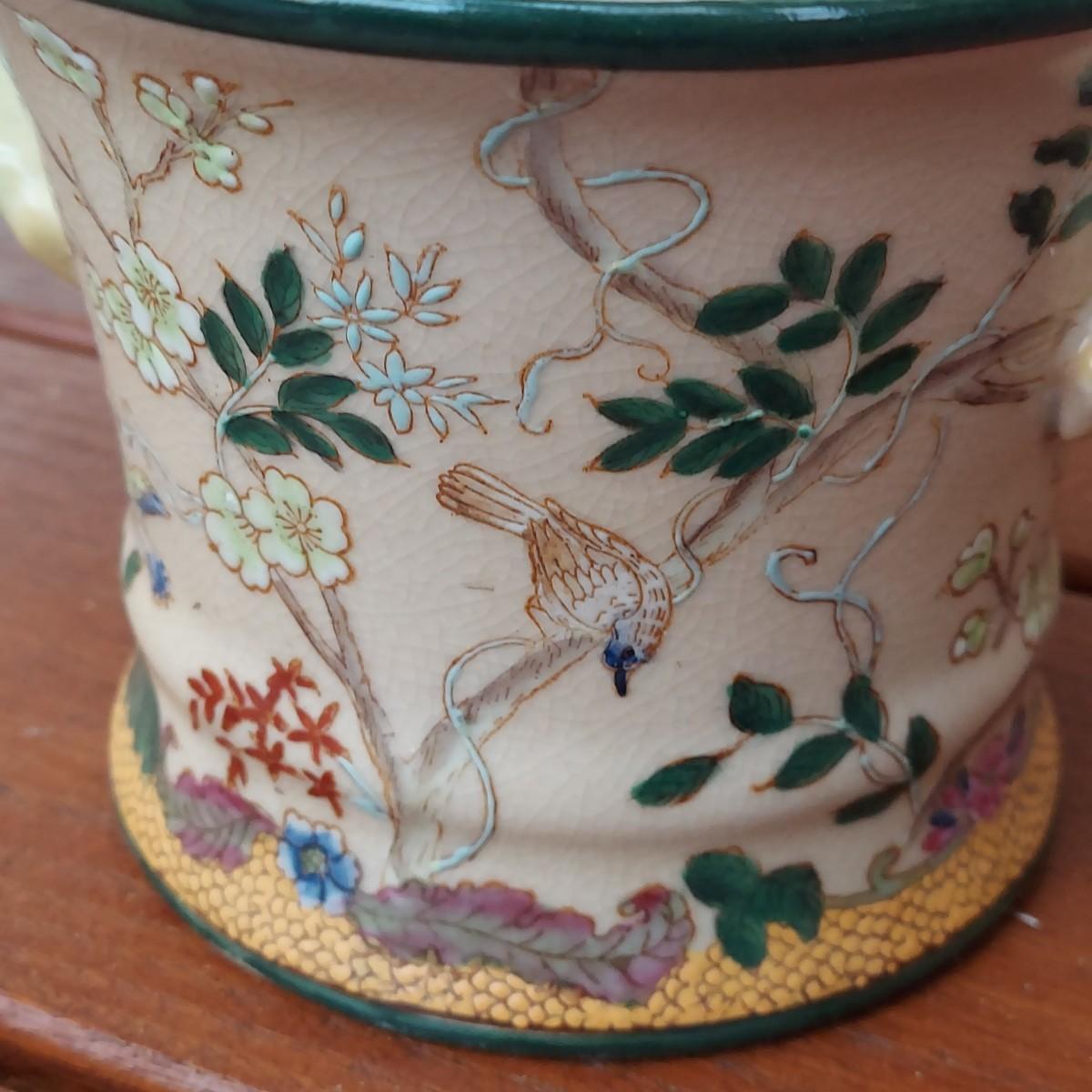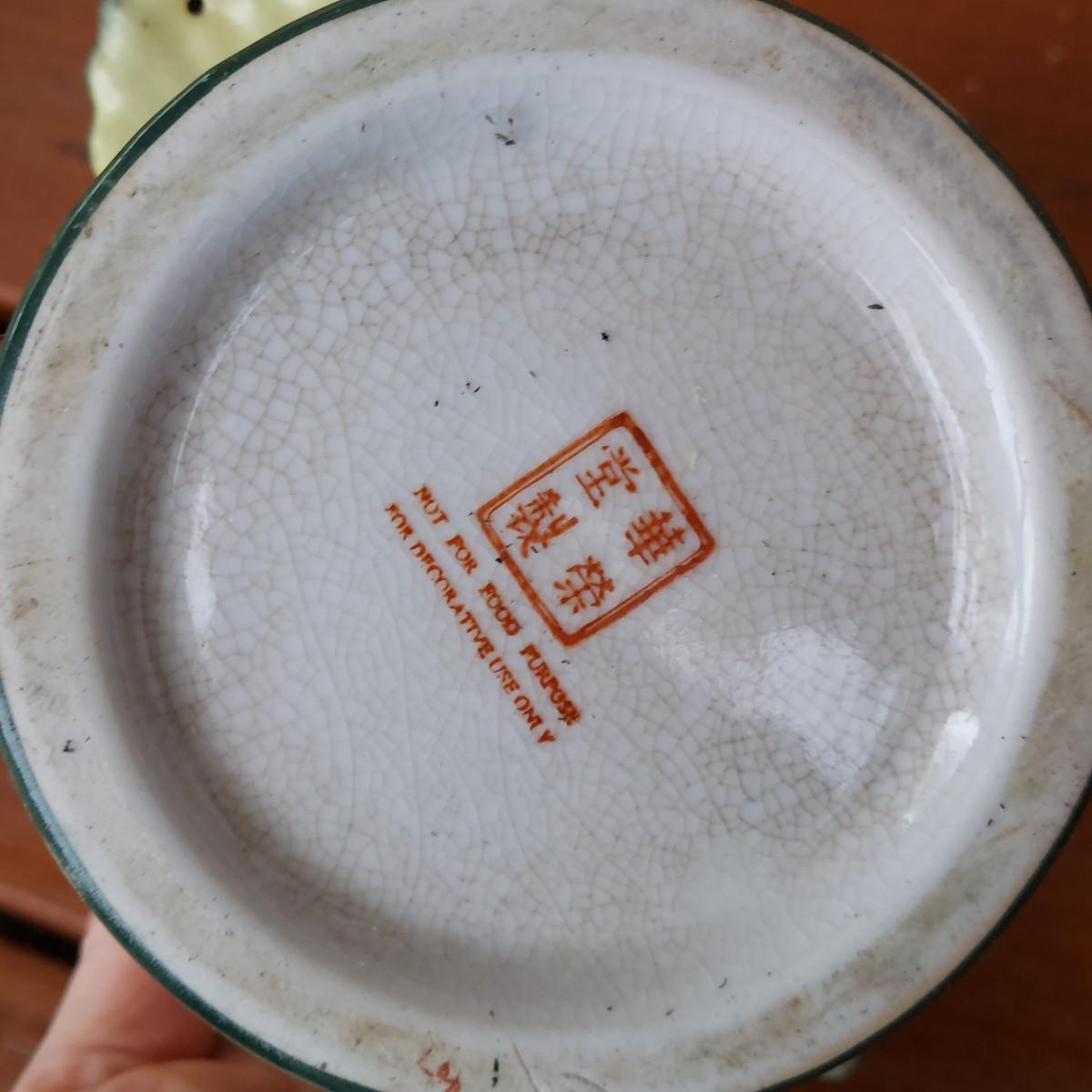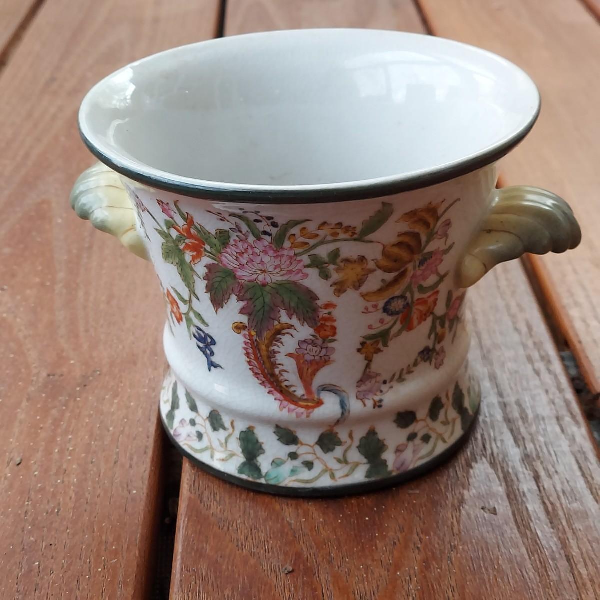 Lot includes three pots in a Chinese Famille porcelain style. The glaze style has a crazing effect. The large, footed pot measures 10” x 7” x 6"H. Please see photos for details. Shipping available