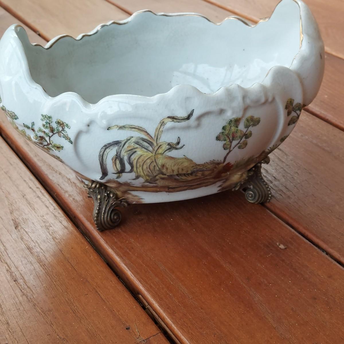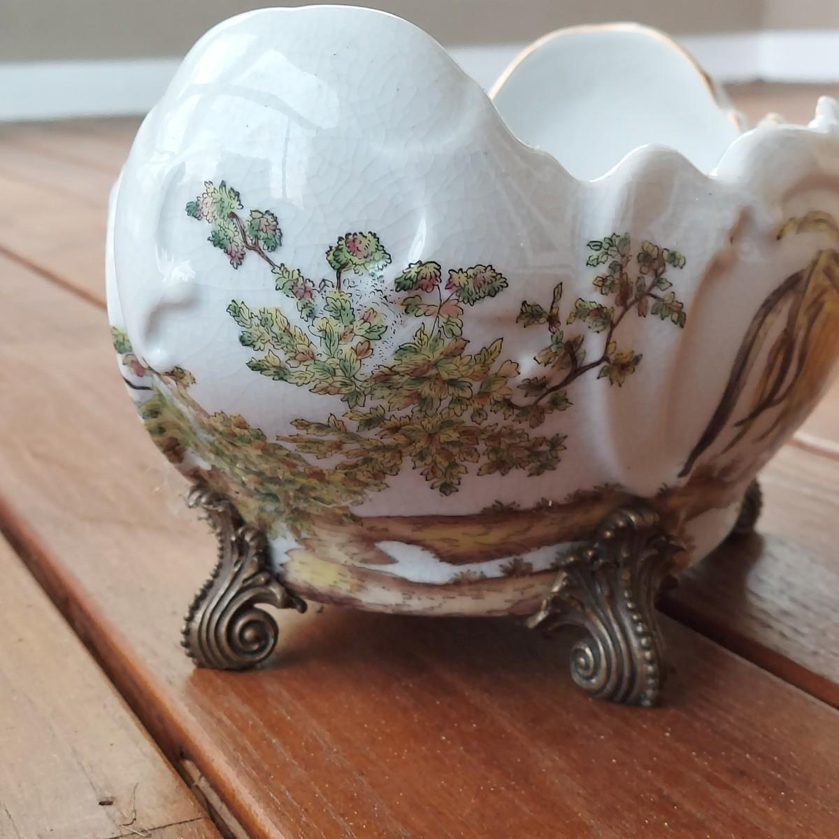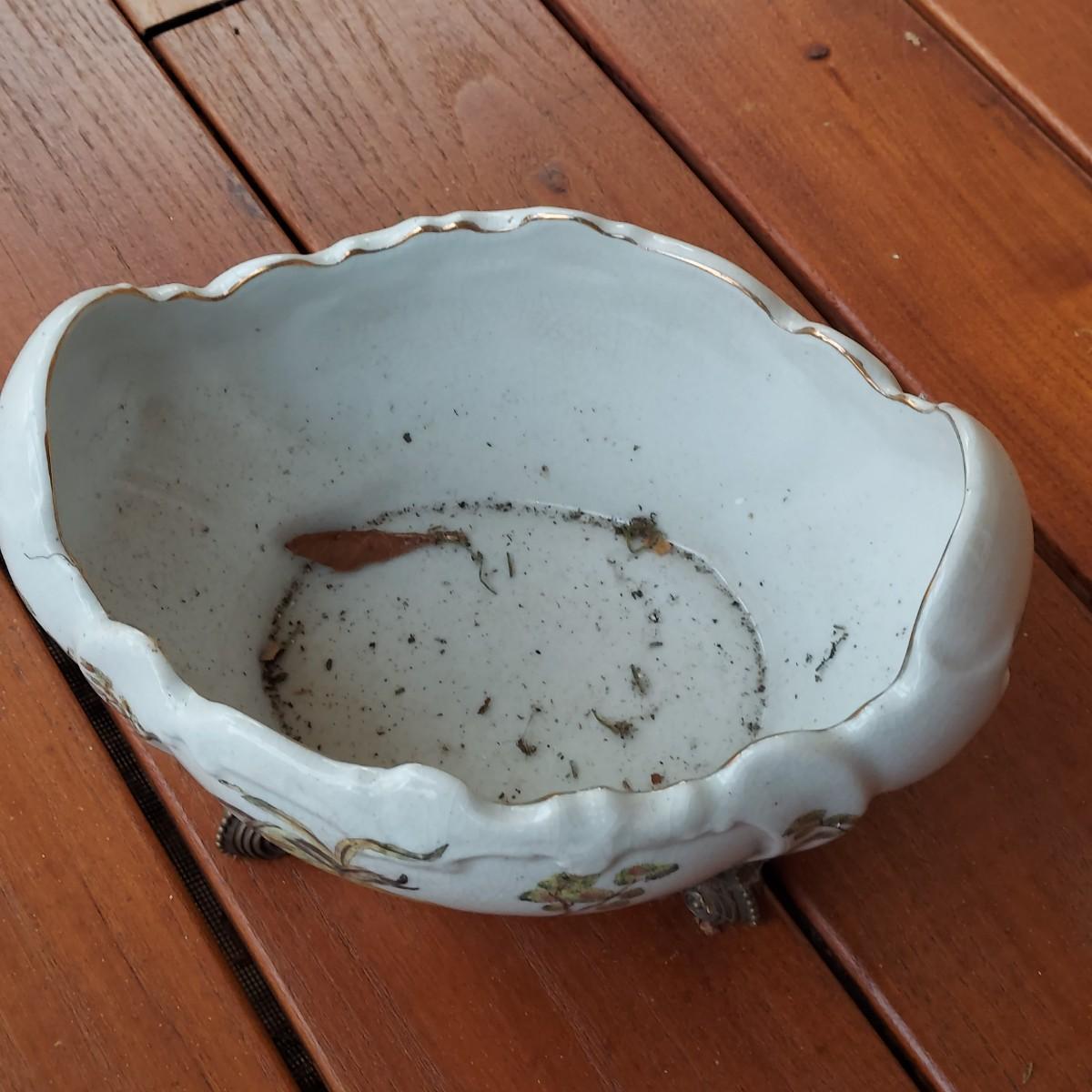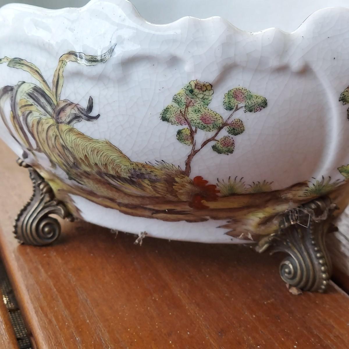 Lot includes three pots in a Chinese Famille porcelain style. The glaze style has a crazing effect. The large, footed pot measures 10” x 7” x 6"H. Please see photos for details. Shipping available