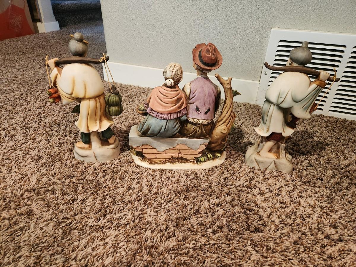 Chinese Figures Set Of 3 Pieces Man With Fish Sitting Man And Woman