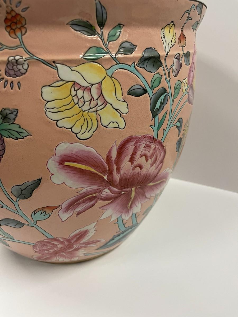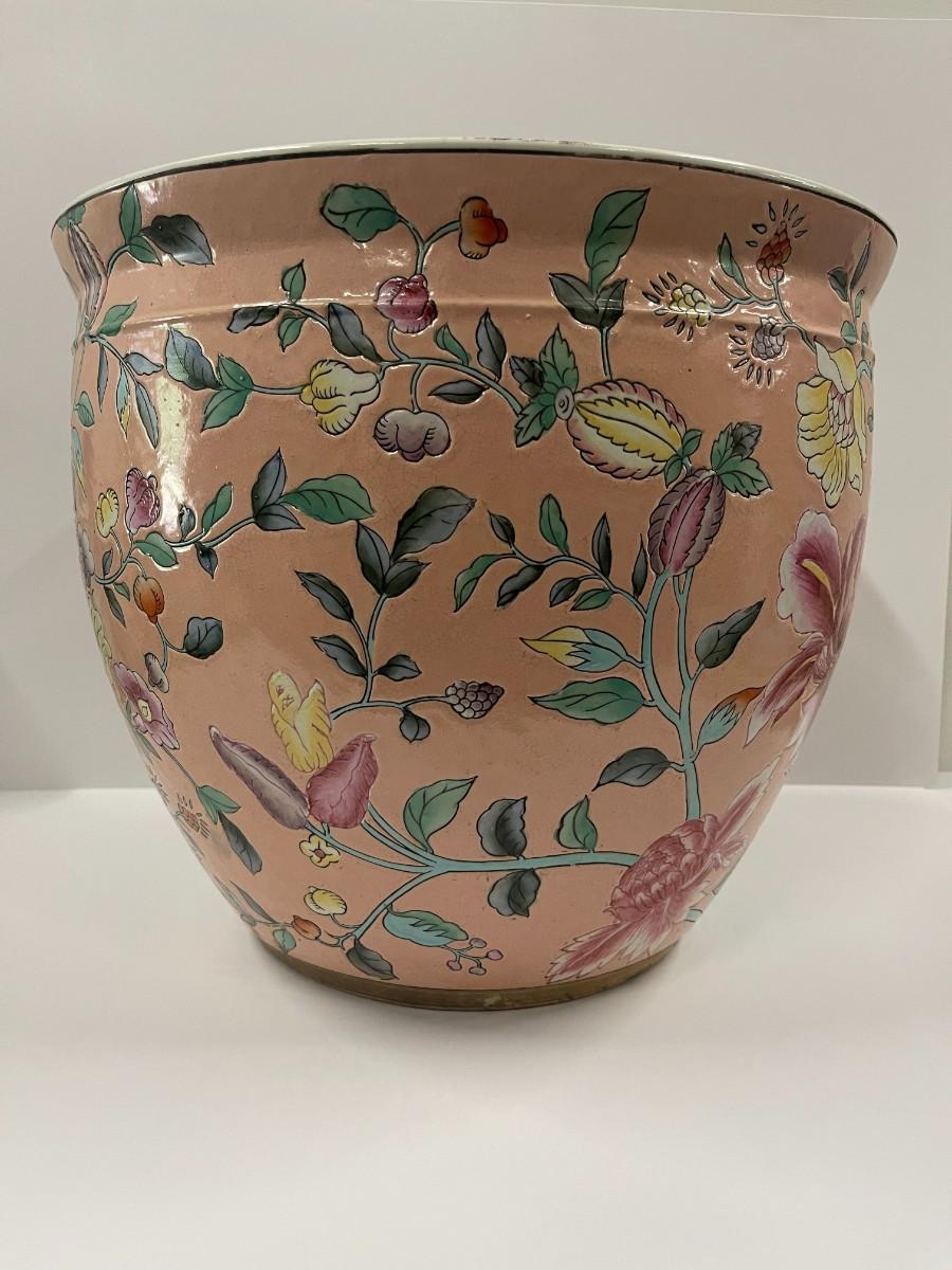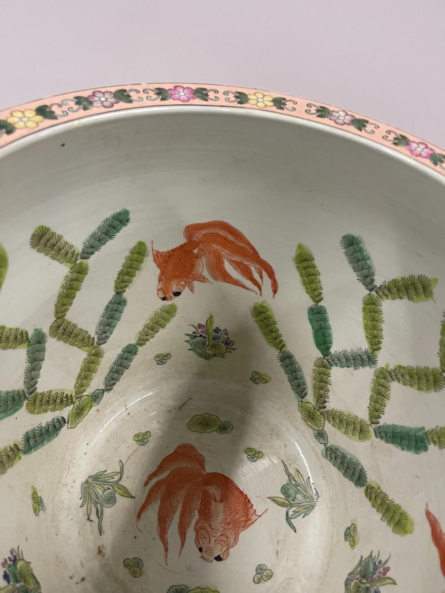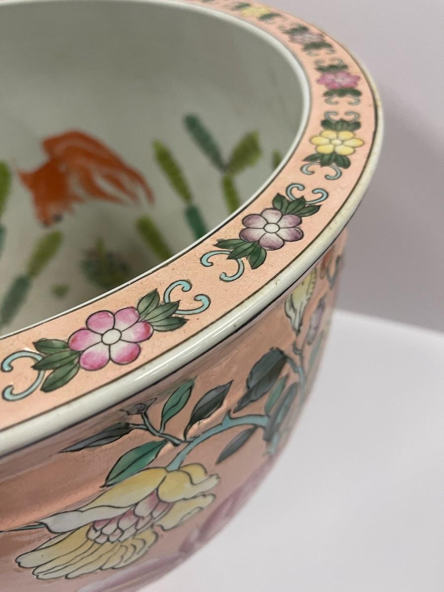 Chinese porcelain fish bowl planter. 15" diameter x 13' high.