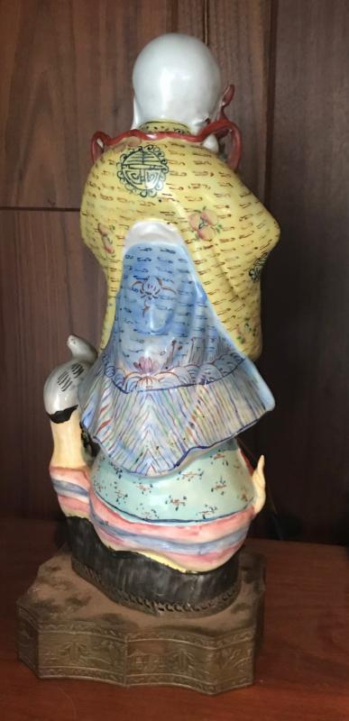 Description: Chinese God of Life figurine with a base. Measurements approximately 15 H. Material Porcelain. Shipping Charges: $22. Condition: Good