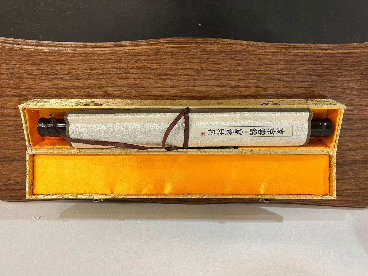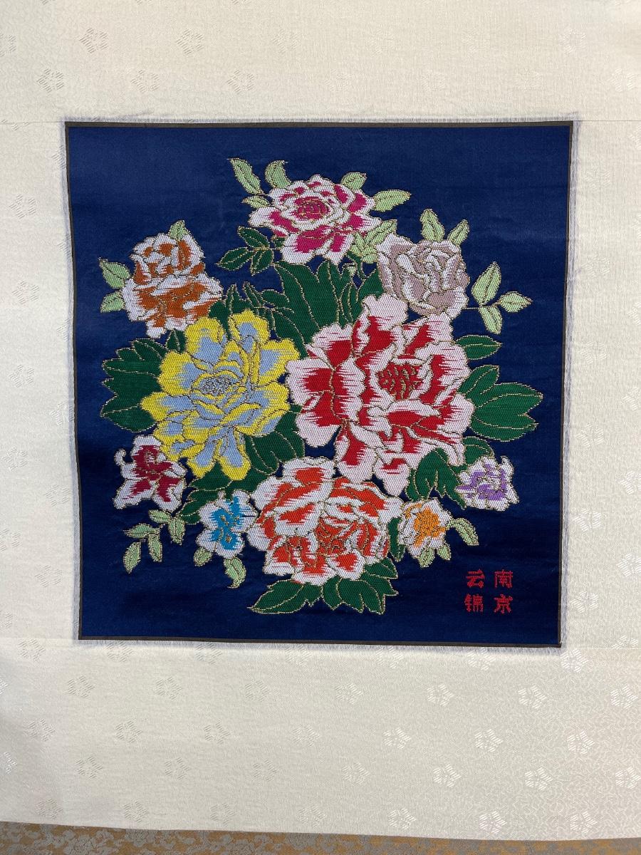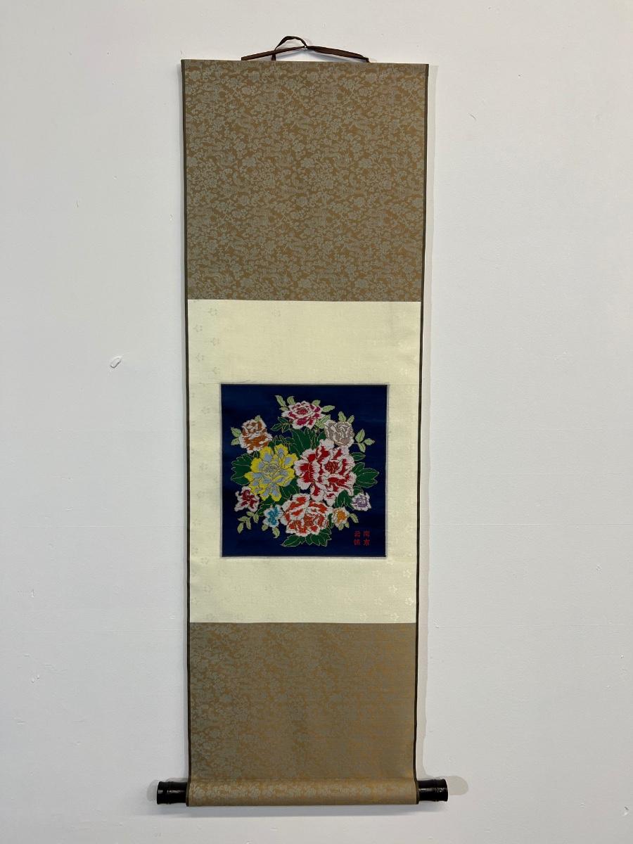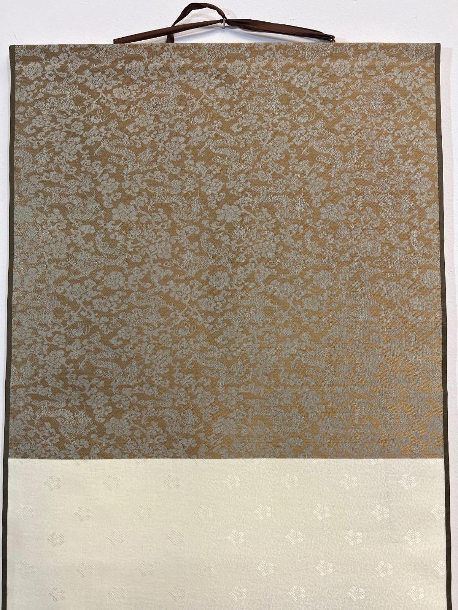 Chinese Gold Silk Scroll W/ Flowers 13.5"x42"
