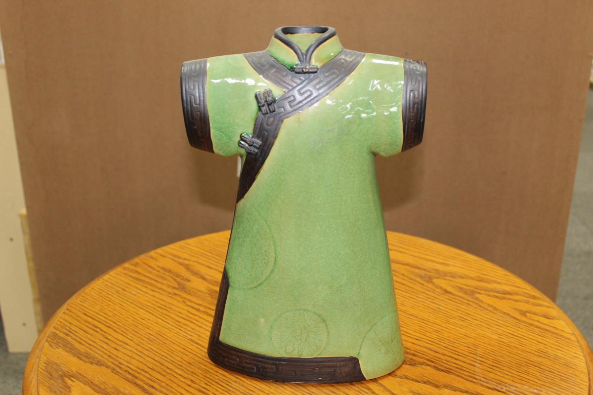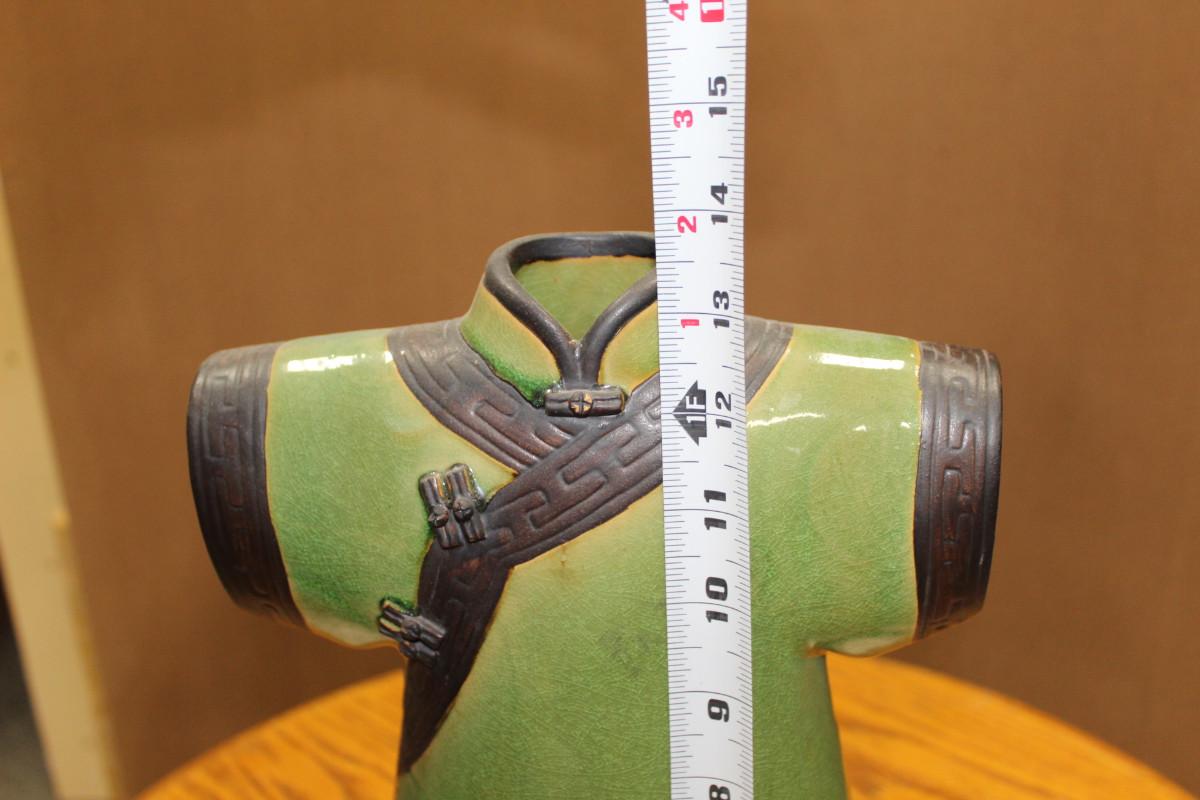 Chinese Green Crackle Porcelain Vase Imperial Robe With Key Fret & Roundels