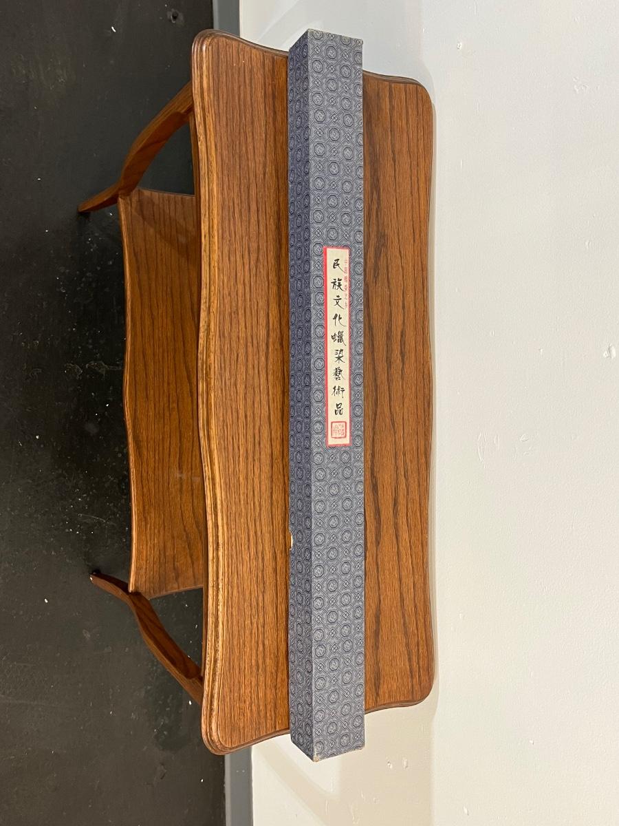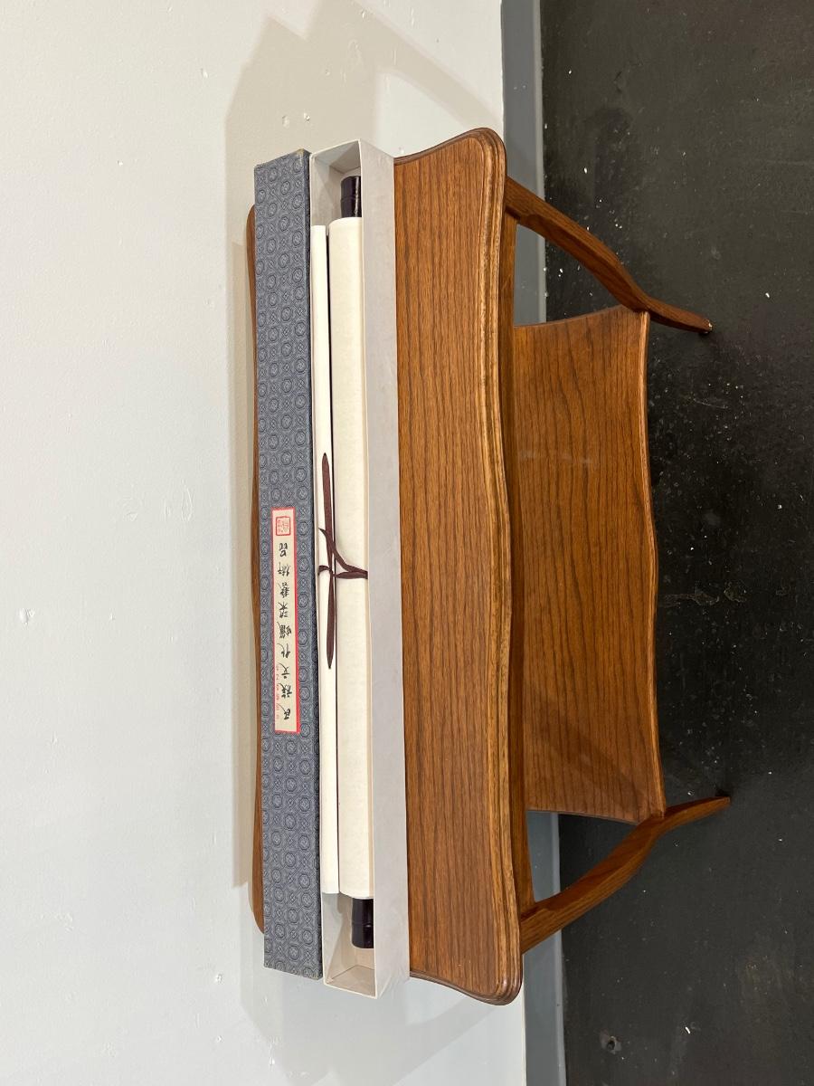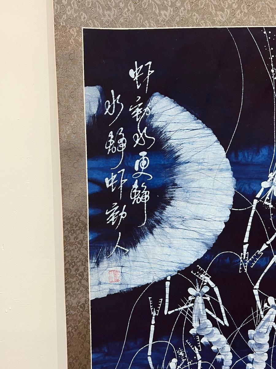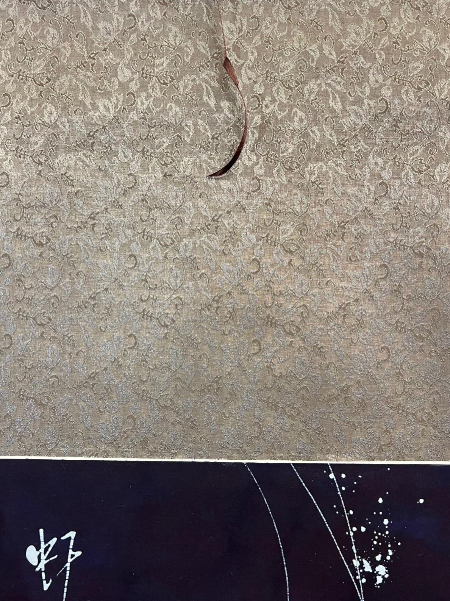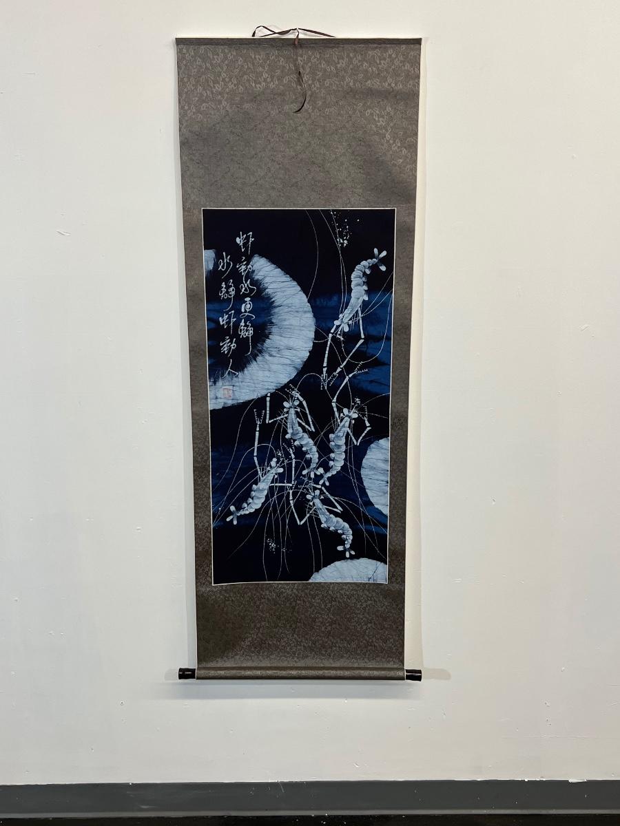 Chinese Grey Silk Scroll W/ Blue Graphic 22"x61"