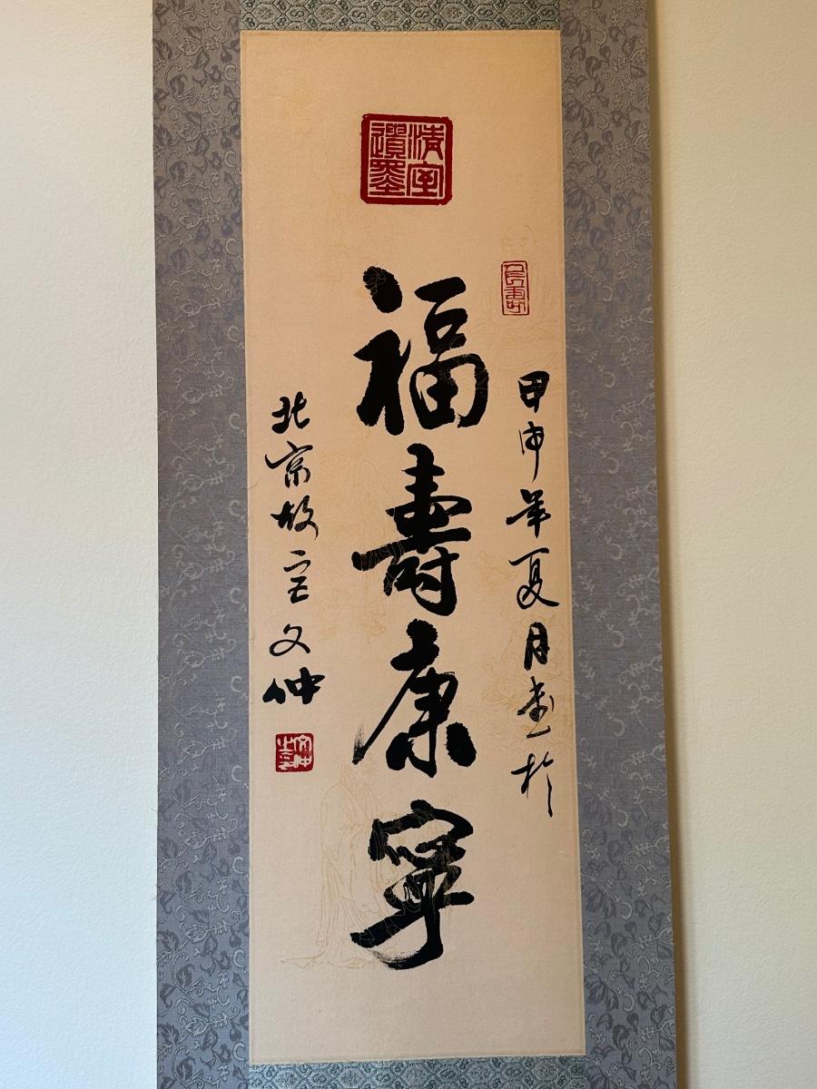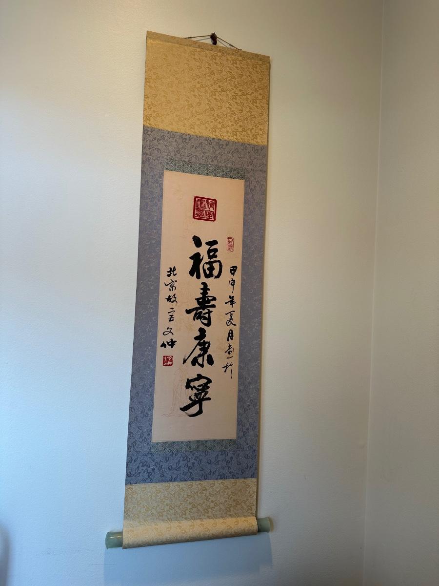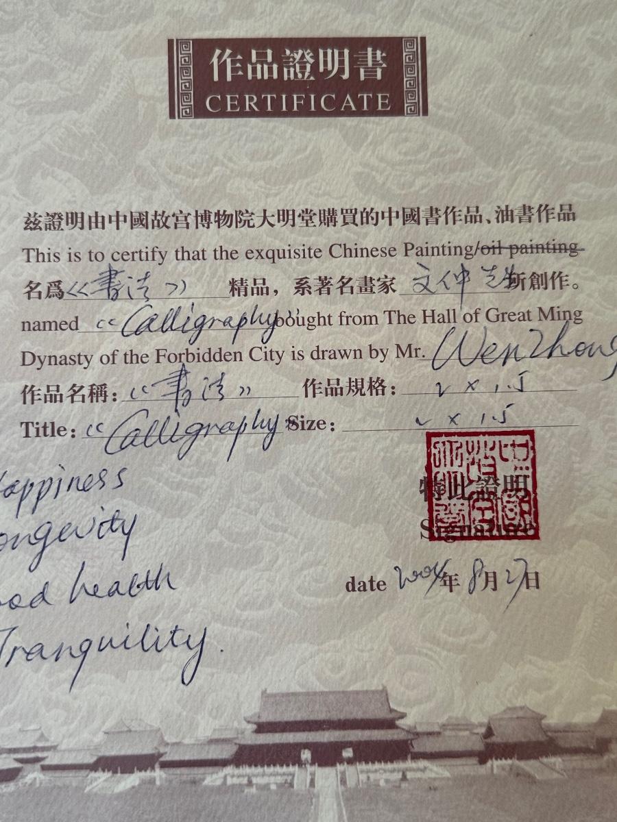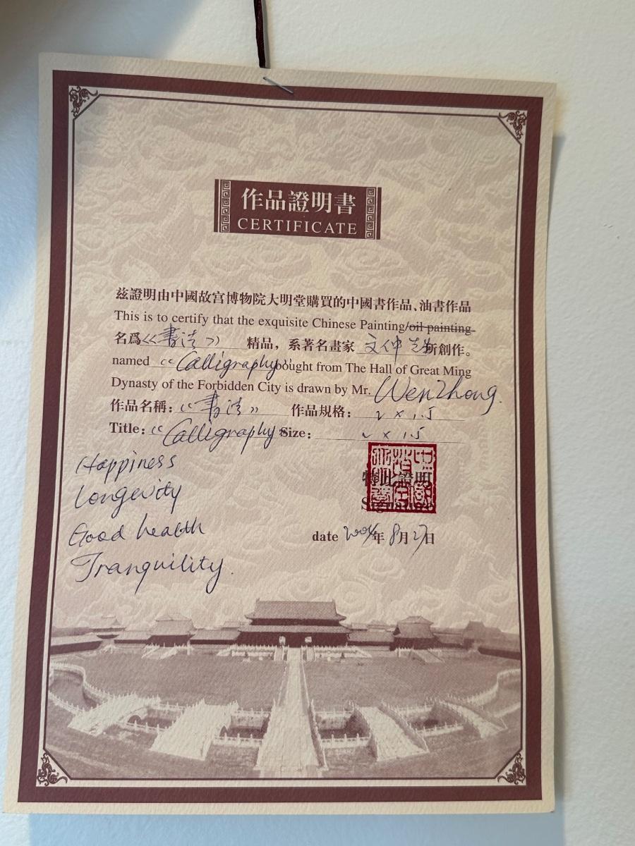 Chinese Hanging Scroll Calligraphy with Decorative Silk Mount & Certificate