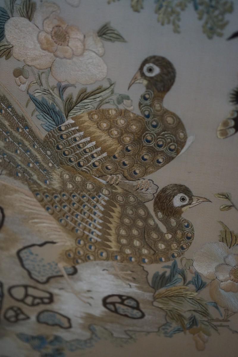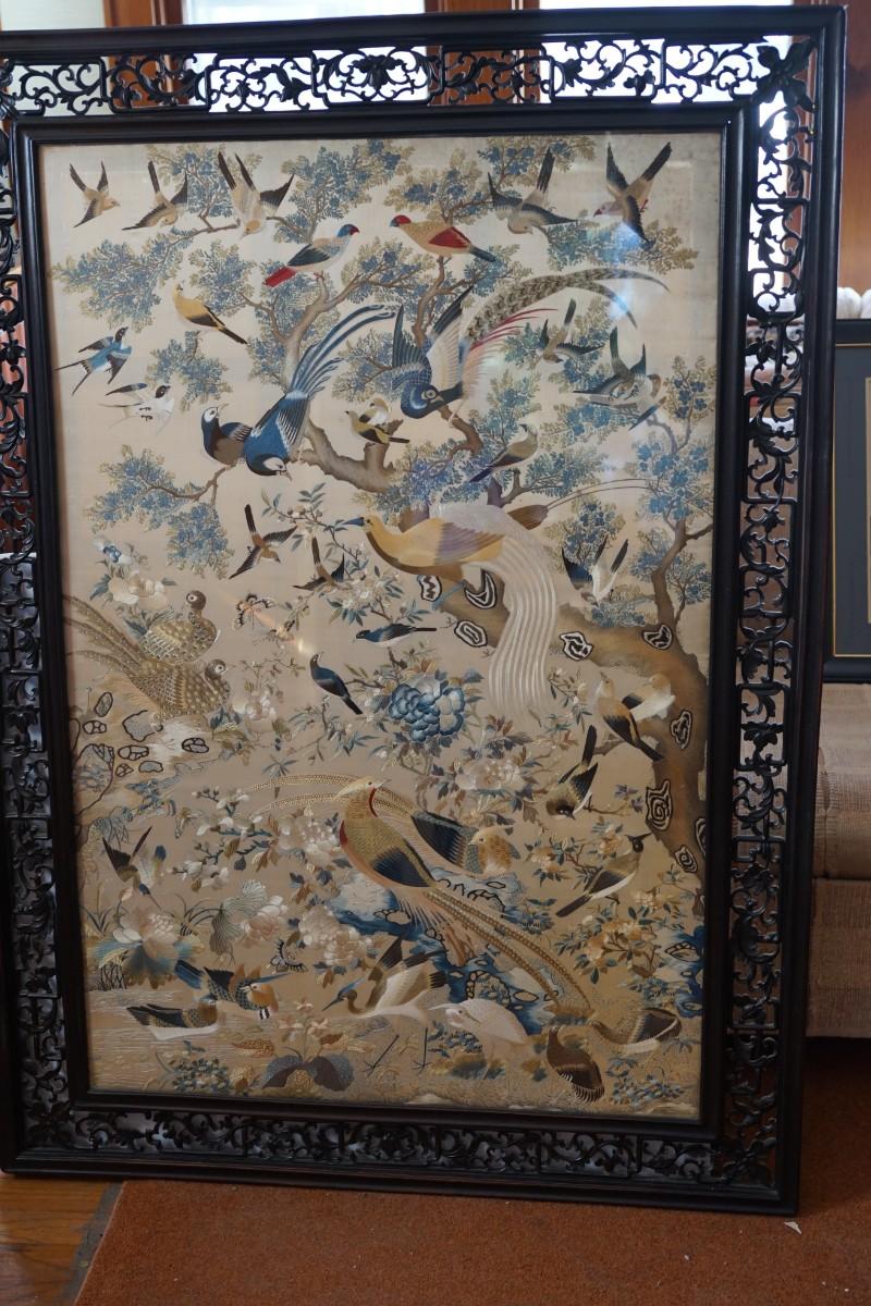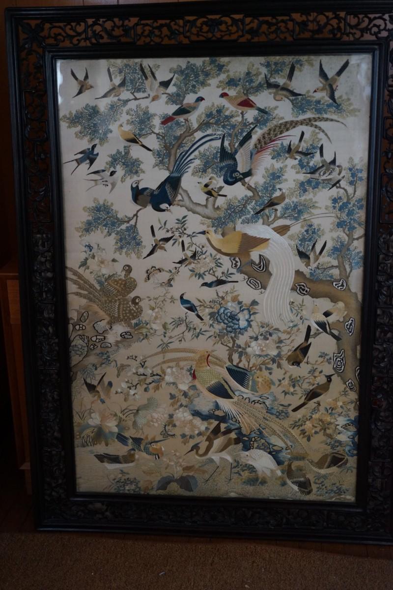 Exceptional , Rare Chinese embroidery on silk depicting various species of bird and foliage.